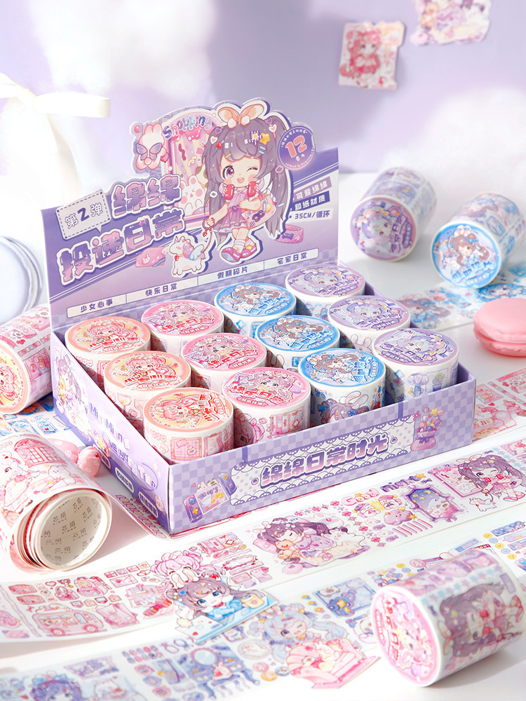 지속적인 음식 테이프에 전념 코어 귀여운 손 계정 테이프 만화 소녀 심장 배달 매일 장식 재료 테이프