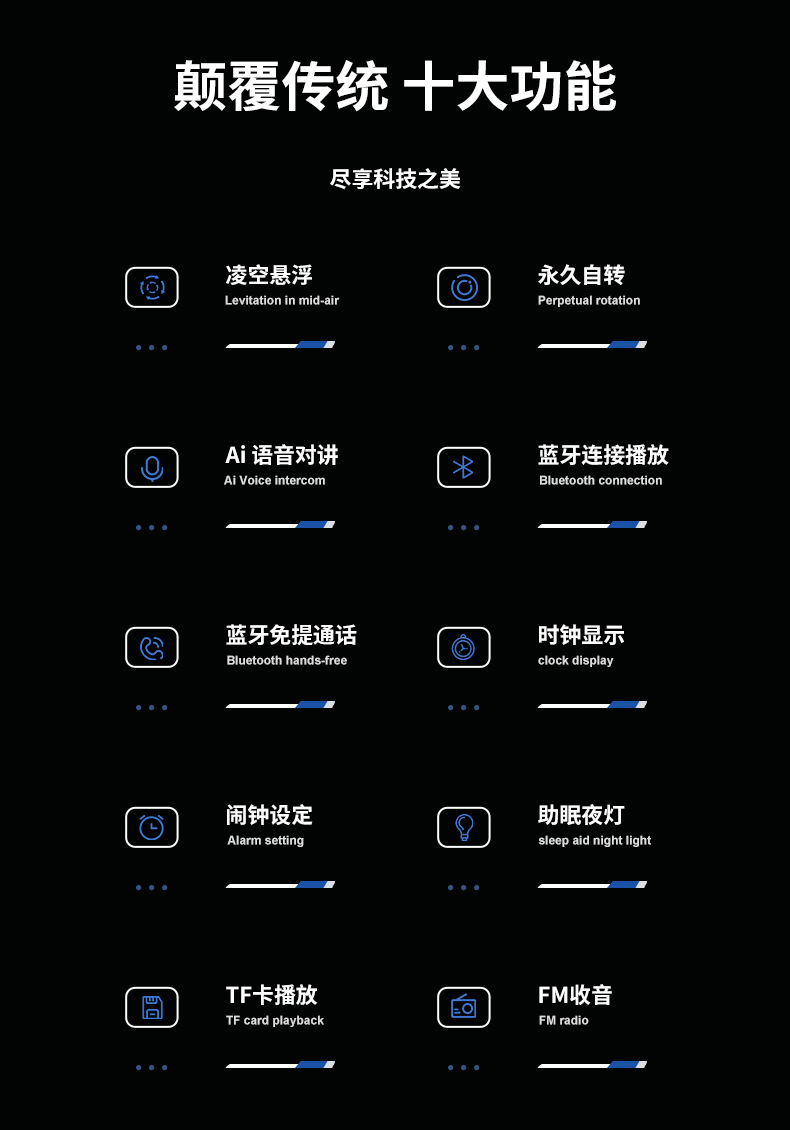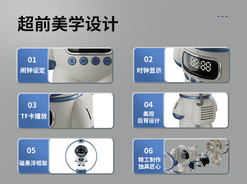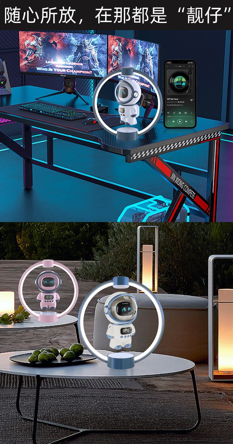 • 파란색 우주인 + AI 대형 모델 + 블루투스 스피커 + 공중 부양 + 360도 회전°자전