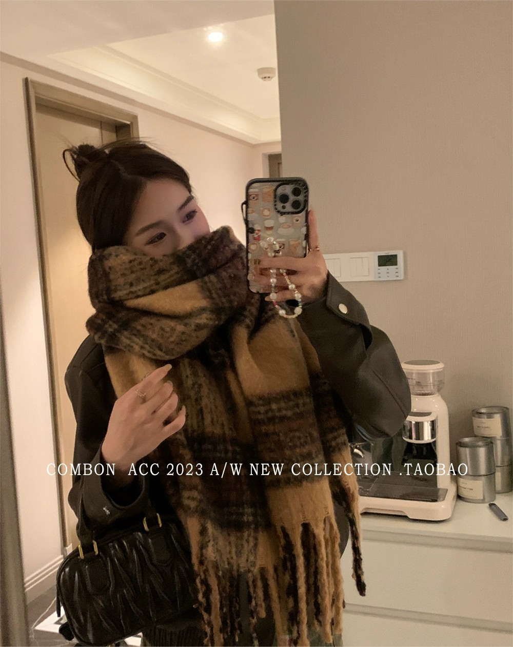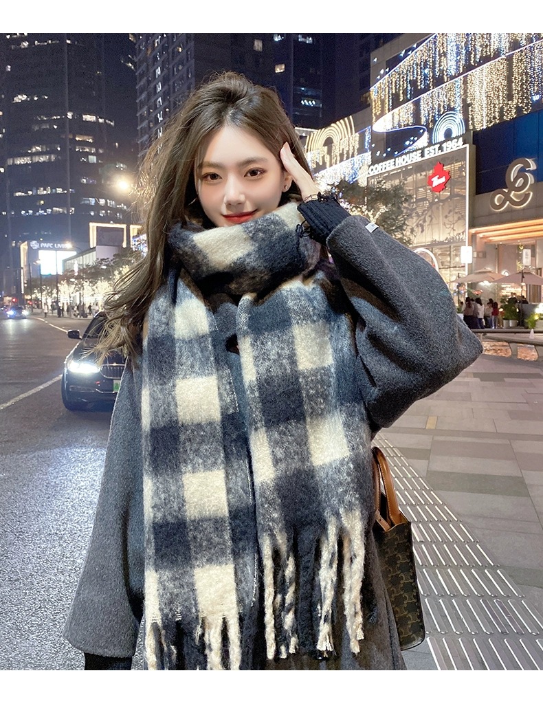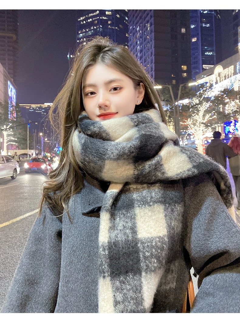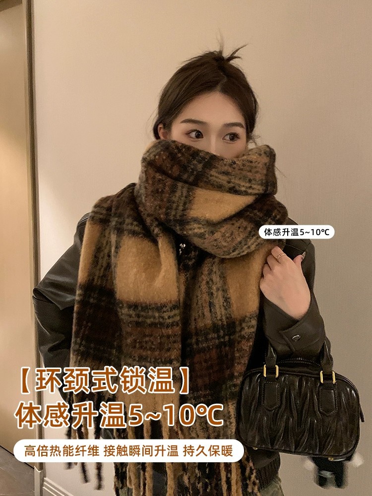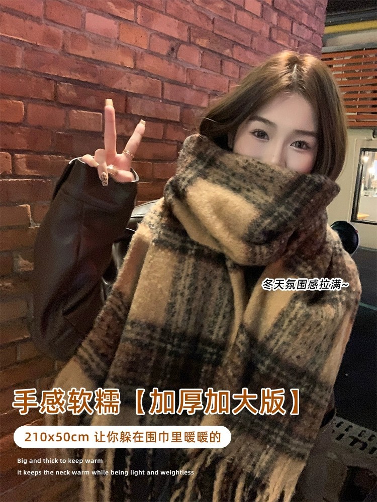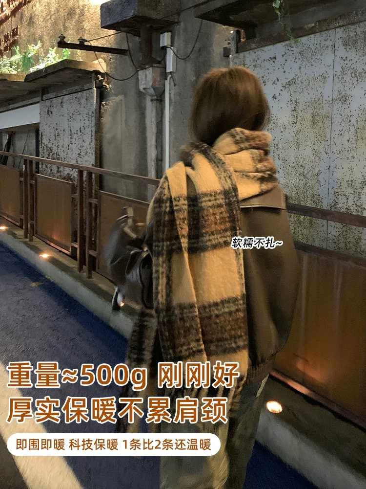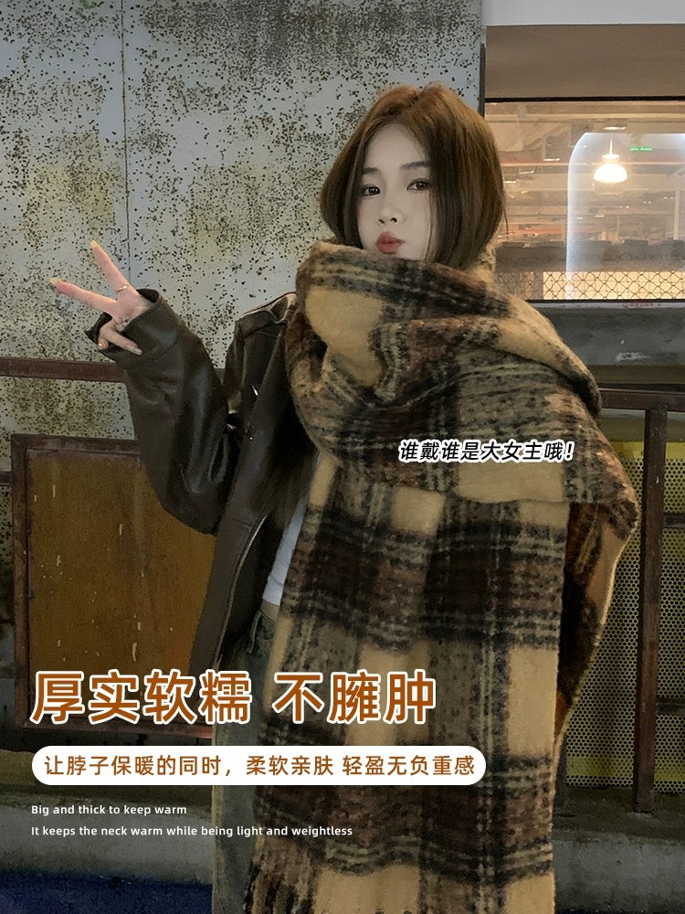 Maillard 스타일 다크 브라운 캐시미어 스카프 여자의 겨울 고급 술 모헤어 두꺼운 스카프 학생 새로운스토어 가기