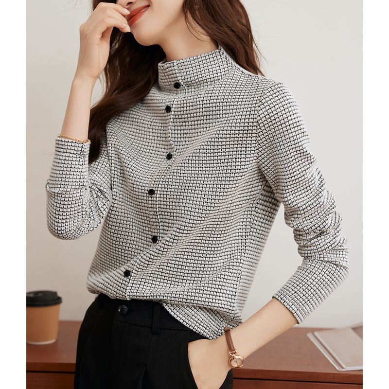 Xiaoxiangfeng 세미 하이 칼라 보텀 셔츠 2023 겨울 새로운 디자인 올매치 따뜻한 보텀 셔츠스토어 가기