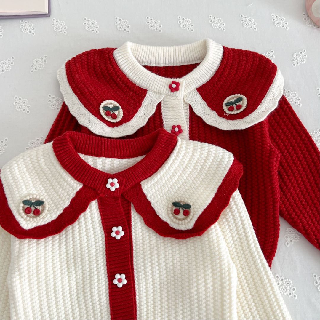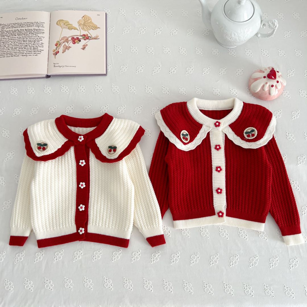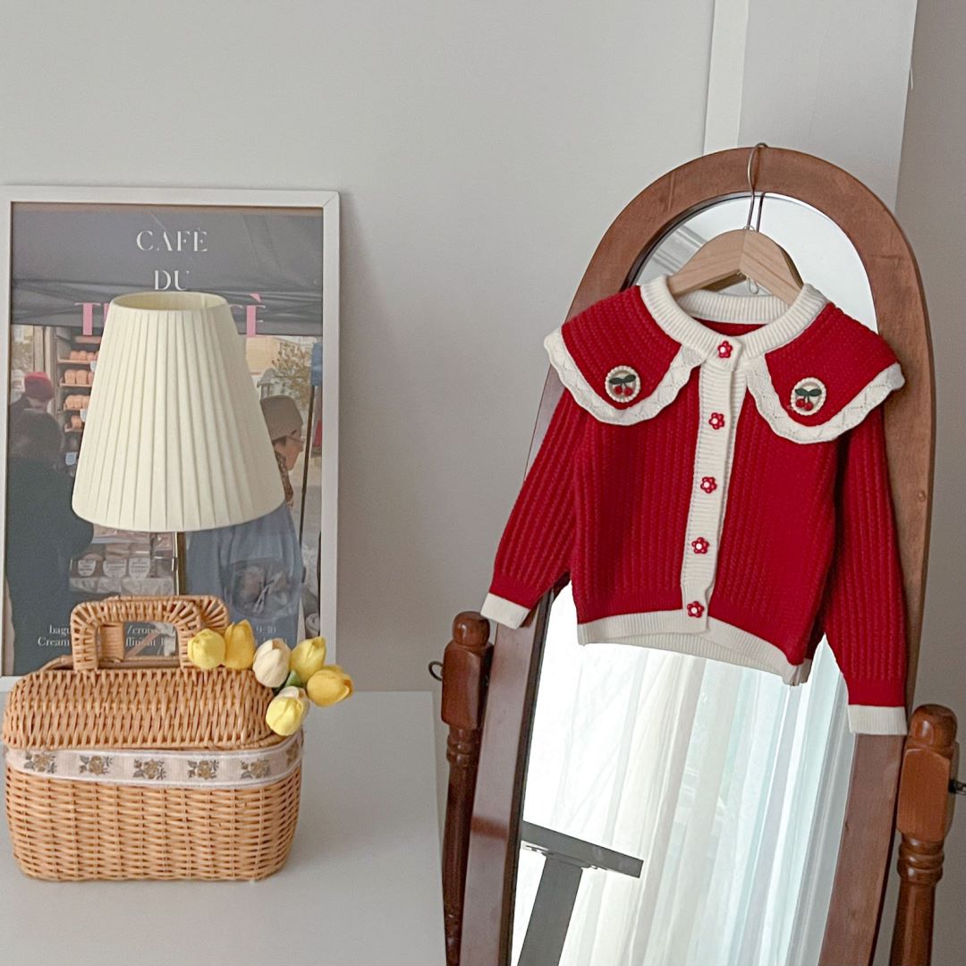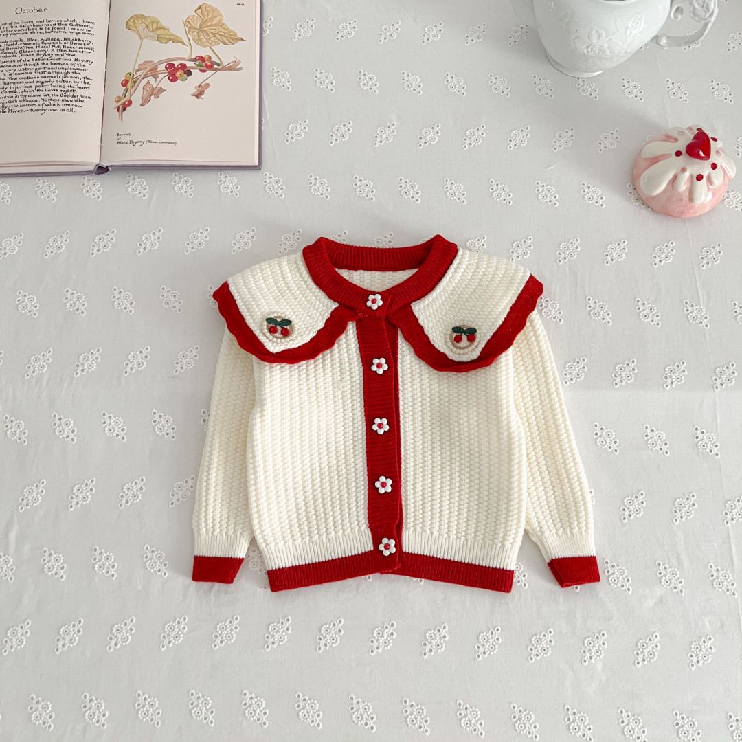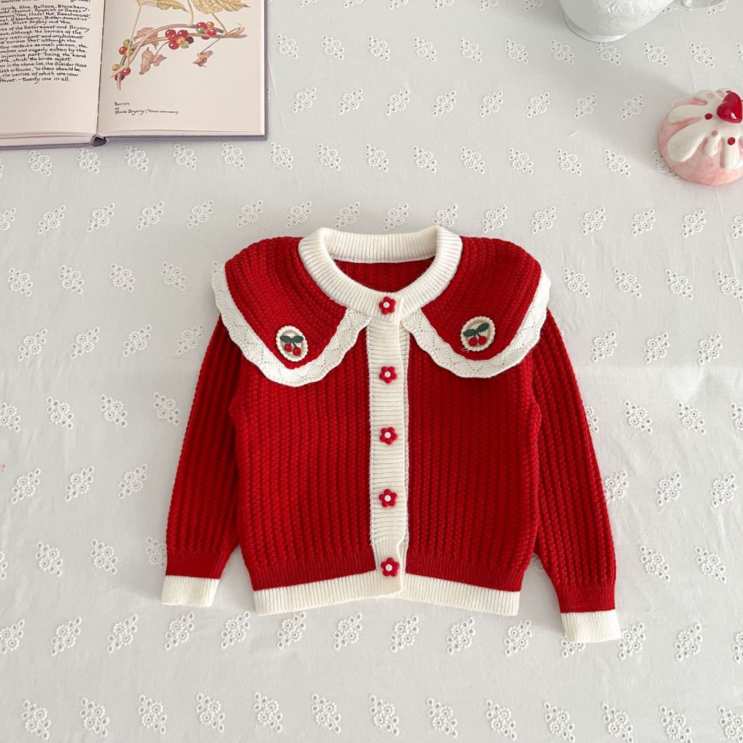 • 레드 체리 라지 라펠 가디건