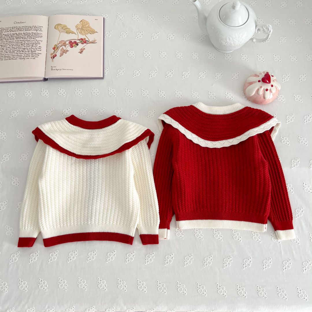 여자 달콤한 카디건 새로운 봄과 가을 아기 겉옷 니트 스웨터 큰 옷깃 스웨터 어린이 스웨터 코트 여성