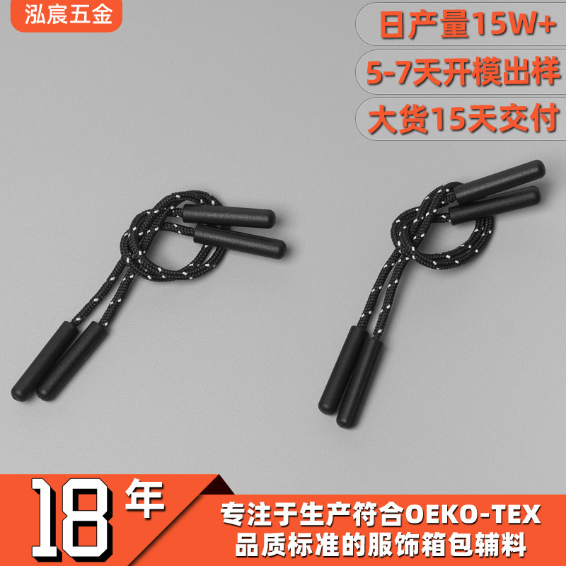 厂家定制双头TPU拉尾绳间反光条绳子拉手注塑拉链绳