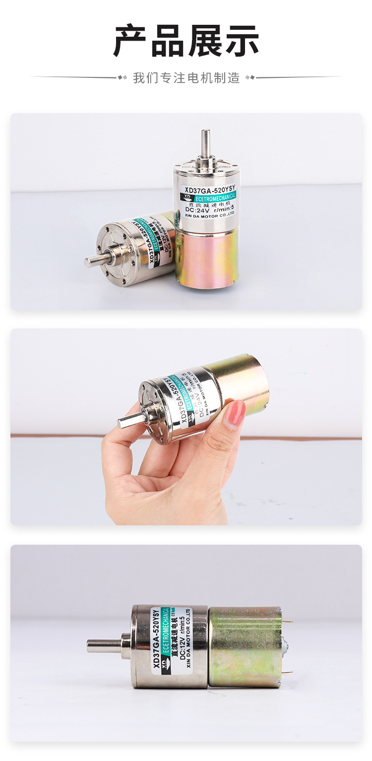 Xinda 공장 37GA520 DC 모터 12V24 볼트 조정 가능한 속도 전진 및 후진 기어 감속 마이크로 소형 모터스토어 가기