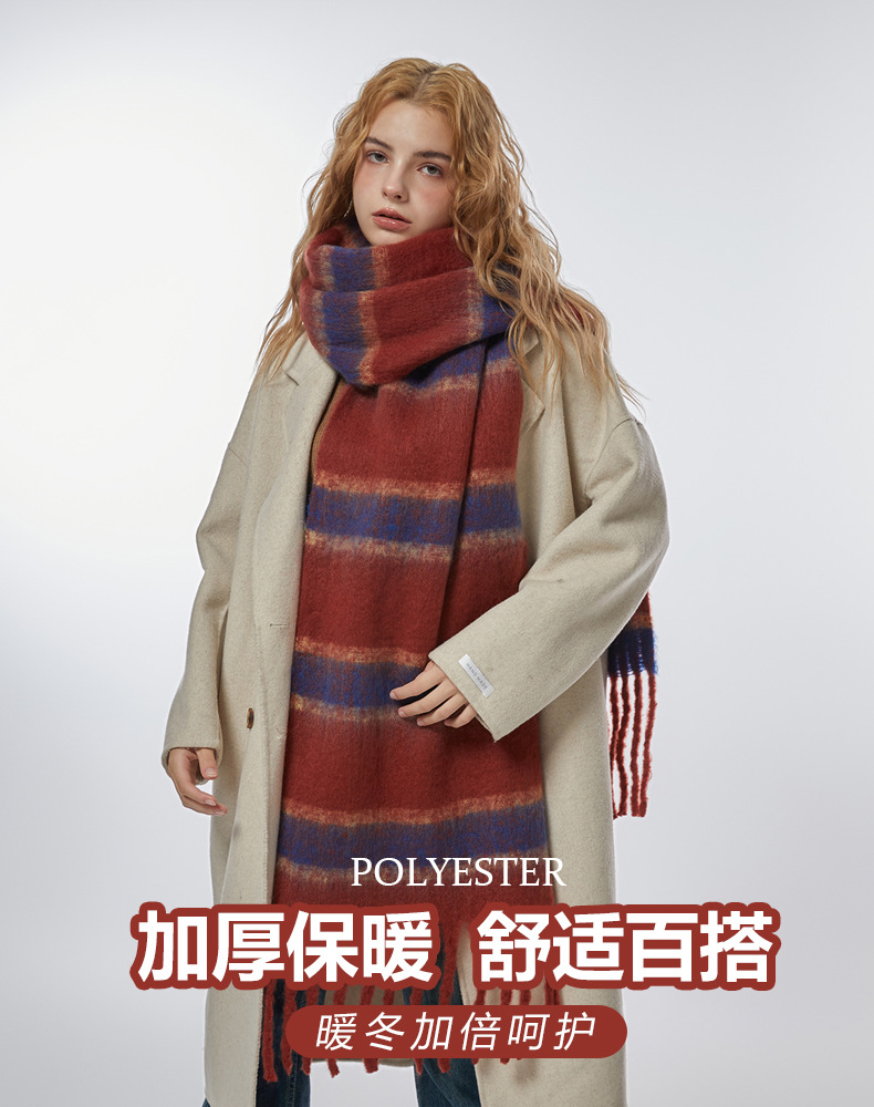 심플 레트로 2 색 스트라이프 플러시 스카프 겨울 방풍 따뜻한 얼굴 커버링 대형 스카프 커플 이중 사용 숄스토어 가기