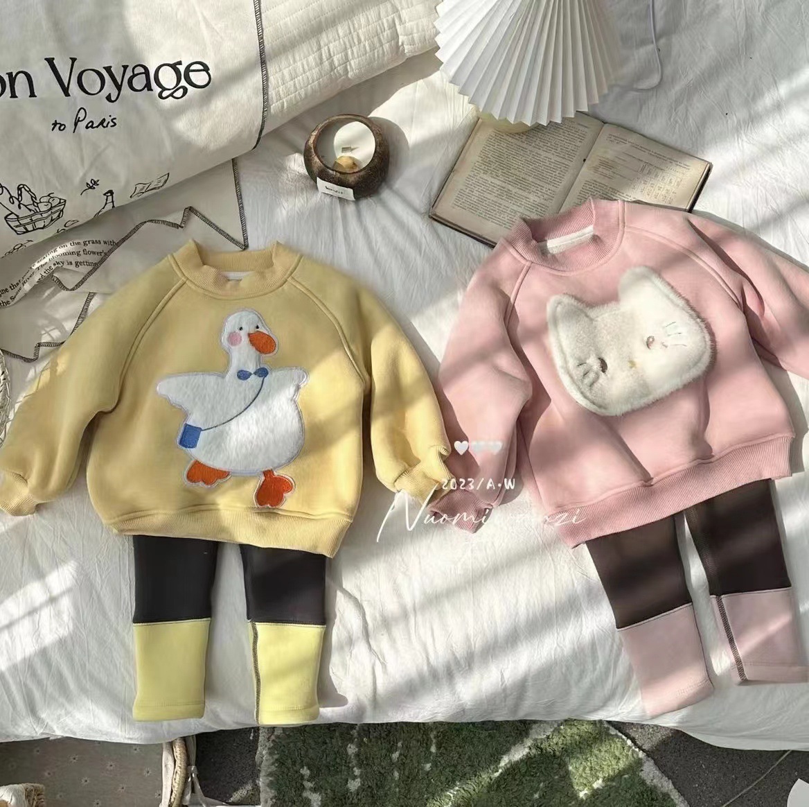 儿童卫衣加绒加厚卡通休闲套头洋气绒衫网红爆款女童上衣秋冬衣服