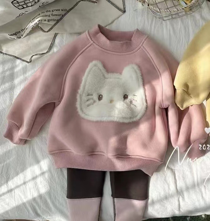 어린이 스웨터 기모 두꺼운 만화 풀오버 캐주얼 세련된 벨벳 스웨터 인터넷 연예인 뜨거운 소녀의 최고 가을과 겨울 옷스토어 가기