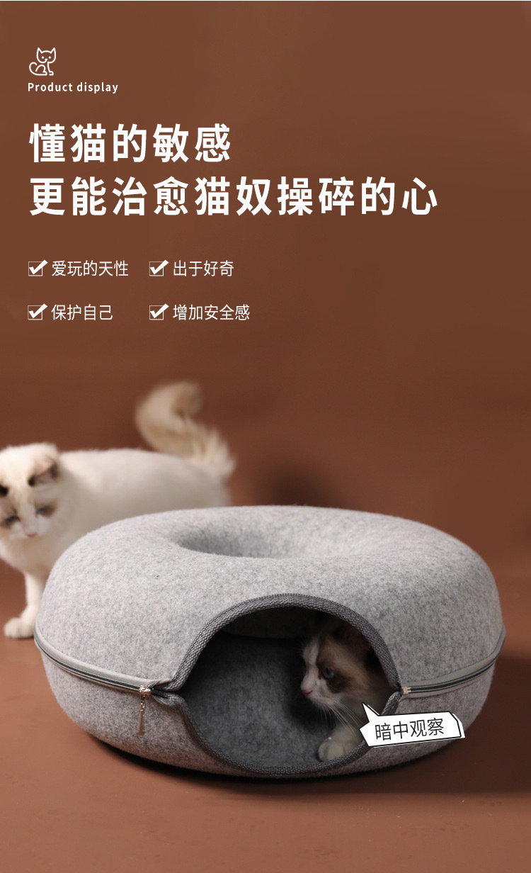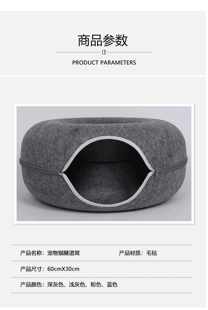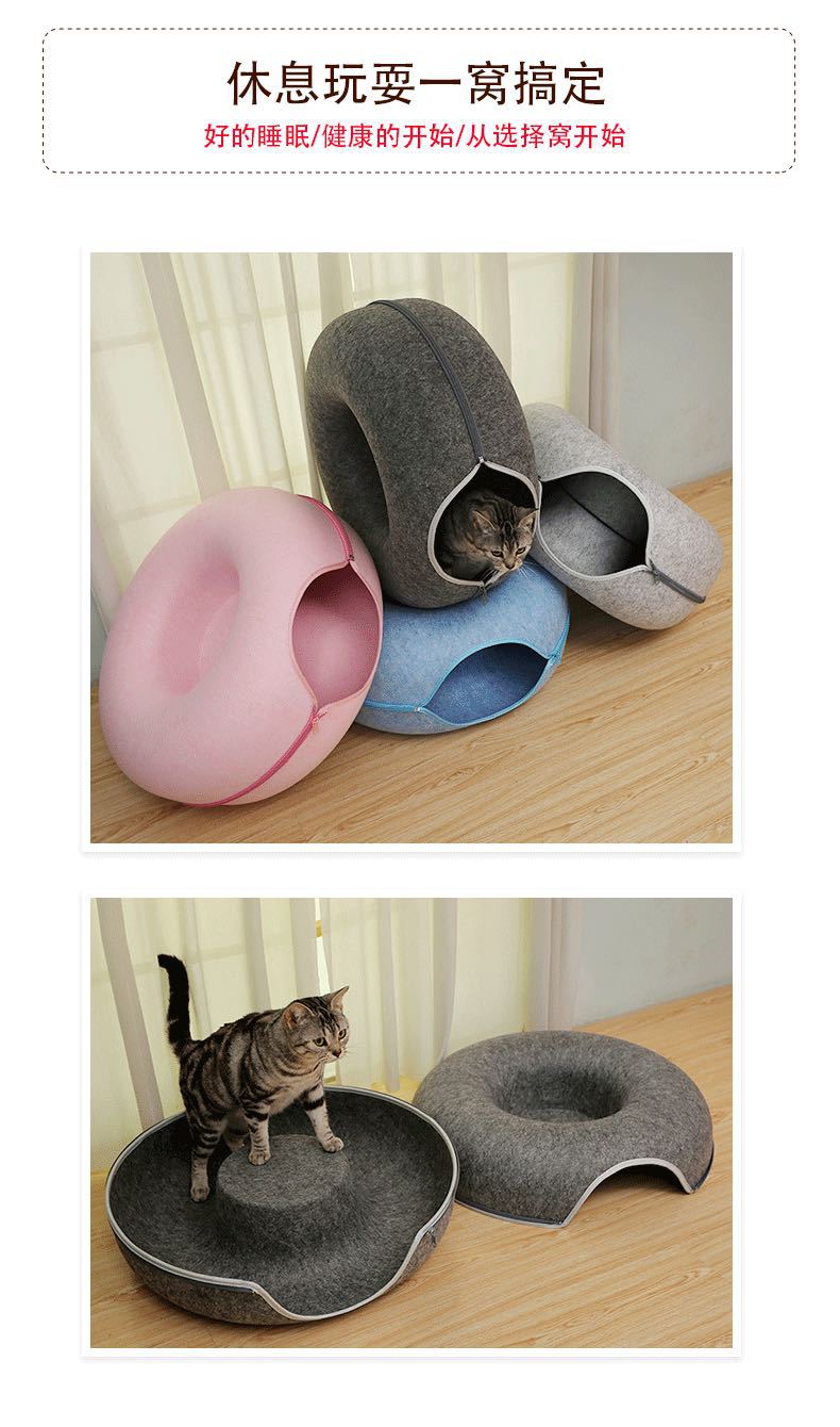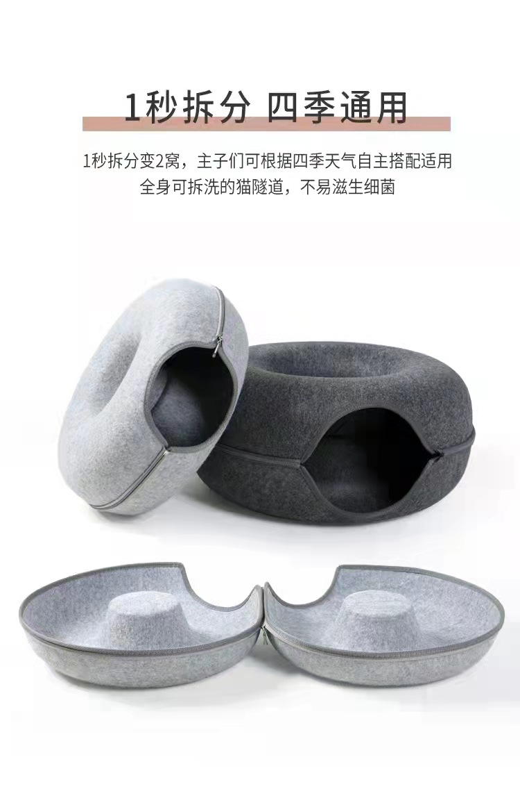 국경 간 도매 펠트 고양이 둥지 도넛 터널 고양이 둥지 사계절 유니버설 고양이 둥지 반 폐쇄 이동식 고양이 둥지