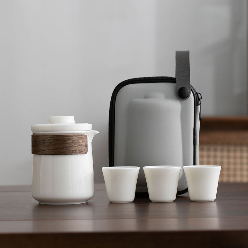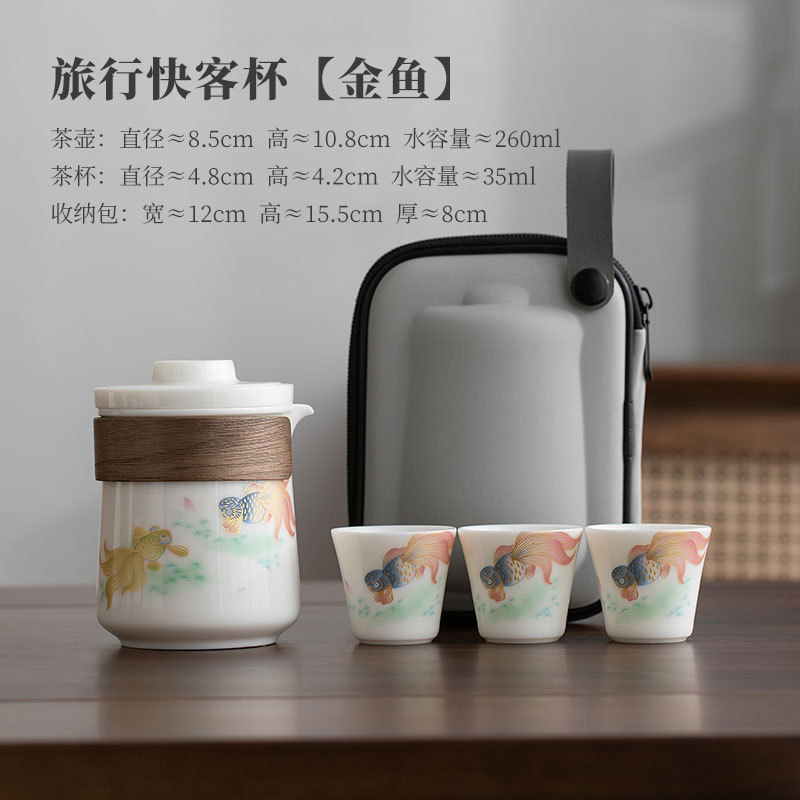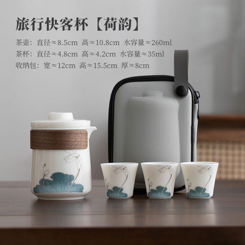 旅行茶具快客杯便携式户外单人泡茶壶羊脂玉陶瓷功夫一壶三杯露营