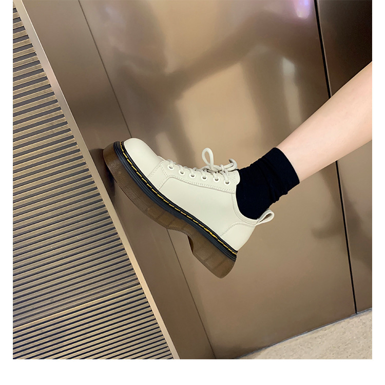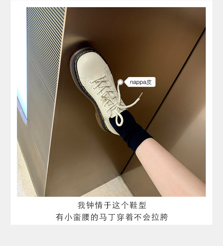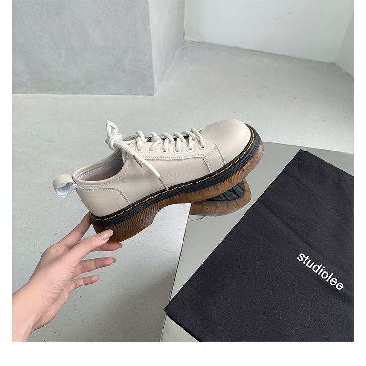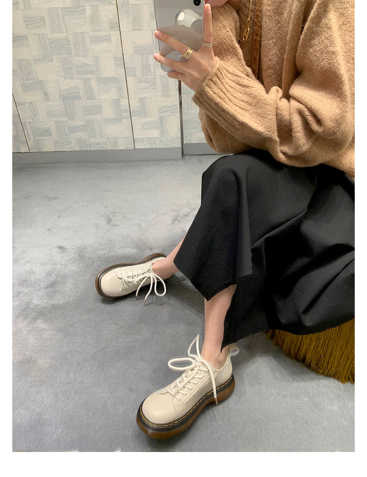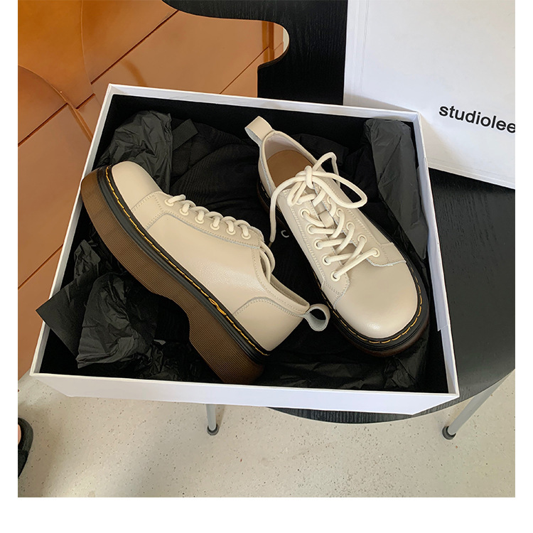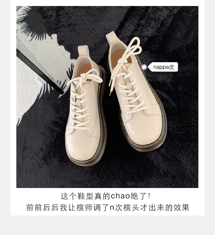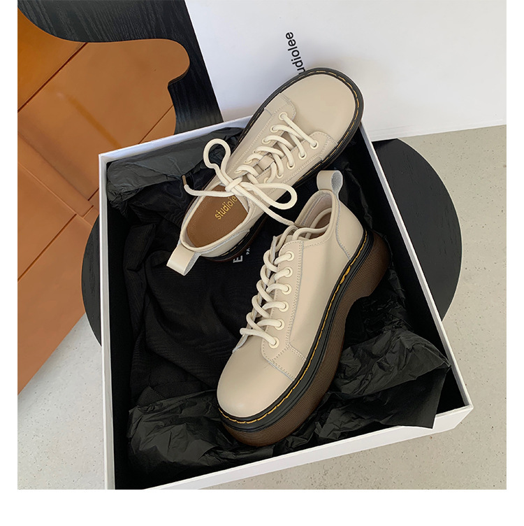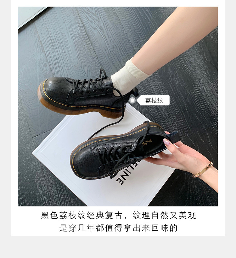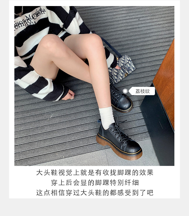 포도 엄마 스튜디오 영국 스타일 마틴 소녀의 유행 큰 머리 증가 플랫폼 레이스 업 여성을위한 작은 가죽 신발스토어 가기