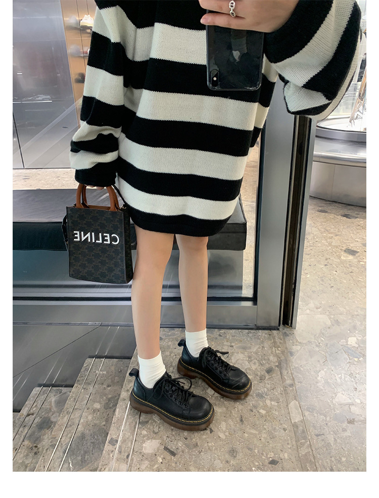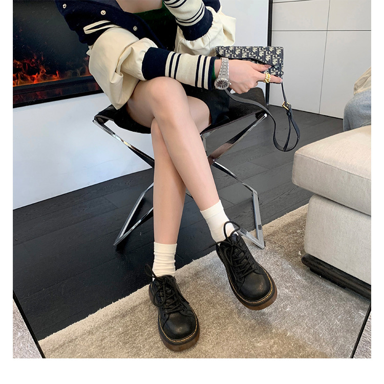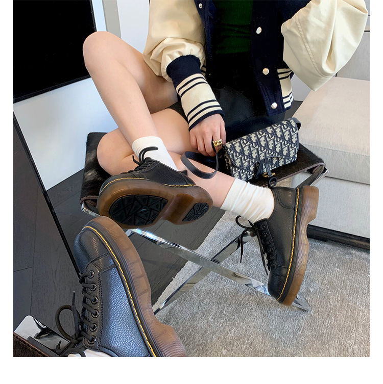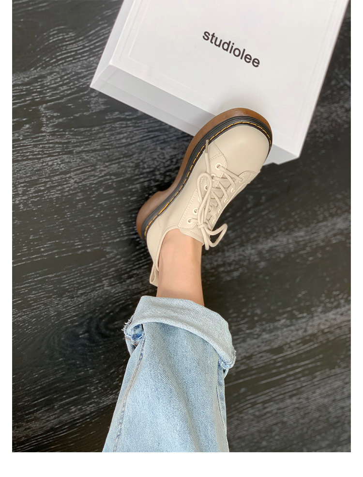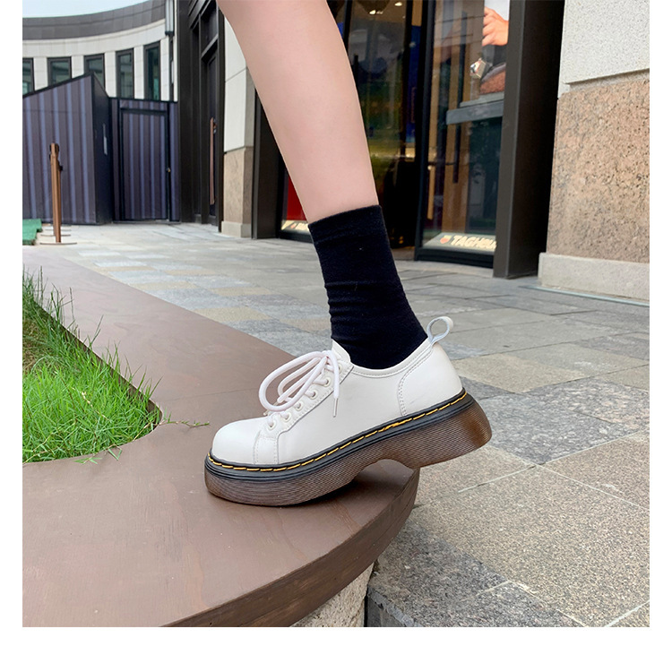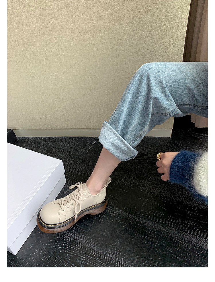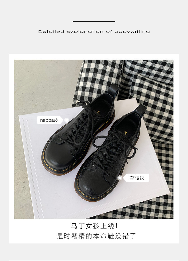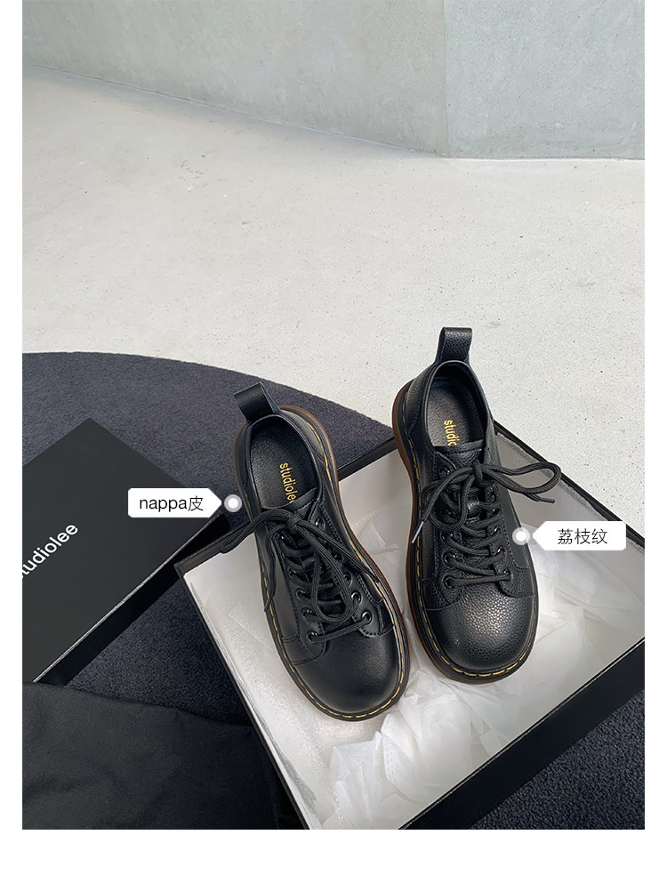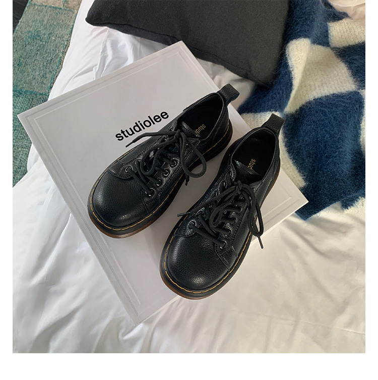 포도 엄마 스튜디오 영국 스타일 마틴 소녀의 유행 큰 머리 증가 플랫폼 레이스 업 여성을위한 작은 가죽 신발스토어 가기