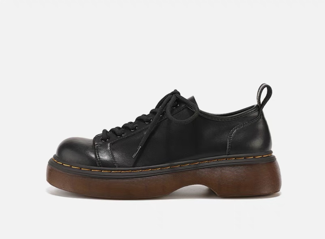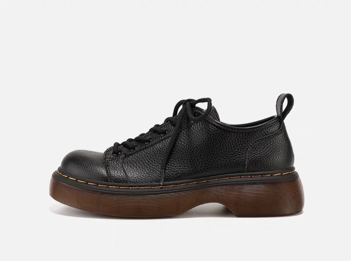 포도 엄마 스튜디오 영국 스타일 마틴 소녀의 유행 큰 머리 증가 플랫폼 레이스 업 여성을위한 작은 가죽 신발