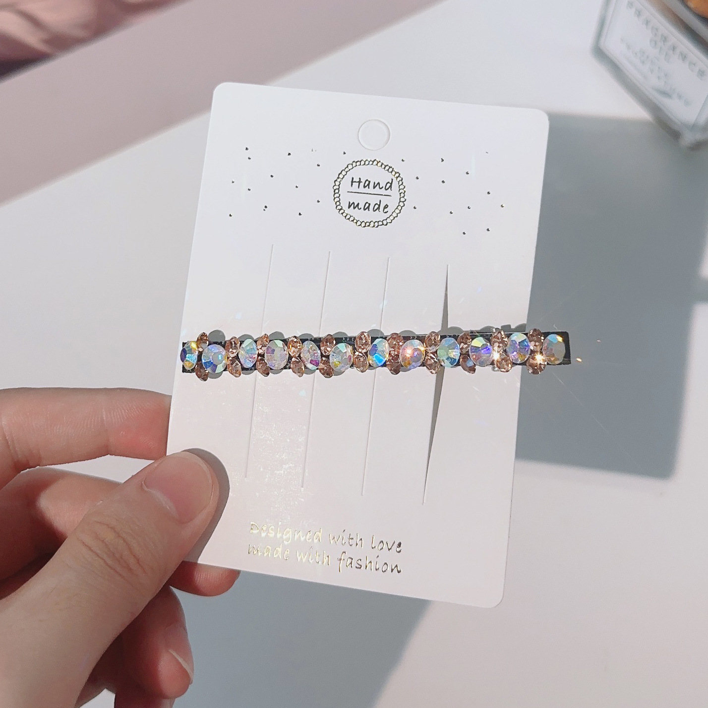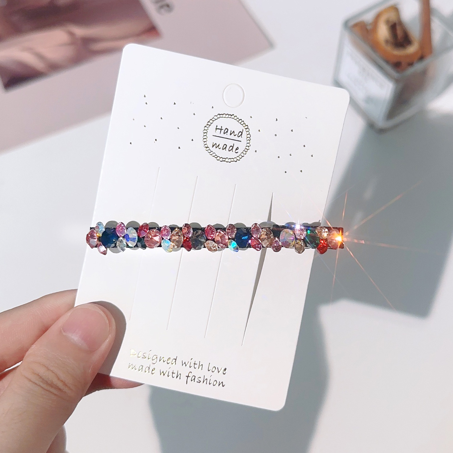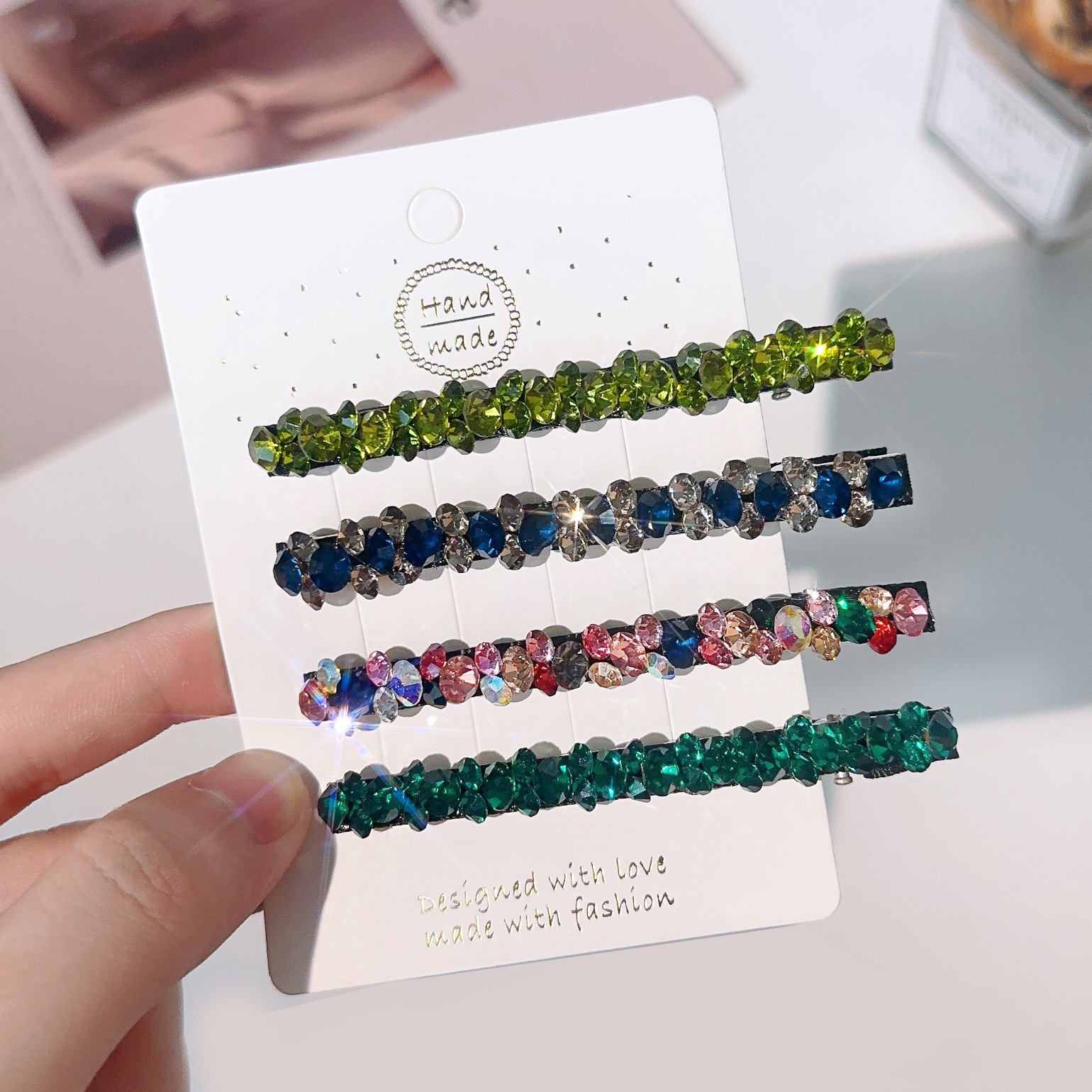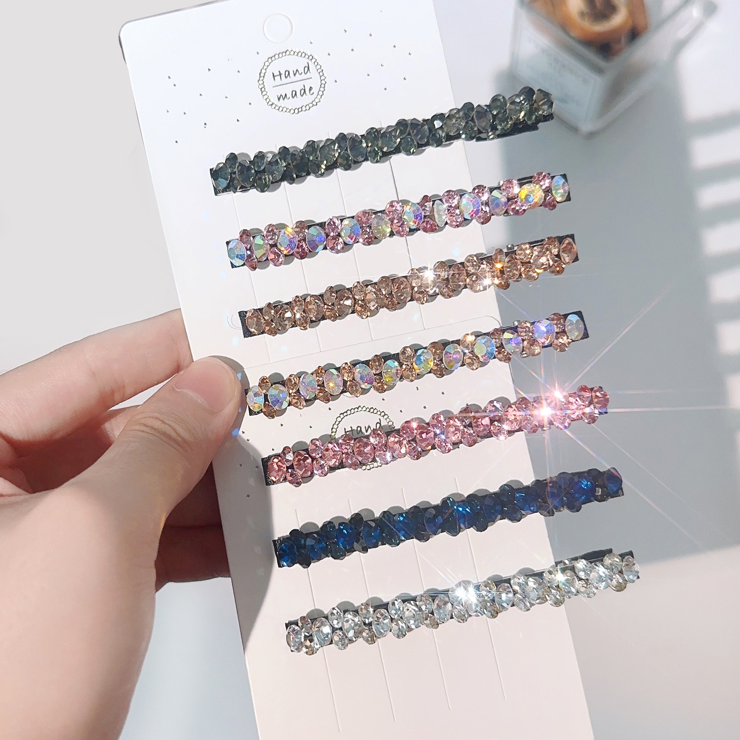 컬러 모조 다이아몬드 라인 석 틈새 사이드 헤어핀 클립 앞머리 클립 새로운 컬러 다이아몬드 그물 붉은 깨진 머리 고급 덕빌스토어 가기