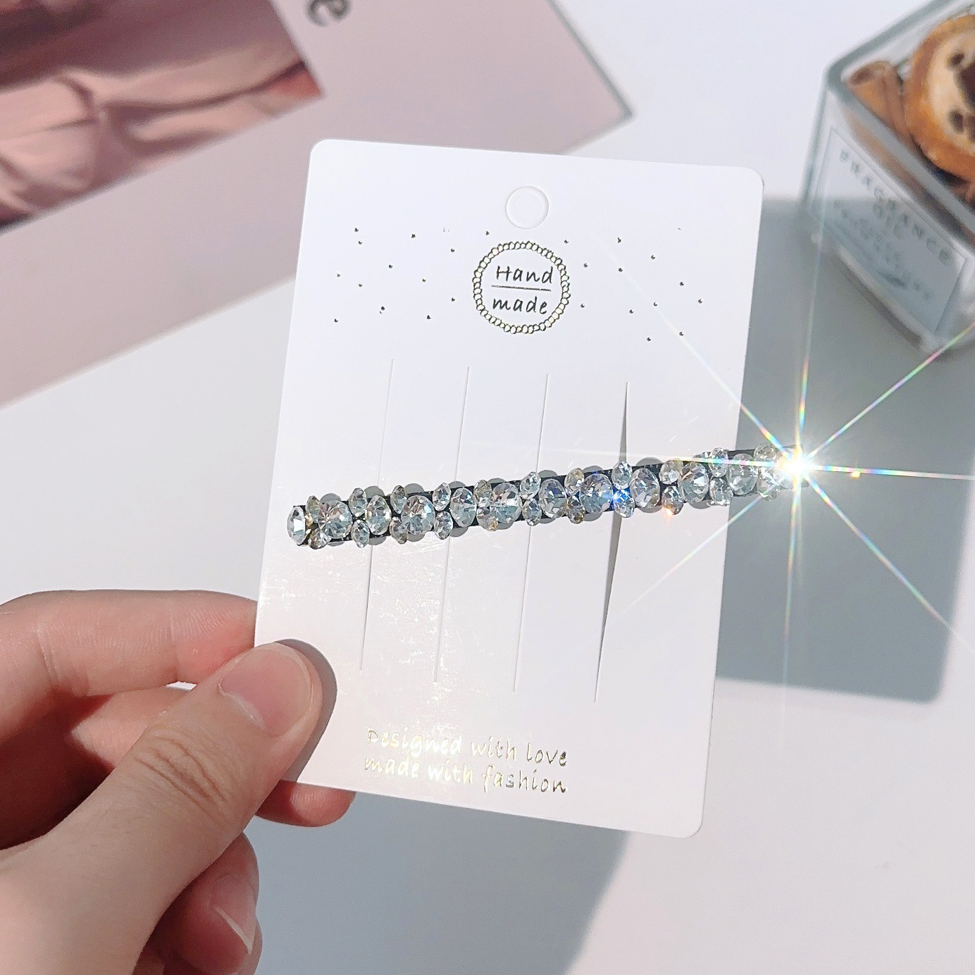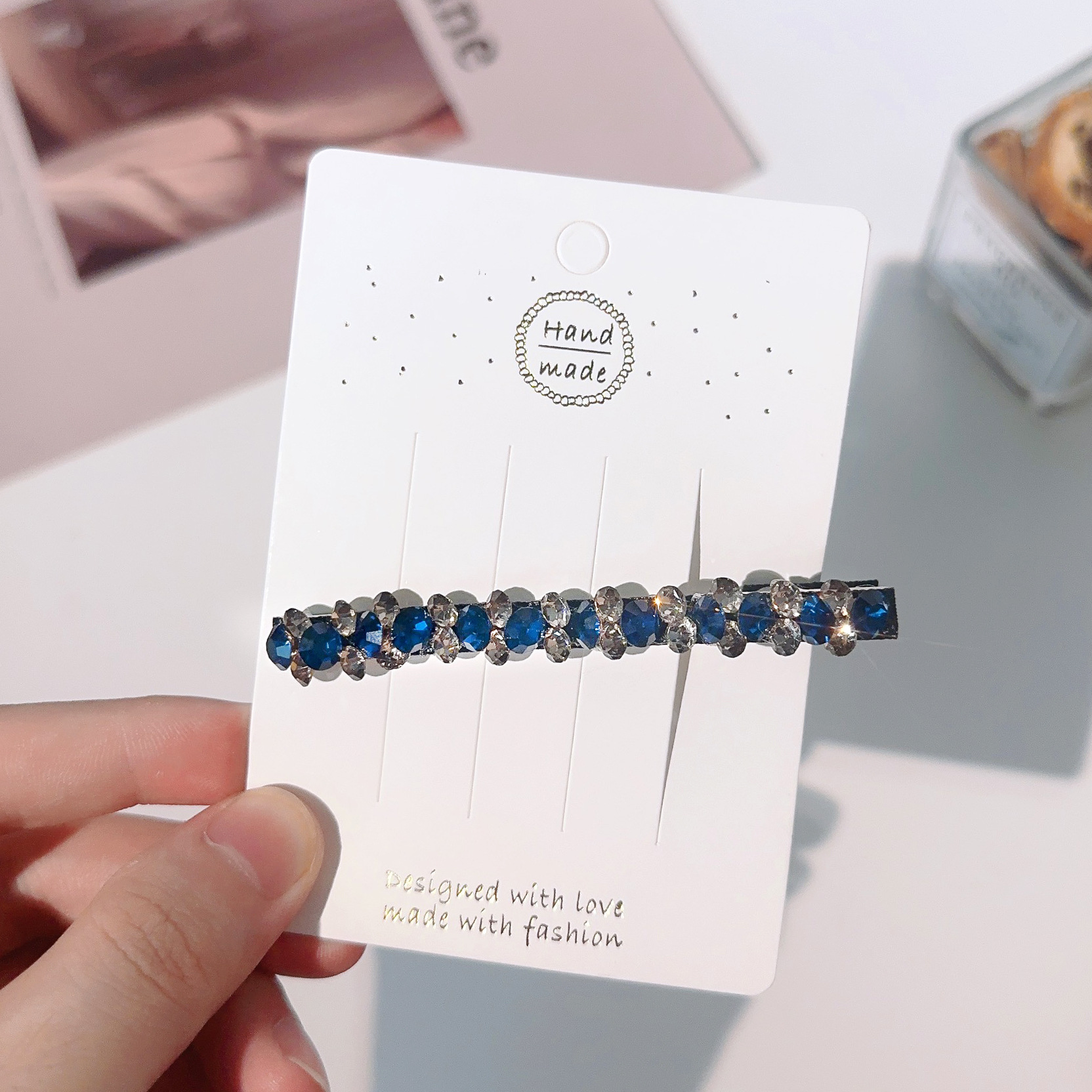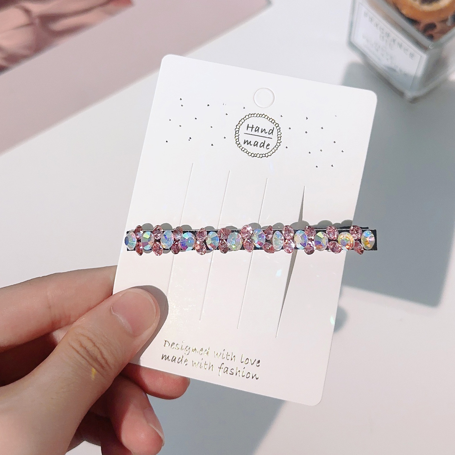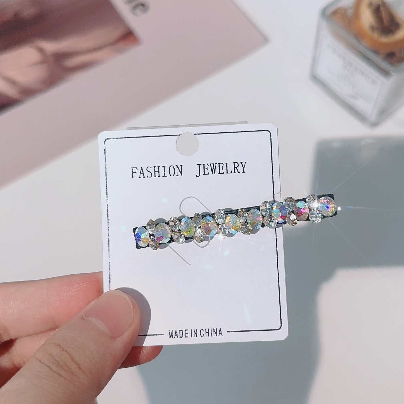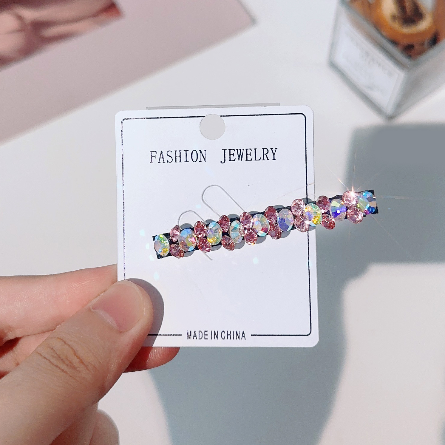 컬러 모조 다이아몬드 라인 석 틈새 사이드 헤어핀 클립 앞머리 클립 새로운 컬러 다이아몬드 그물 붉은 깨진 머리 고급 덕빌스토어 가기