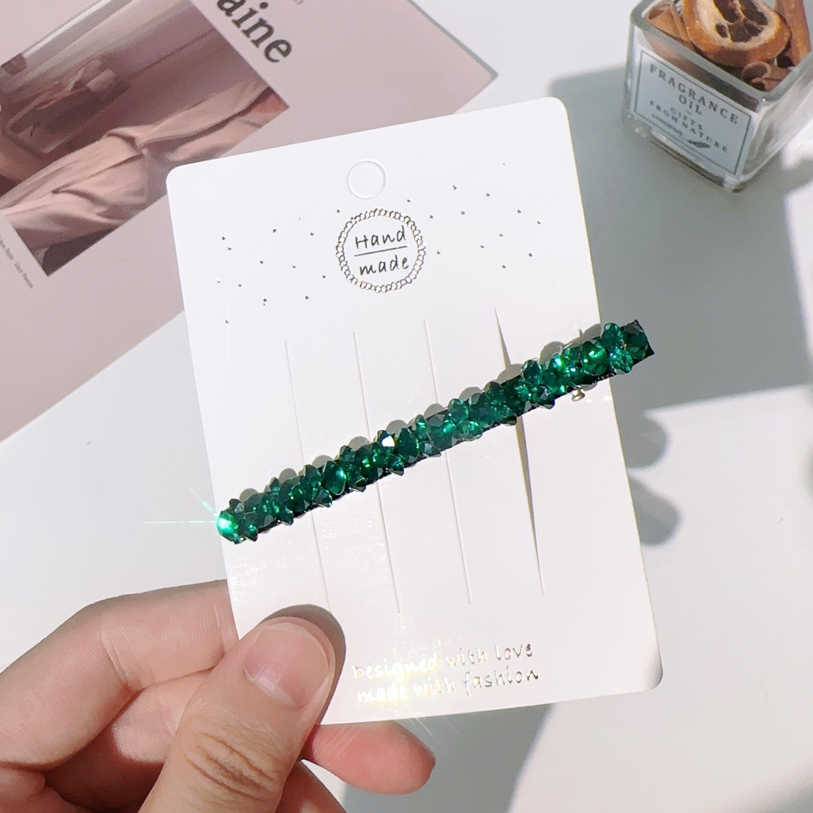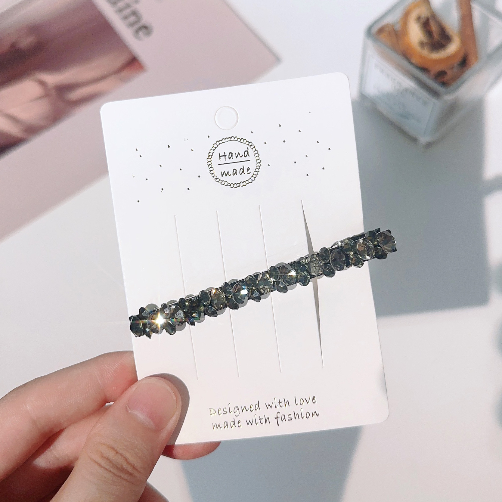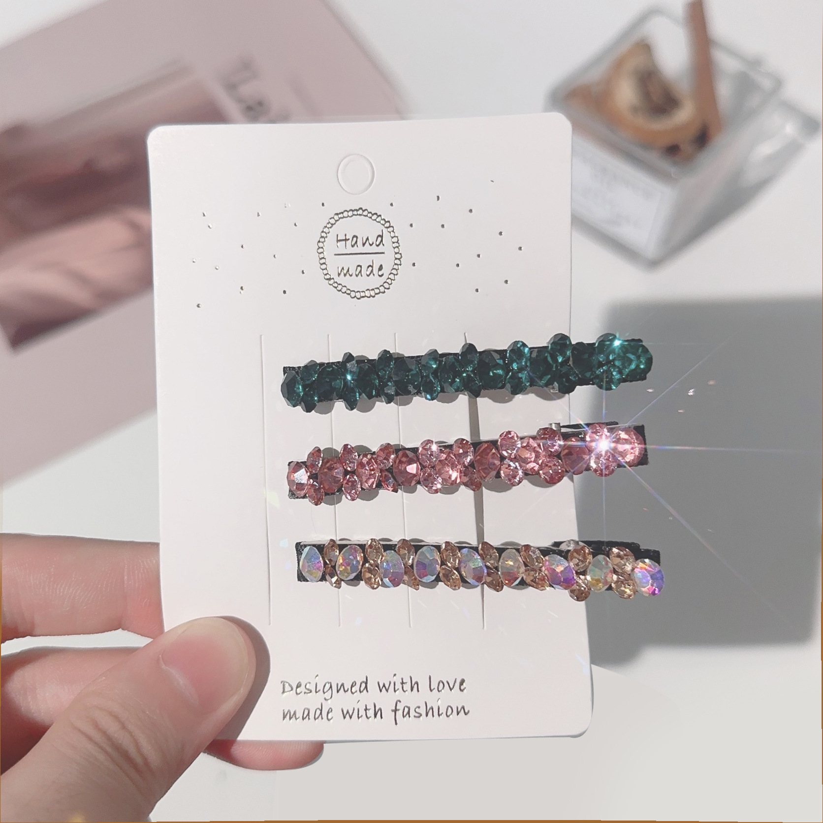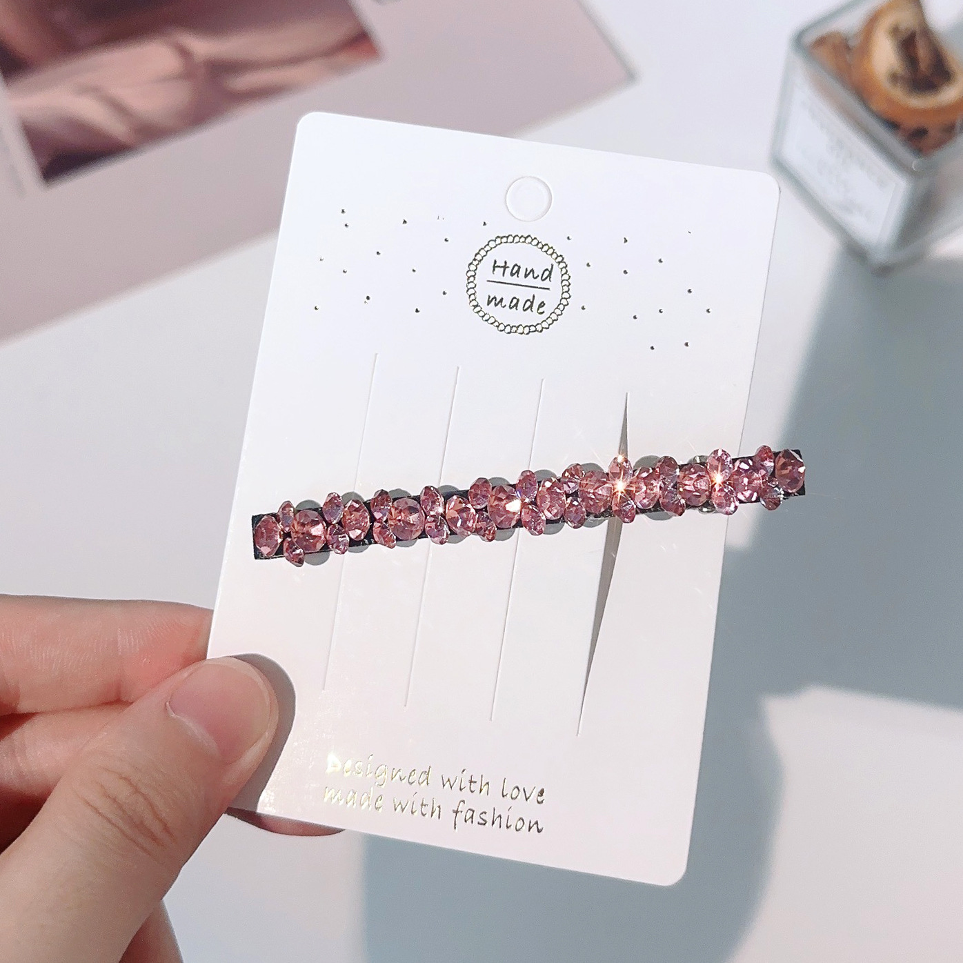 컬러 모조 다이아몬드 라인 석 틈새 사이드 헤어핀 클립 앞머리 클립 새로운 컬러 다이아몬드 그물 붉은 깨진 머리 고급 덕빌스토어 가기