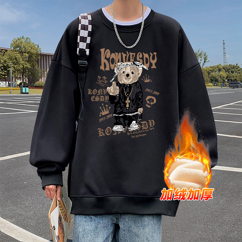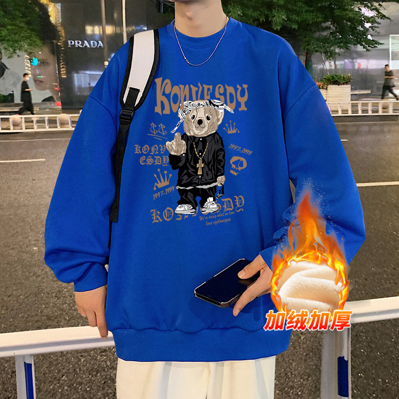 2023 새로운 남성 스웨터 가을과 겨울 기모 두꺼운 미국 만화 패션 브랜드 조커 캐주얼 학생 기본 셔츠스토어 가기