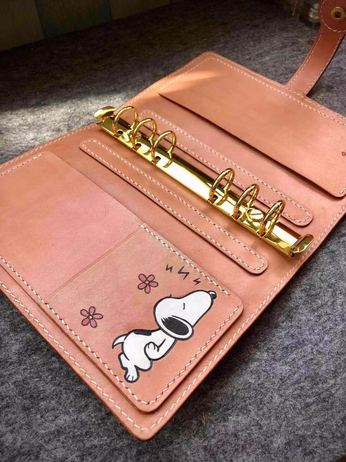 스누피 조인트 핸드 레저 다기능 A6 플랫 스톨 높은 색상 가치 아메리칸 스타일 레트로 소가죽 노트북 느슨한 잎스토어 가기