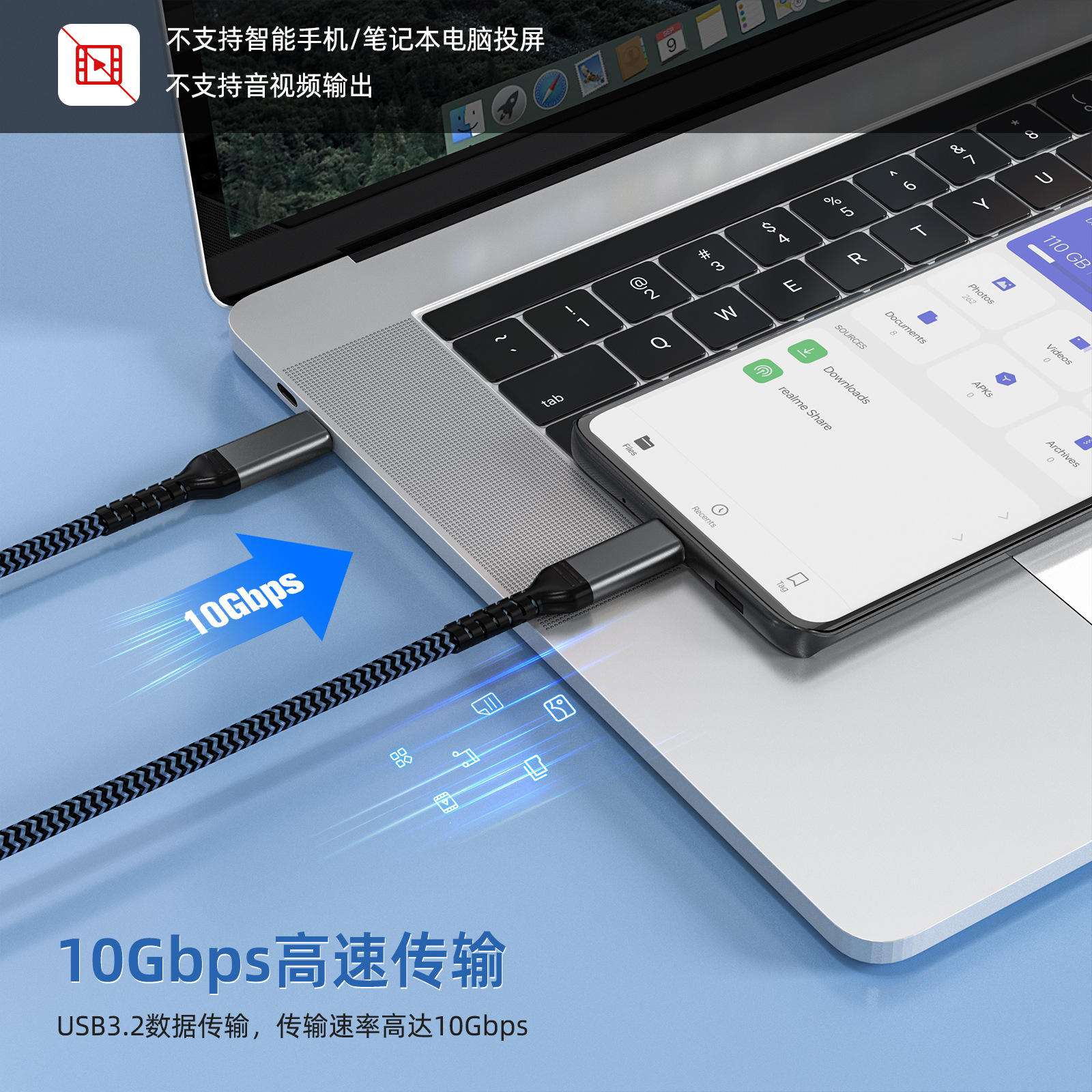 10Gbps C C pd 데이터 라인 유형-c 빠른 충전 라인 USB3.2 컴퓨터 하드 디스크 전송 케이블 60w