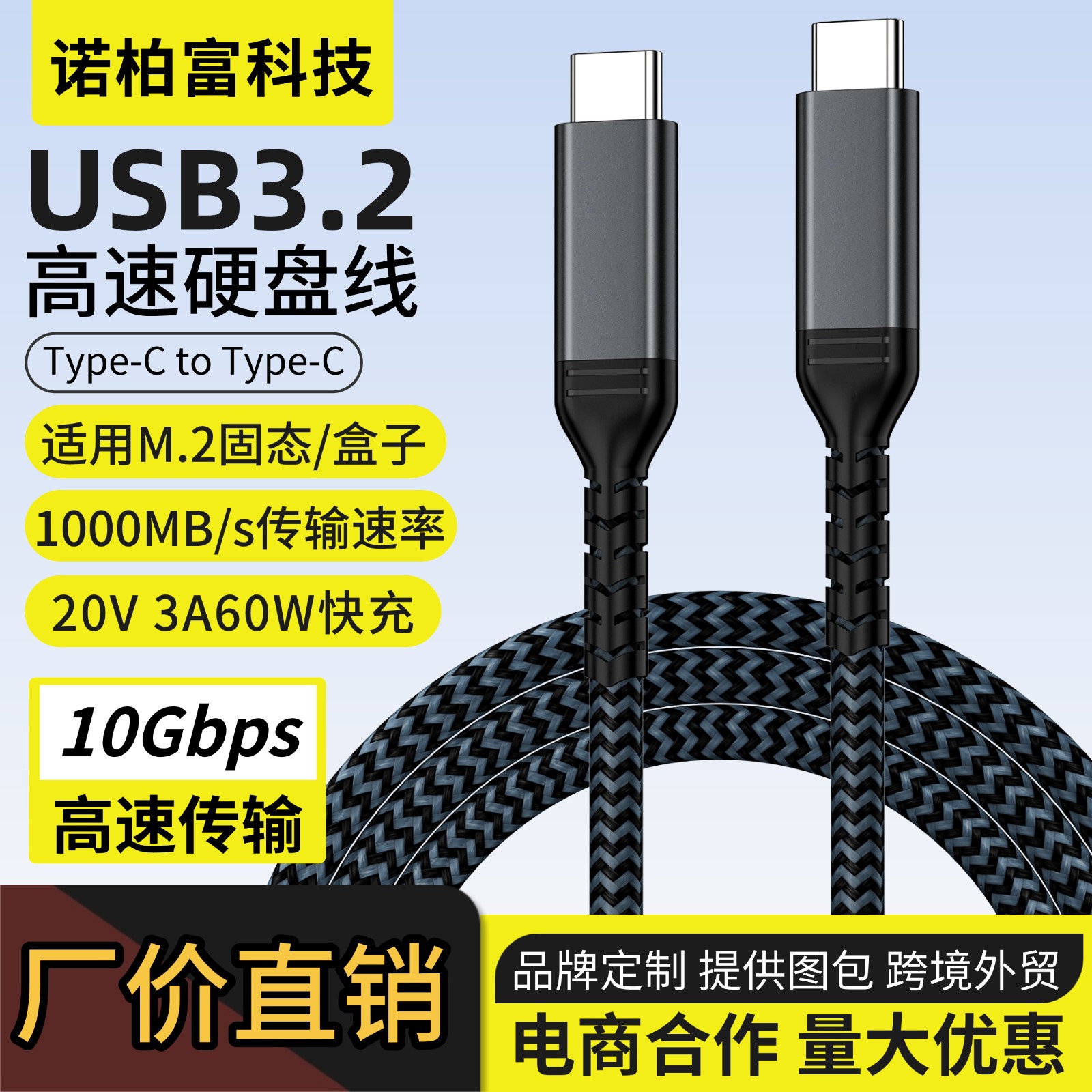 10Gbps C C pd 데이터 라인 유형-c 빠른 충전 라인 USB3.2 컴퓨터 하드 디스크 전송 케이블 60w스토어 가기