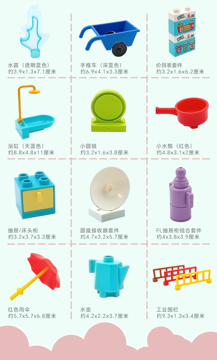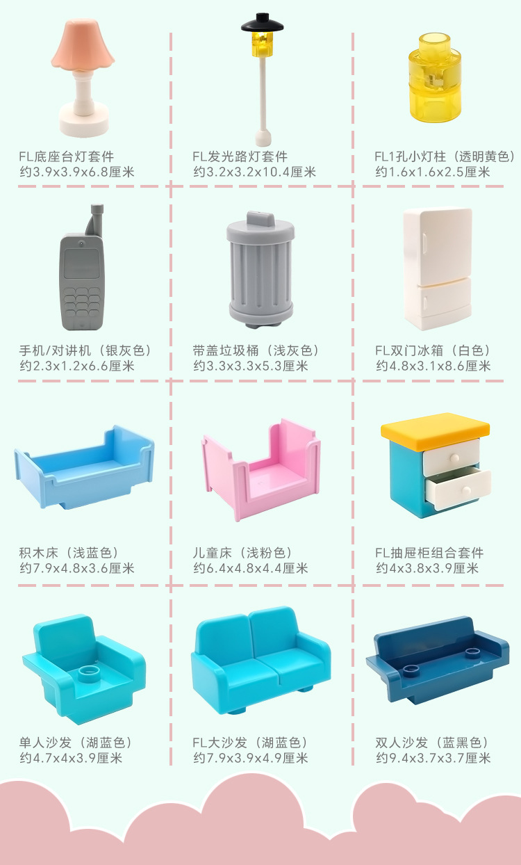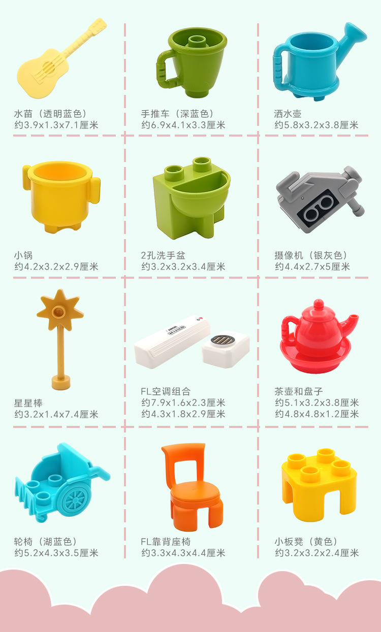 대형 곡물 제품 호환 빌딩 블록 가전 옷장 화장실 거울 침대 주전자 욕실 액세서리 플라스틱 벌크 장난감스토어 가기