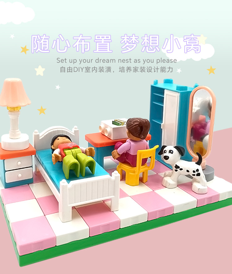 대형 곡물 제품 호환 빌딩 블록 가전 옷장 화장실 거울 침대 주전자 욕실 액세서리 플라스틱 벌크 장난감