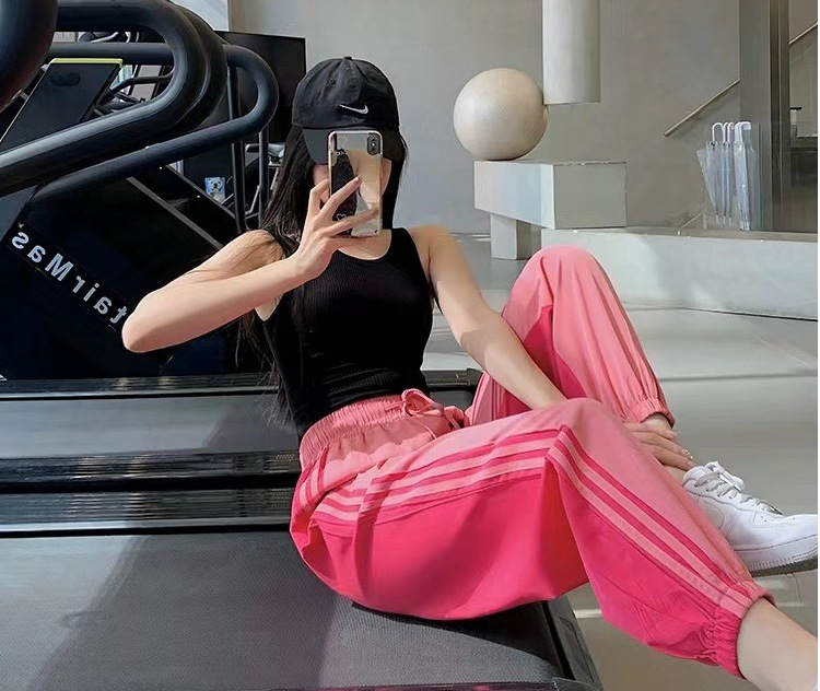 가을과 겨울 컬러 매칭 드로스트링 느슨한 요가 바지 여성용 러닝 캐주얼 스포츠 바지 할란 다리 통기성 속건 피트니스 바지