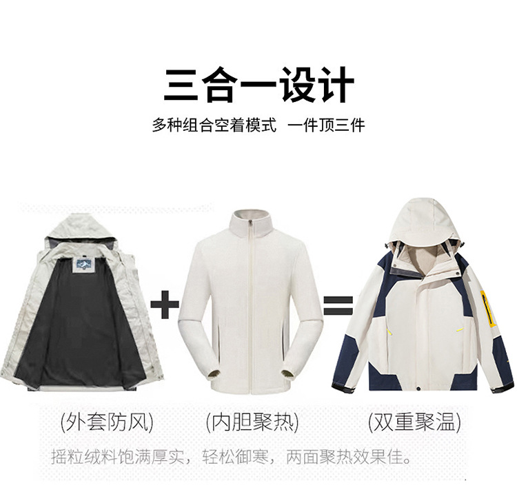 552 Three-in-One 재킷 남성용 및 여성용 투피스 세트 이동식 내부 담요 티베트 여행 세트 남성용 낚시 세트 스키 세트