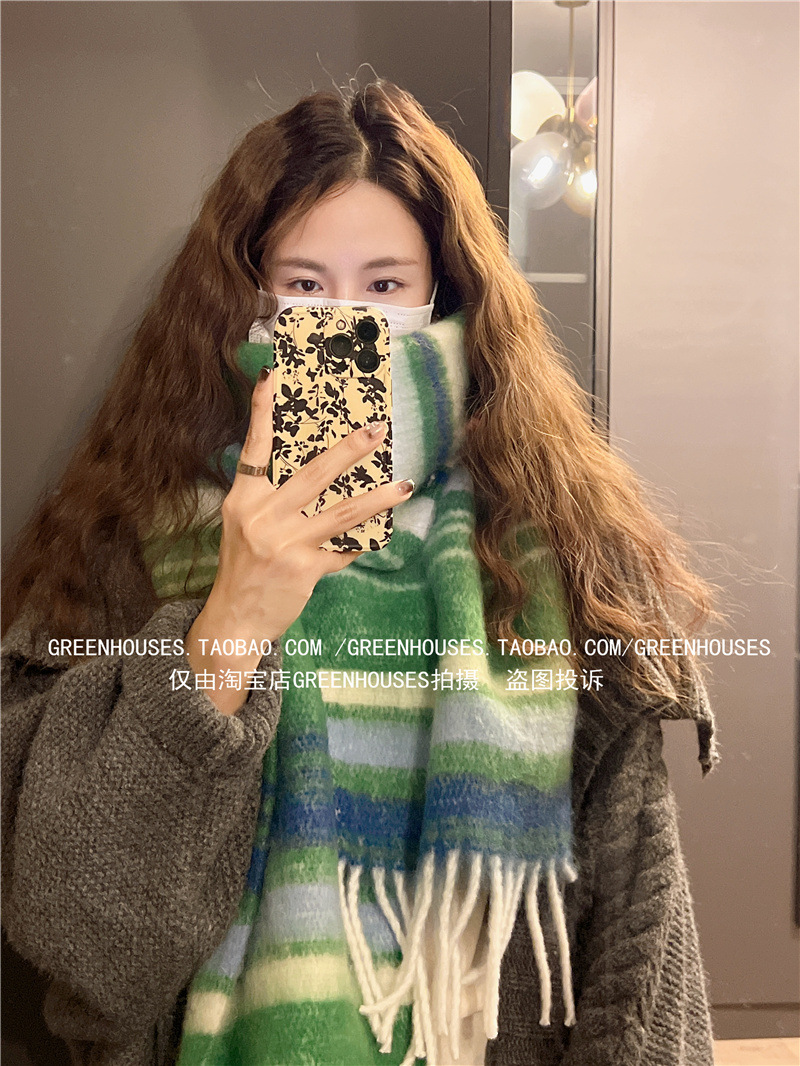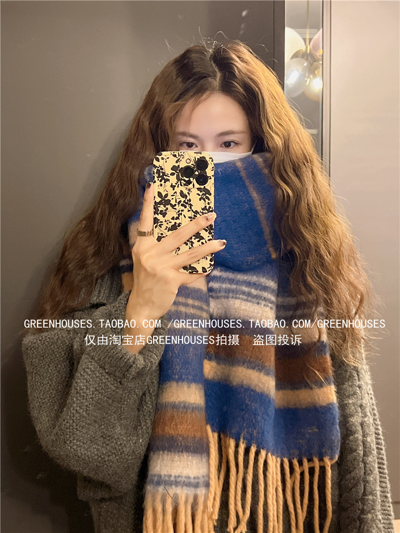 모조 캐시미어 빈티지 스트라이프 스카프 여성의 가을과 겨울 새로운 한국 스타일 학생 커플 따뜻한 스카프 술 격자 무늬 숄스토어 가기