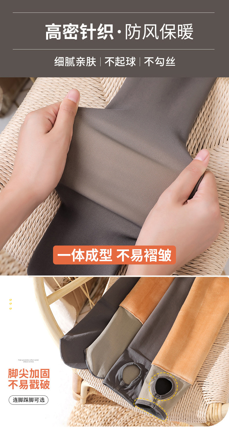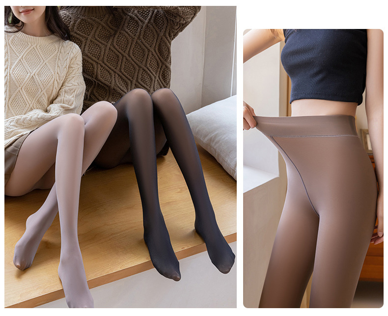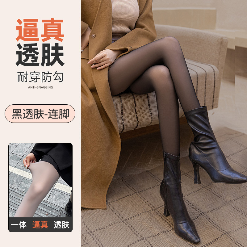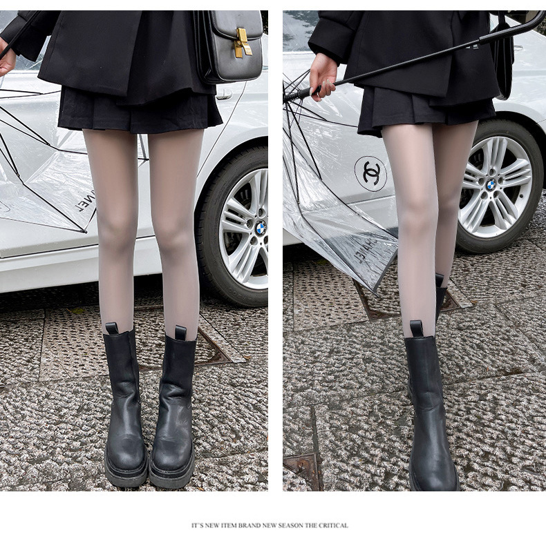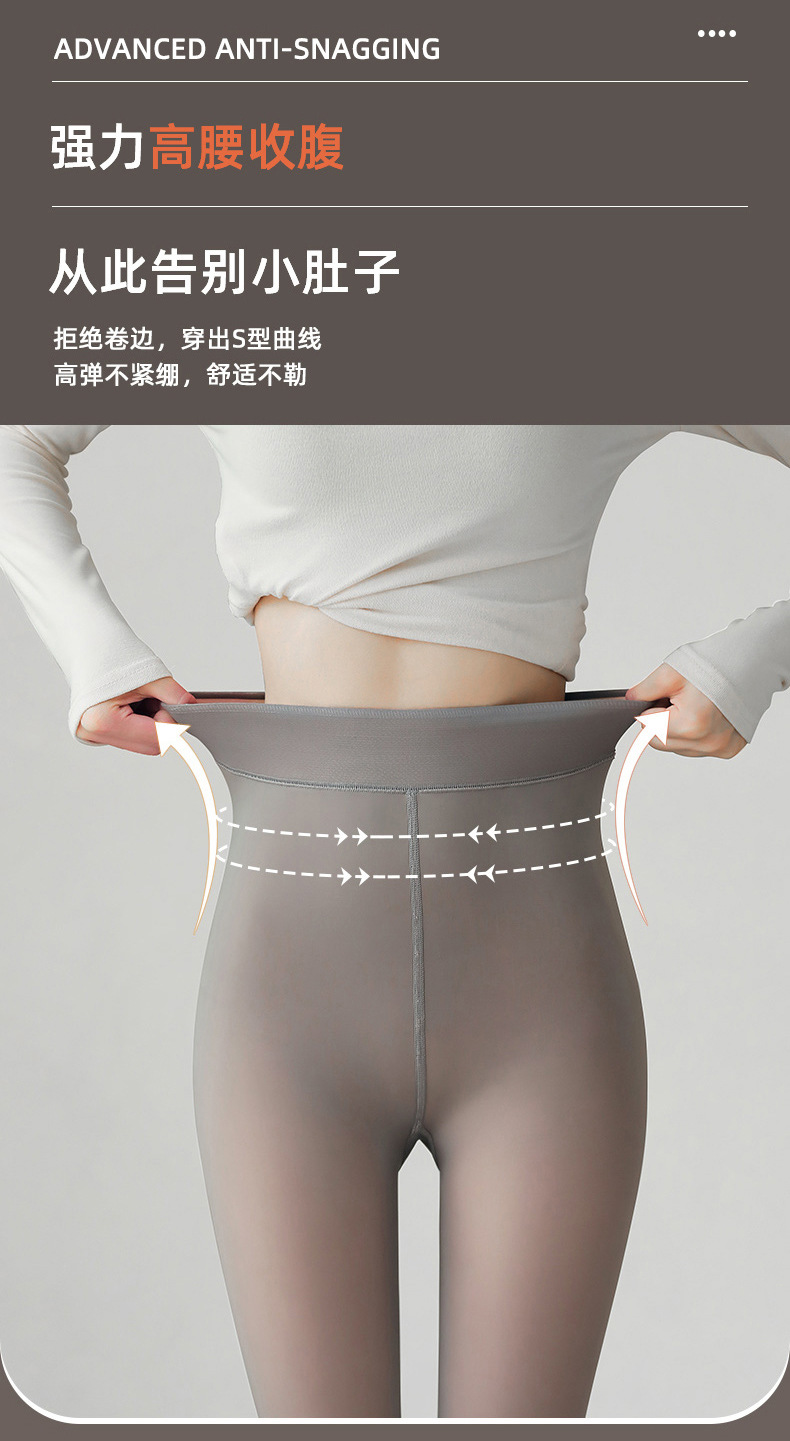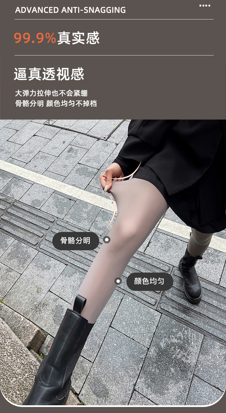 가을과 겨울 기모 스튜어디스 그레이-블랙 피부 관통 레깅스 양말 두꺼운 가짜 고기 외부 착용 안티 후크 머서화 다리 아티팩트 여성