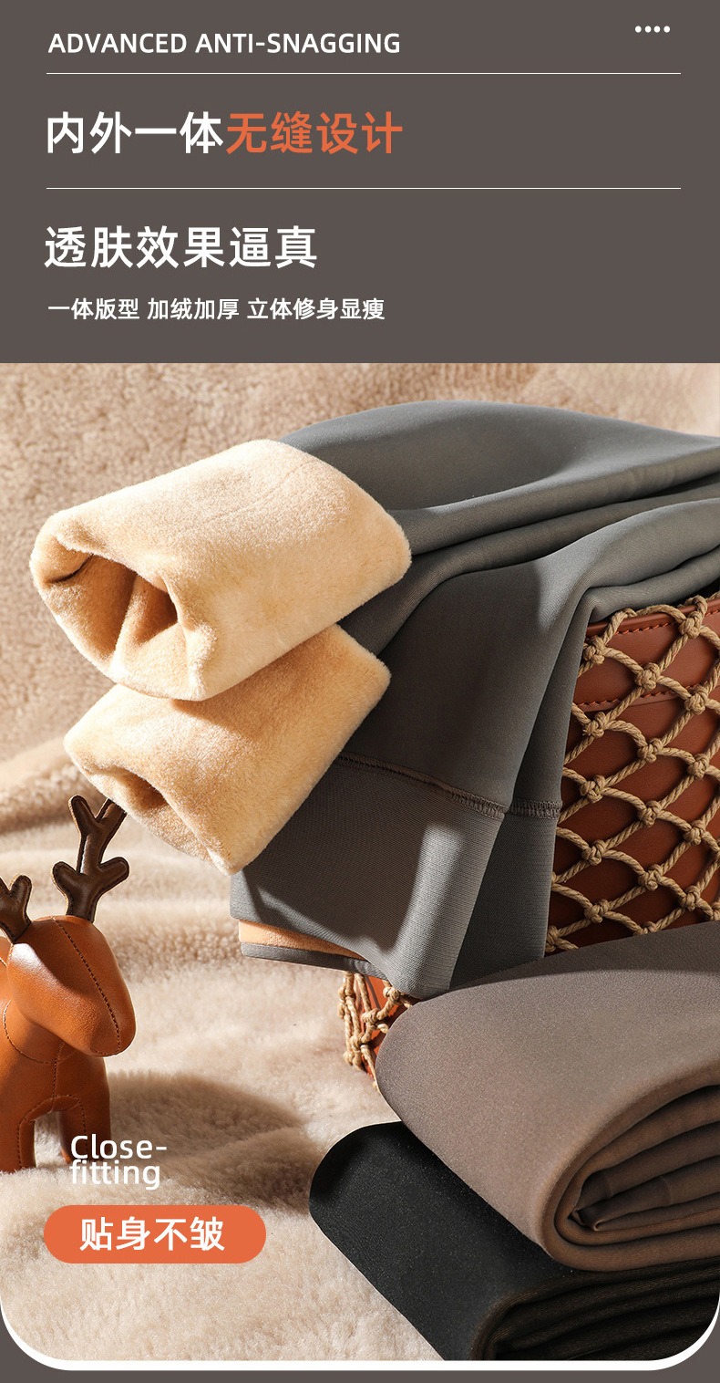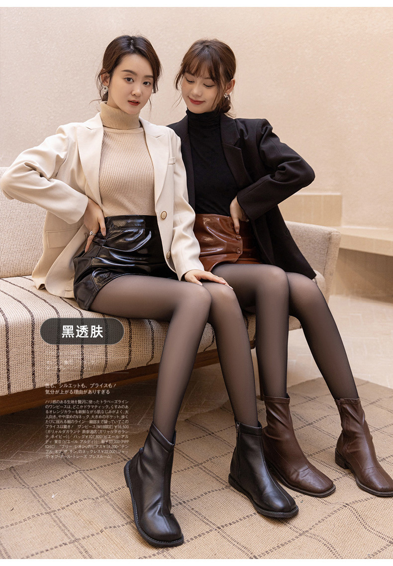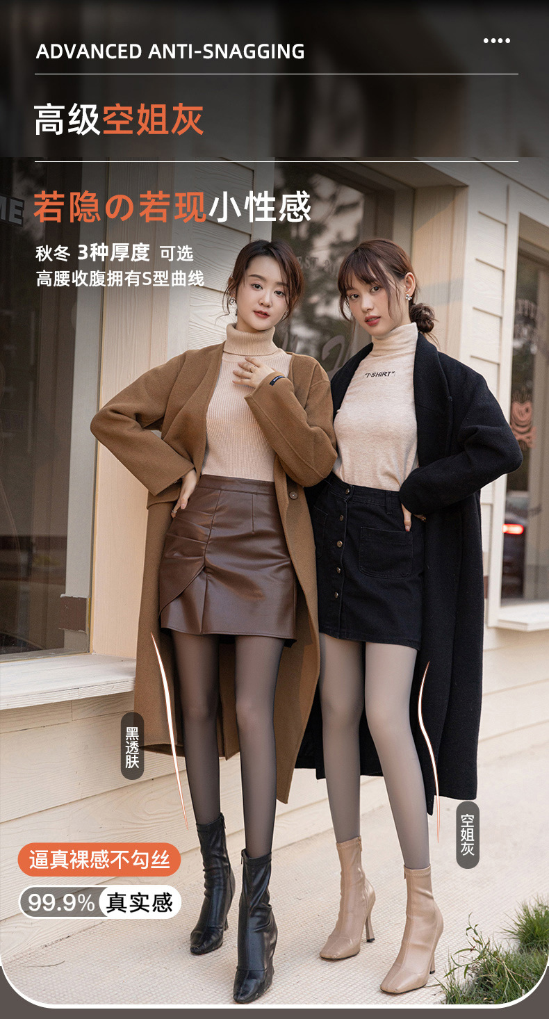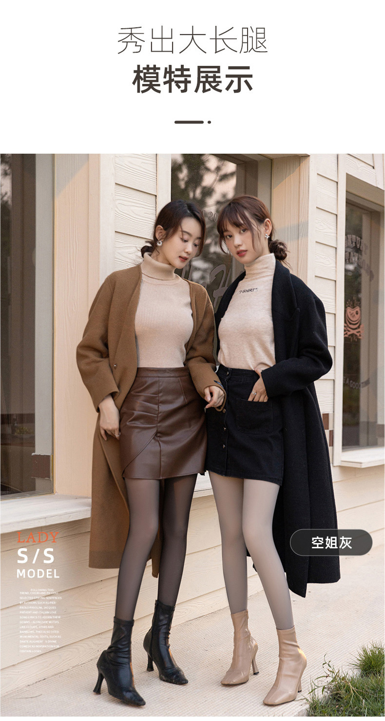 가을과 겨울 기모 스튜어디스 그레이-블랙 피부 관통 레깅스 양말 두꺼운 가짜 고기 외부 착용 안티 후크 머서화 다리 아티팩트 여성
