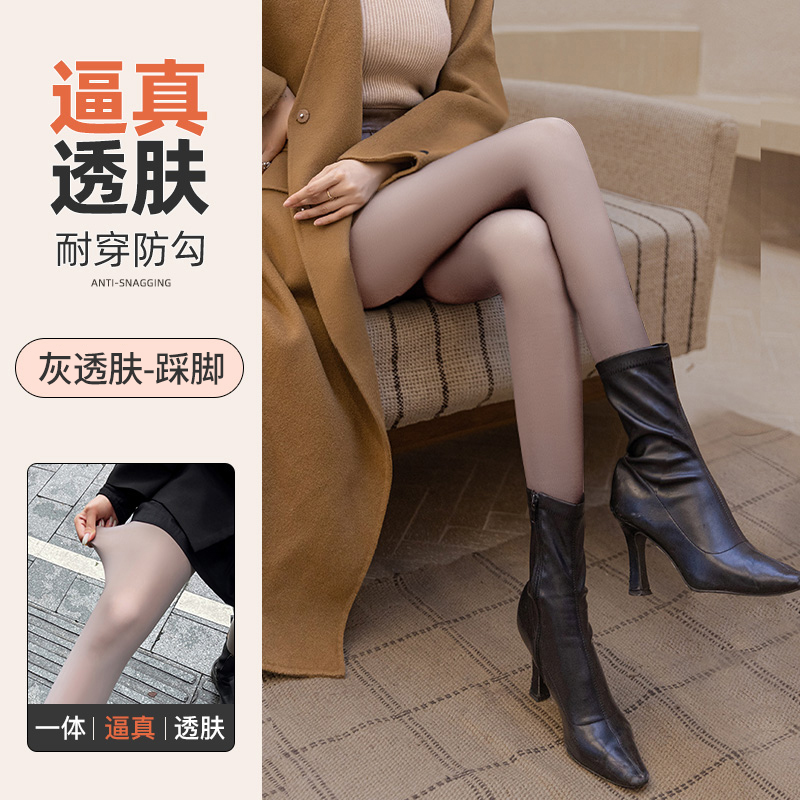 가을과 겨울 기모 스튜어디스 그레이-블랙 피부 관통 레깅스 양말 두꺼운 가짜 고기 외부 착용 안티 후크 머서화 다리 아티팩트 여성스토어 가기