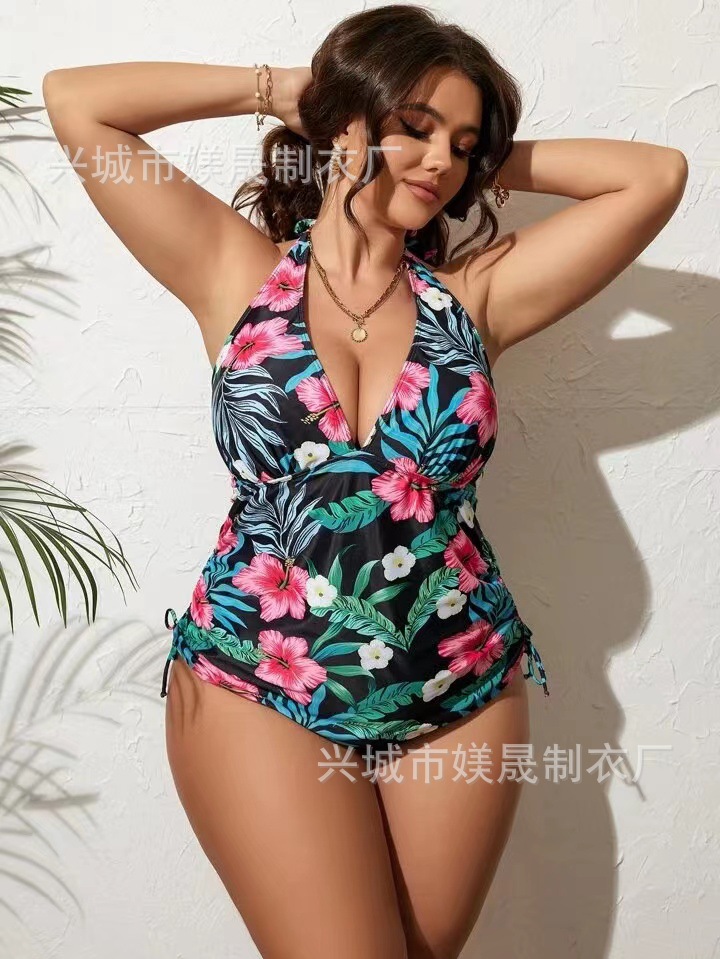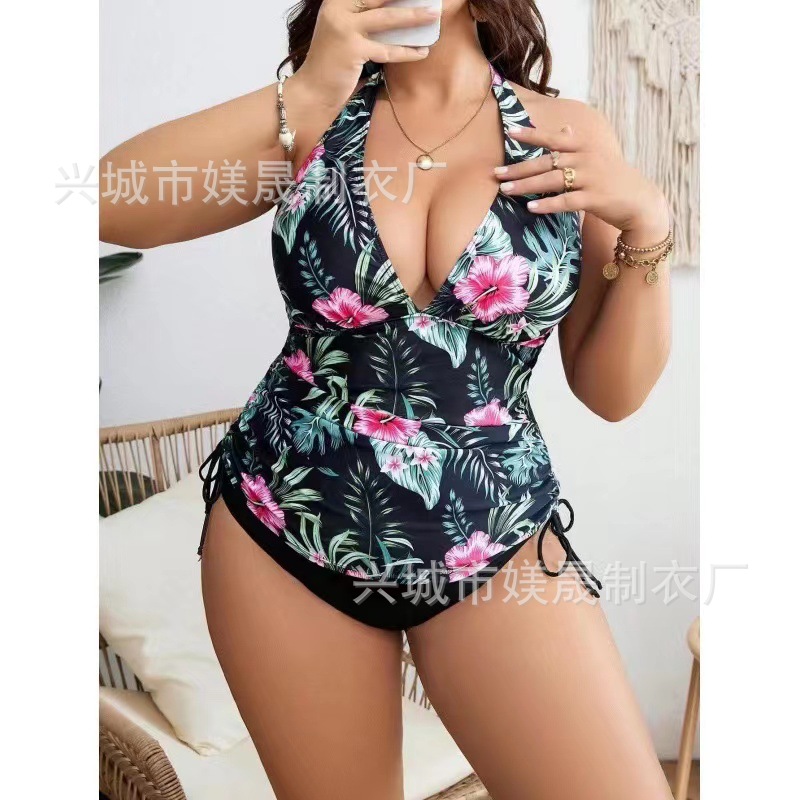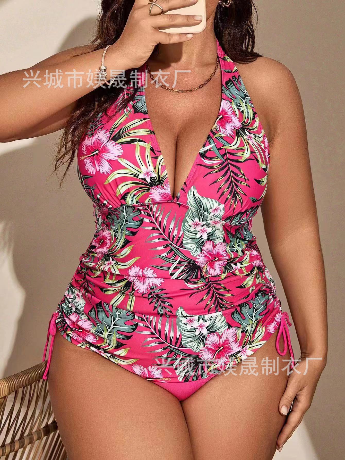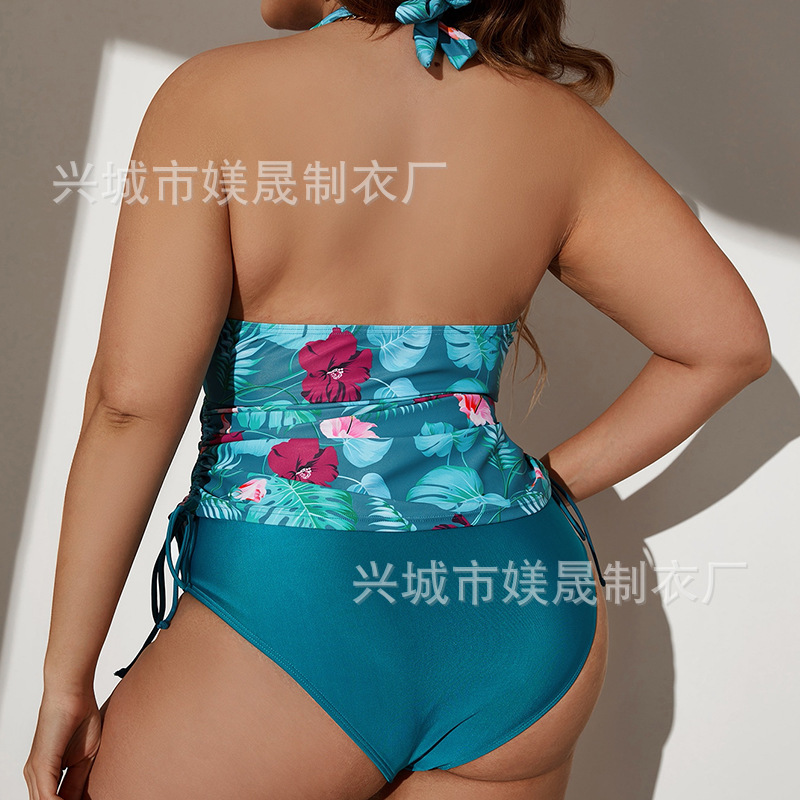 유럽과 미국의 새로운 대외 무역 크로스보더 대형 사이즈 스플릿 타이트 레이스업 하이웨이스트 백리스 섹시 비키니 수영복 세트(여성용)스토어 가기