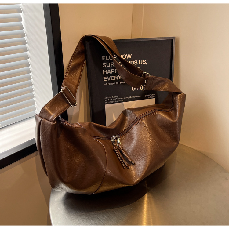 새로운 숄더푸 소프트 만두 백 크로스바디 백 만능 캐주얼 대용량 단색 여성 가방 트렌디한 해외 무역 크로스 보더 백스토어 가기