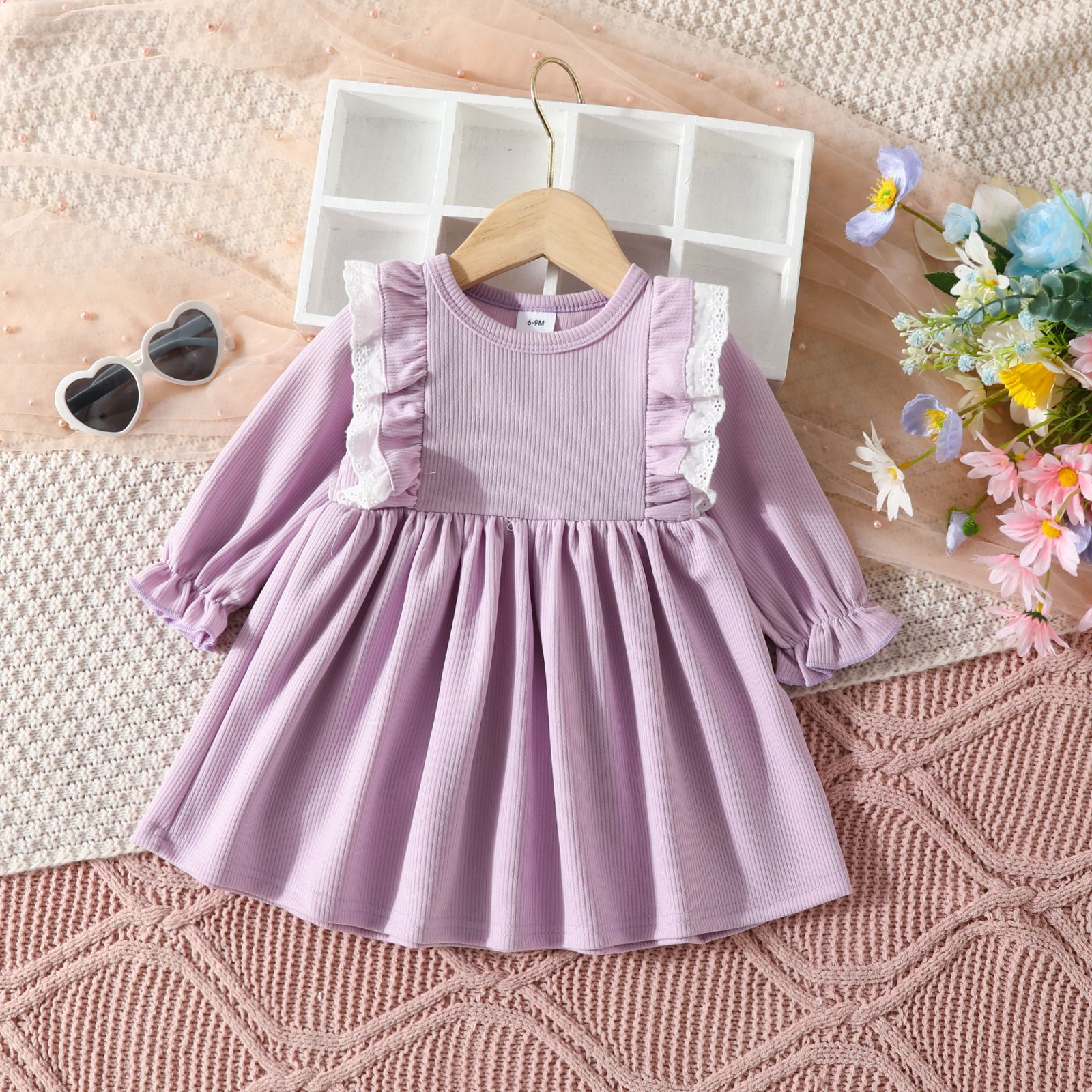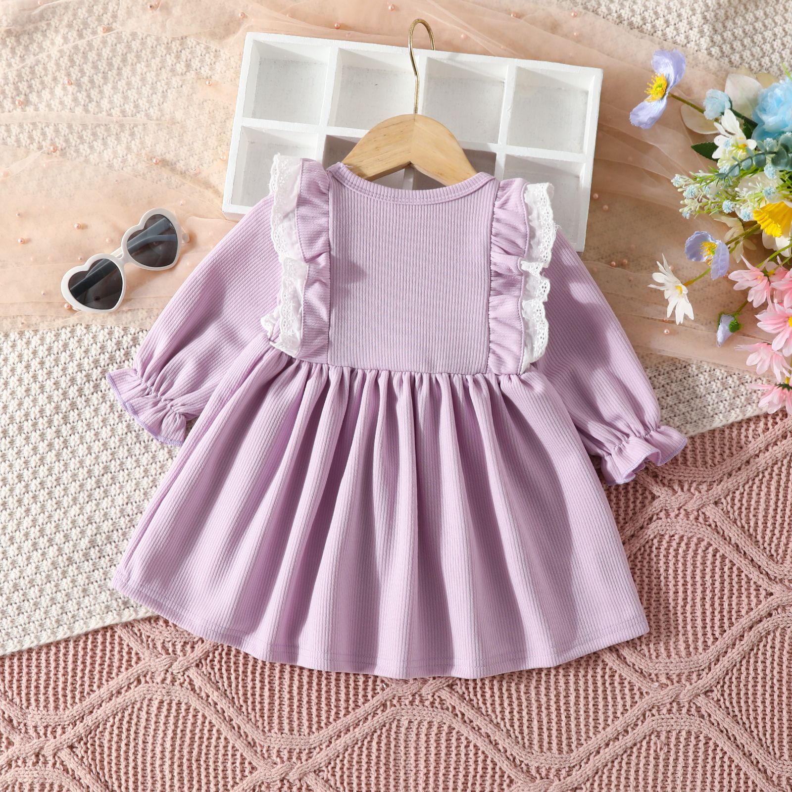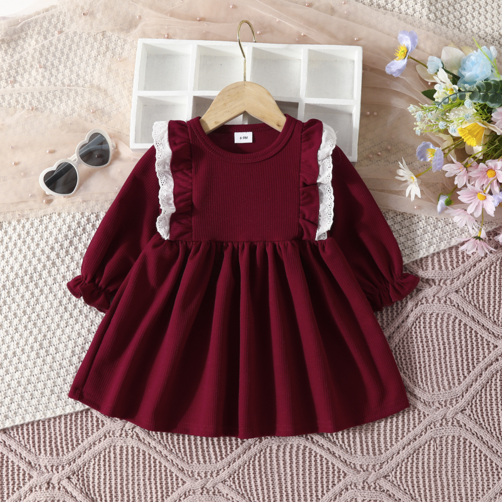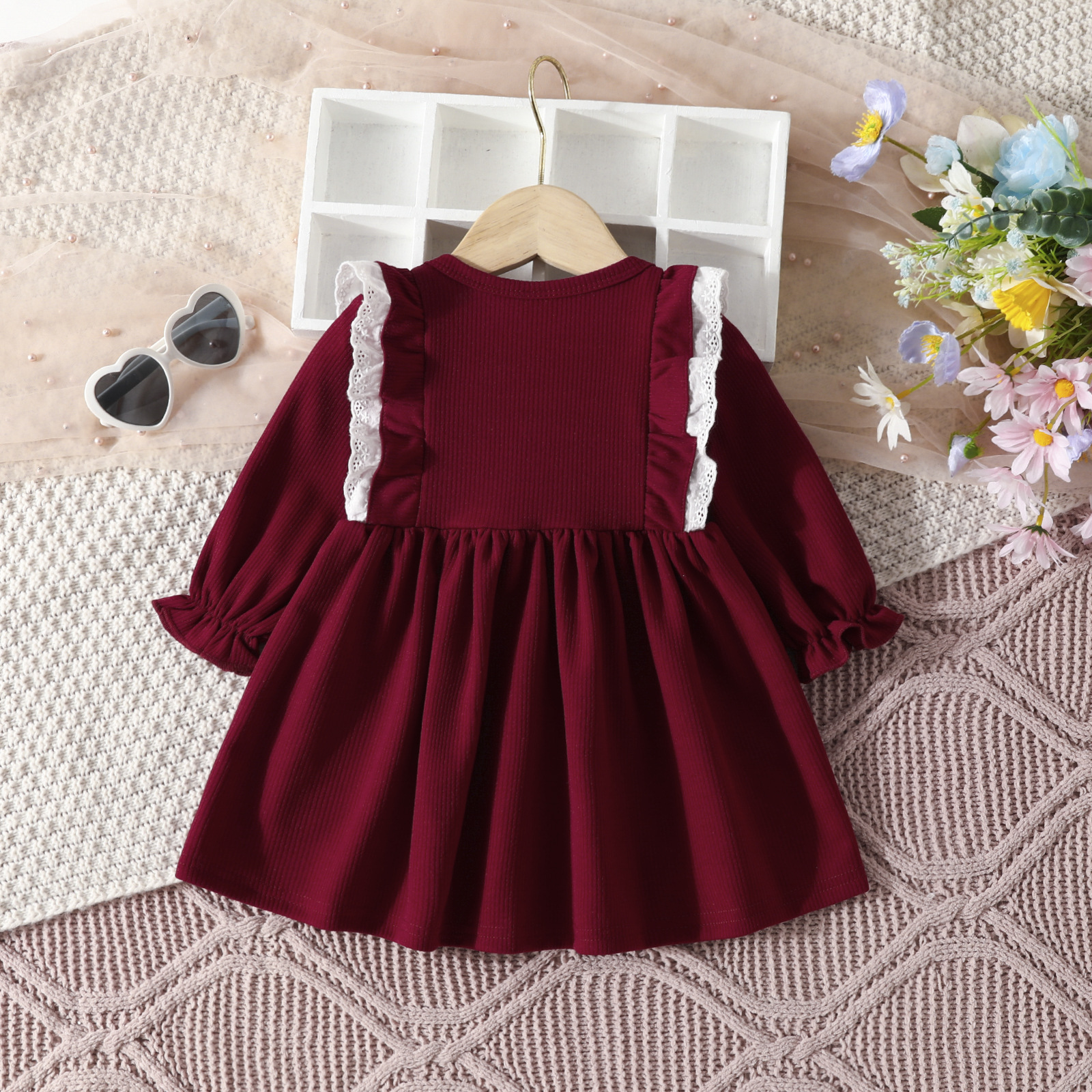 여자 A 라인 스커트 봄과 가을 2023 아기 아이들을 원피스 새로운 긴 소매 레이스 단색 A 라인 스커트 유럽과 미국스토어 가기
