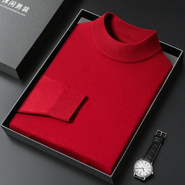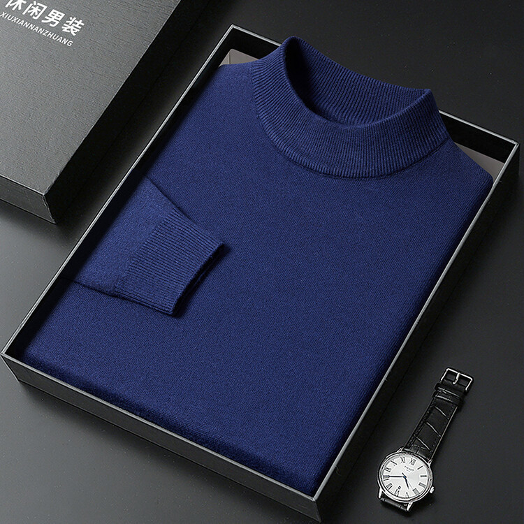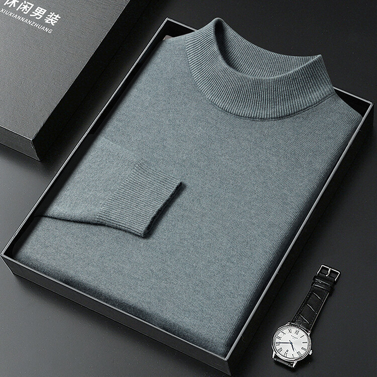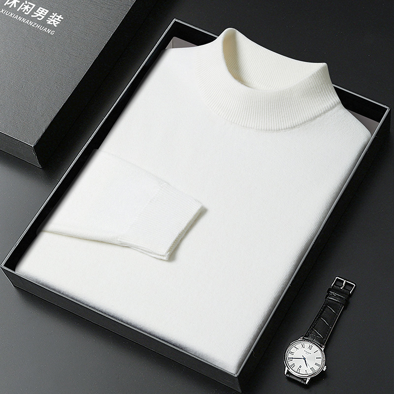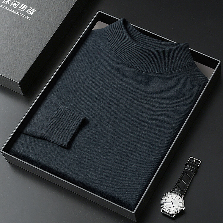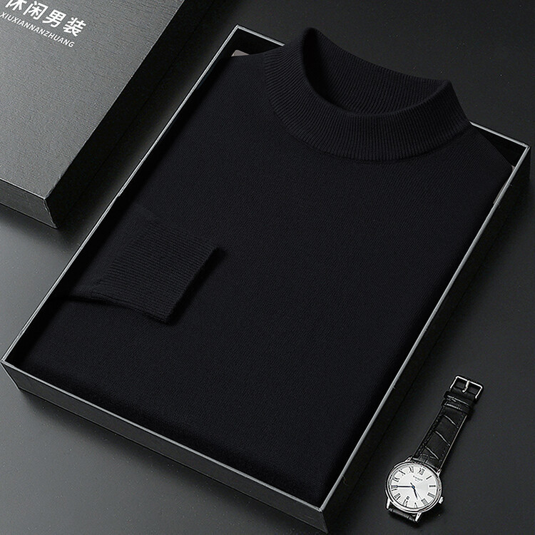 2023 중년 및 젊은 남성용 하프 하이 넥 긴팔 니트 스웨터 가을과 겨울 새로운 단색 따뜻한 베이스 셔츠