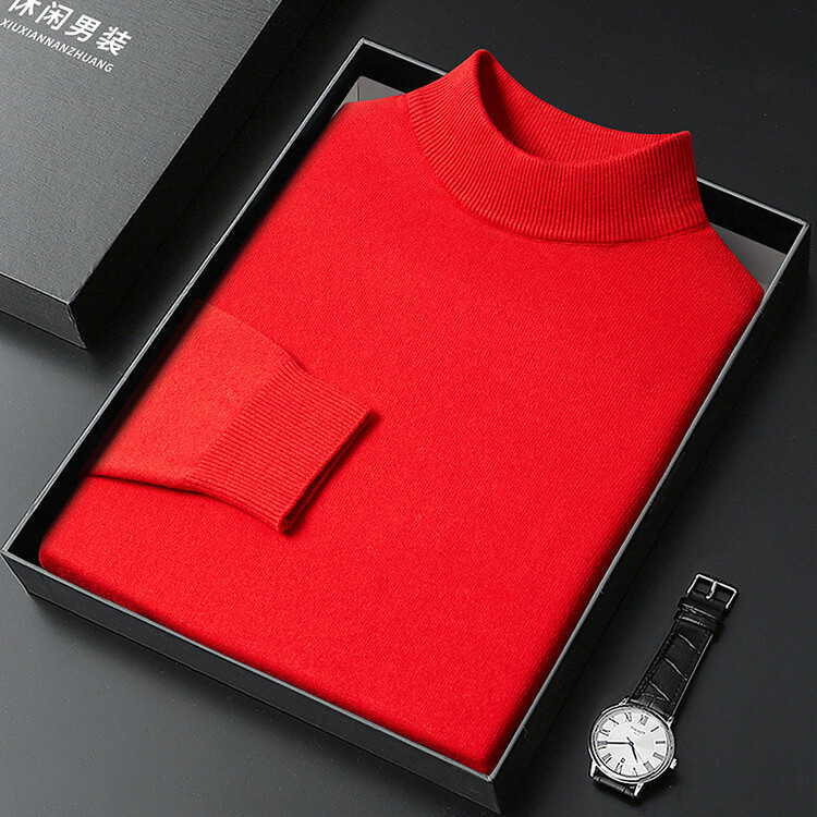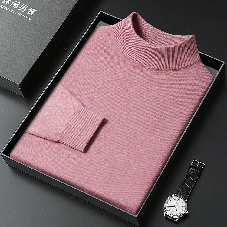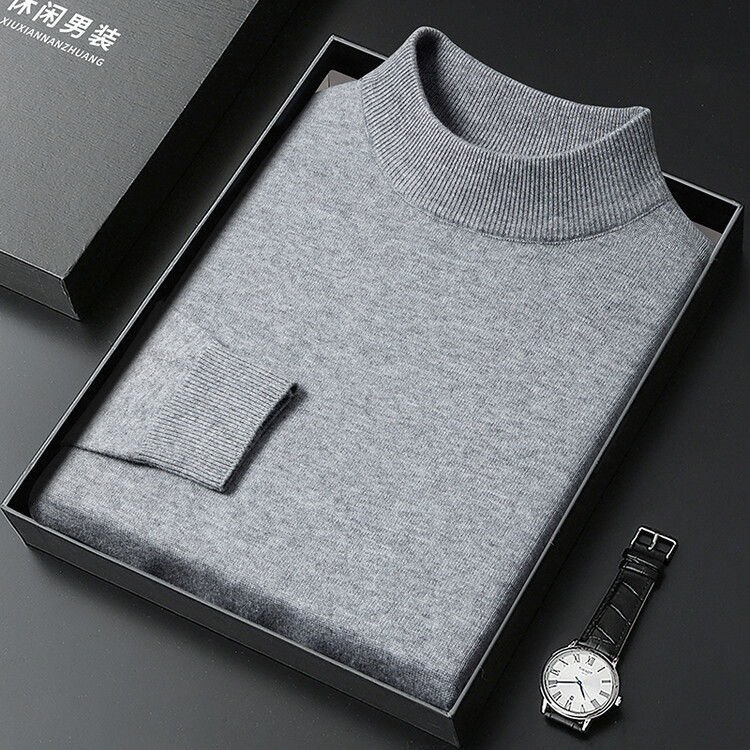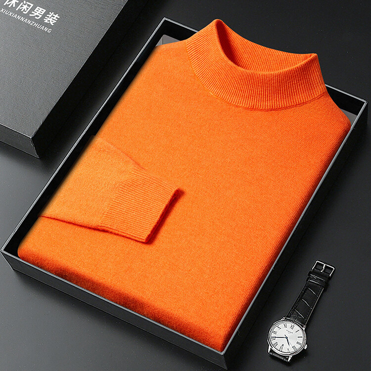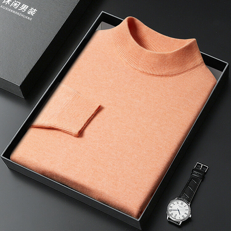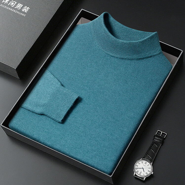 2023 중년 및 젊은 남성용 하프 하이 넥 긴팔 니트 스웨터 가을과 겨울 새로운 단색 따뜻한 베이스 셔츠