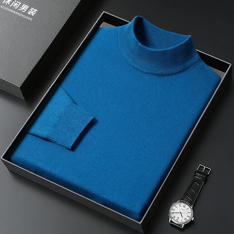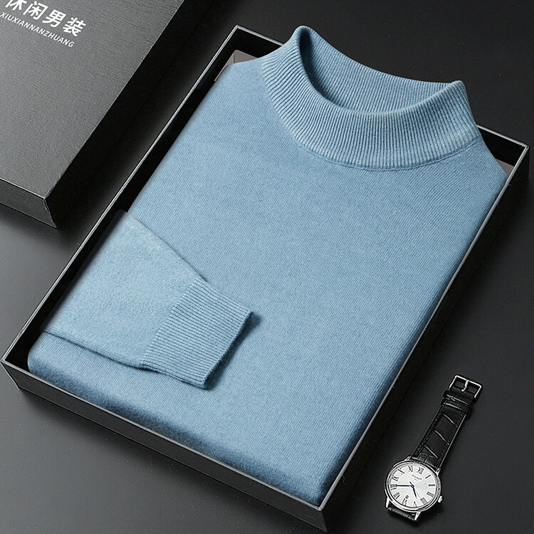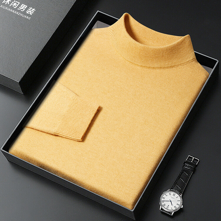 2023 중년 및 젊은 남성용 하프 하이 넥 긴팔 니트 스웨터 가을과 겨울 새로운 단색 따뜻한 베이스 셔츠스토어 가기