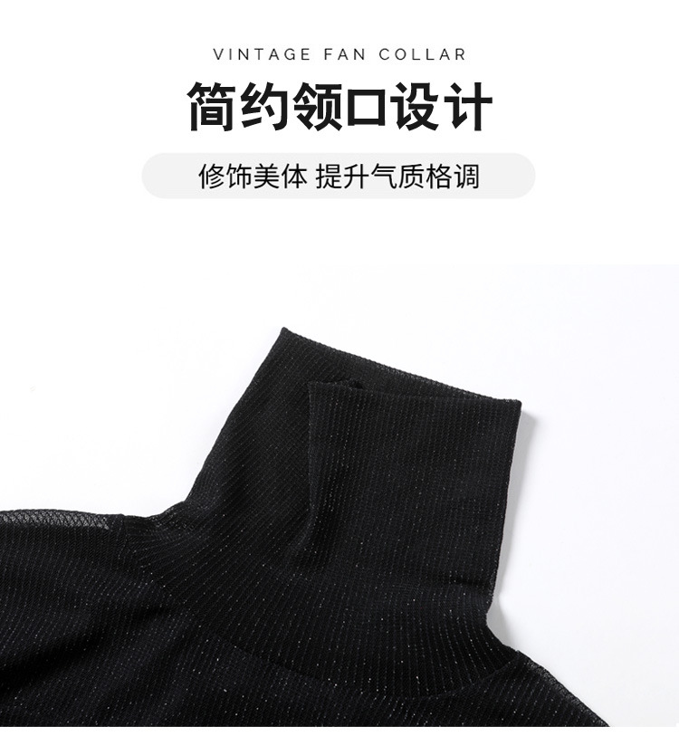 2023 가을 겨울 새로운 하이 칼라 심플 올매치 슬림핏 슬리밍 티셔츠 여성용 블랙 브라이트 실크 긴팔 메쉬 베이스 셔츠