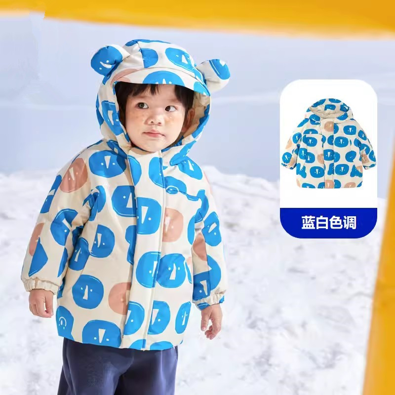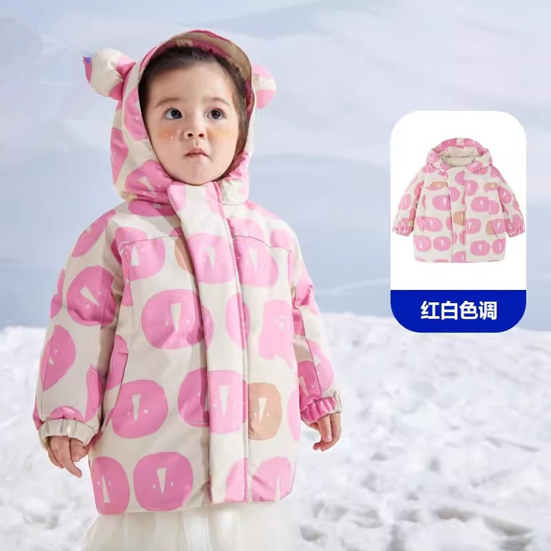 2025년 신상 에이지 베어 남아 여아 아동용 다운 재킷 겨울 신상 아기 따뜻하고 스타일리시한 후드 재킷