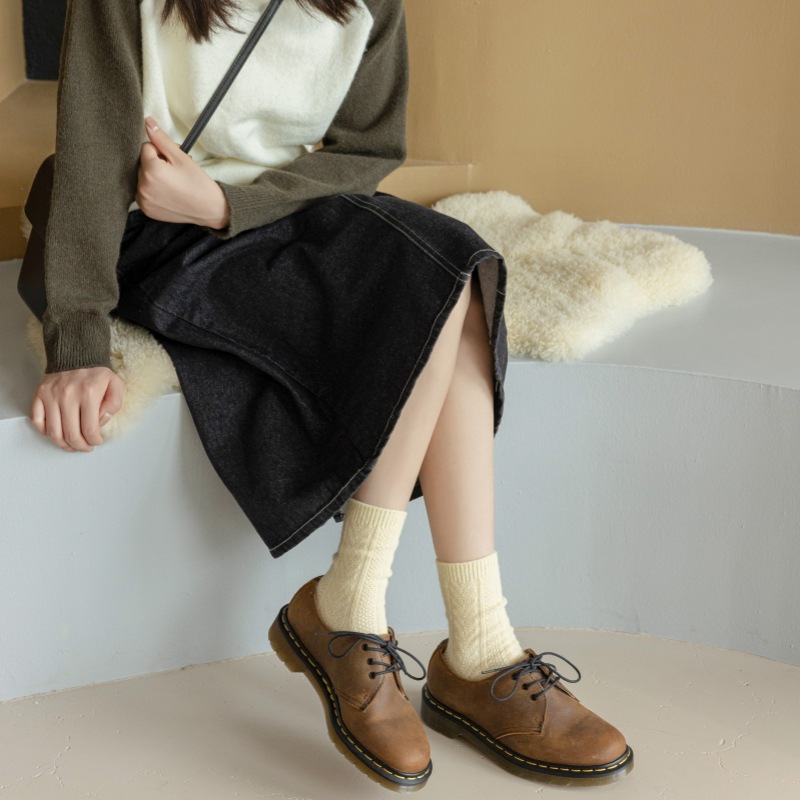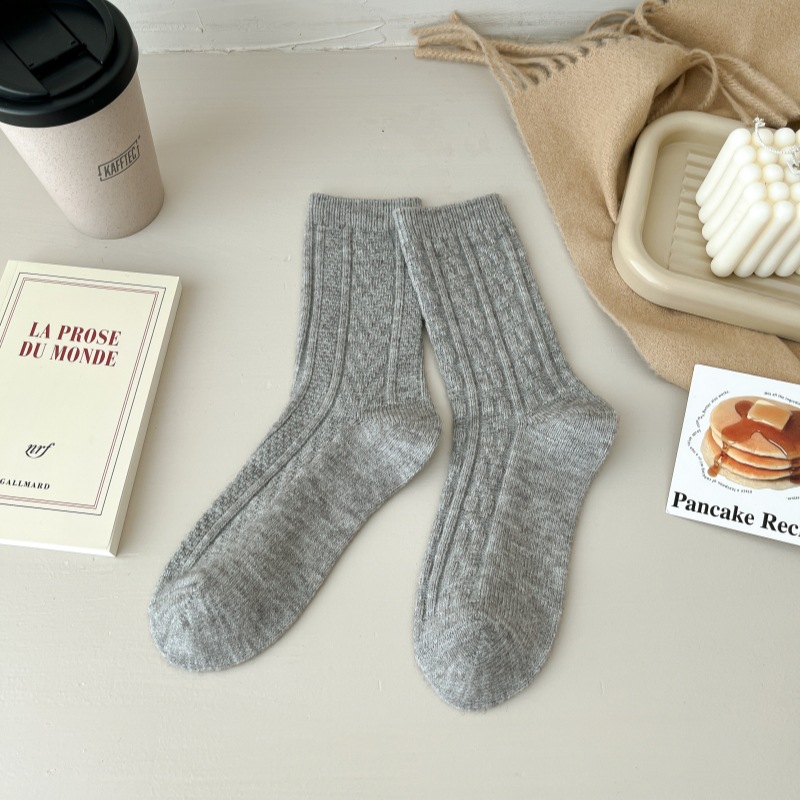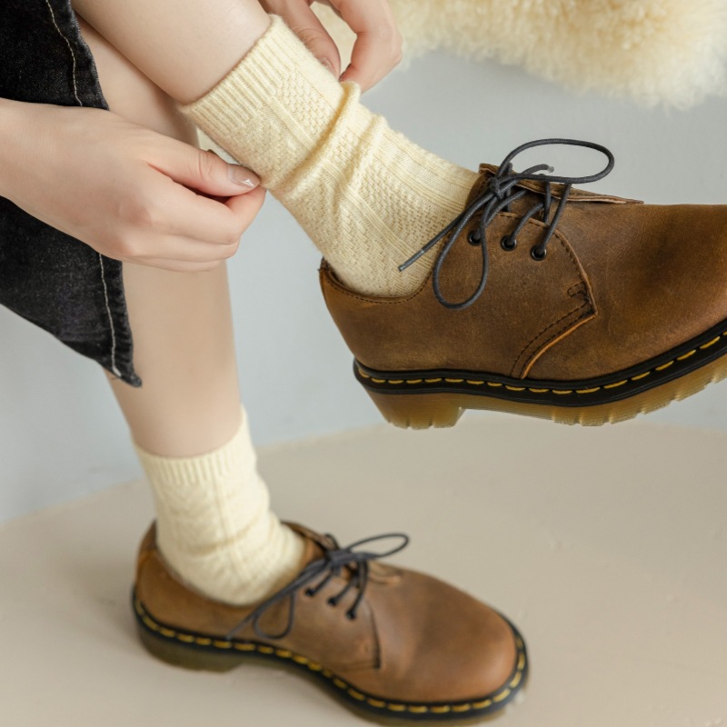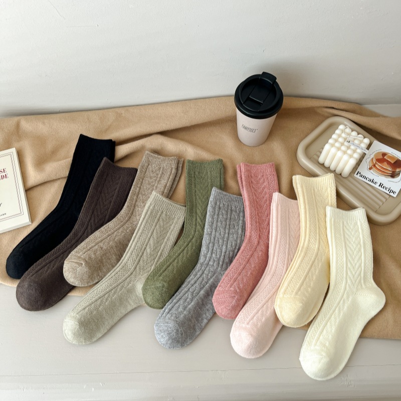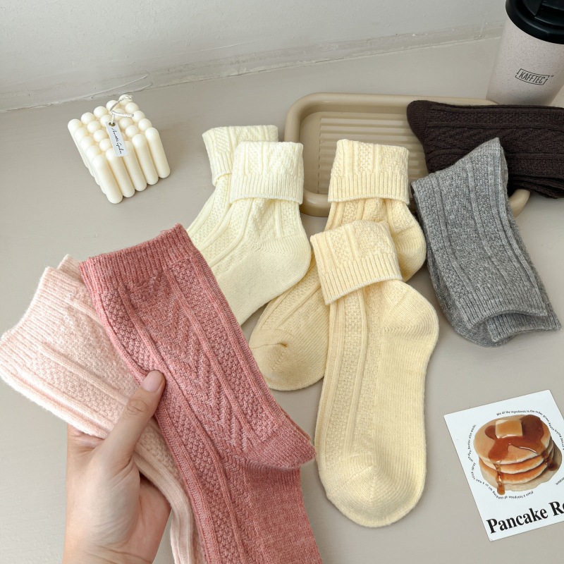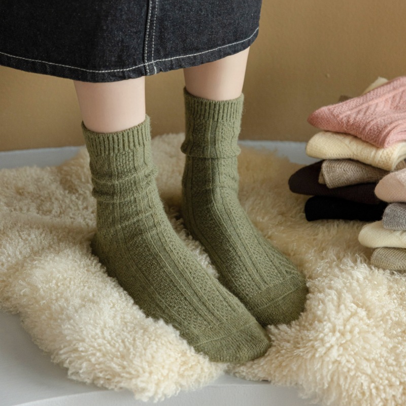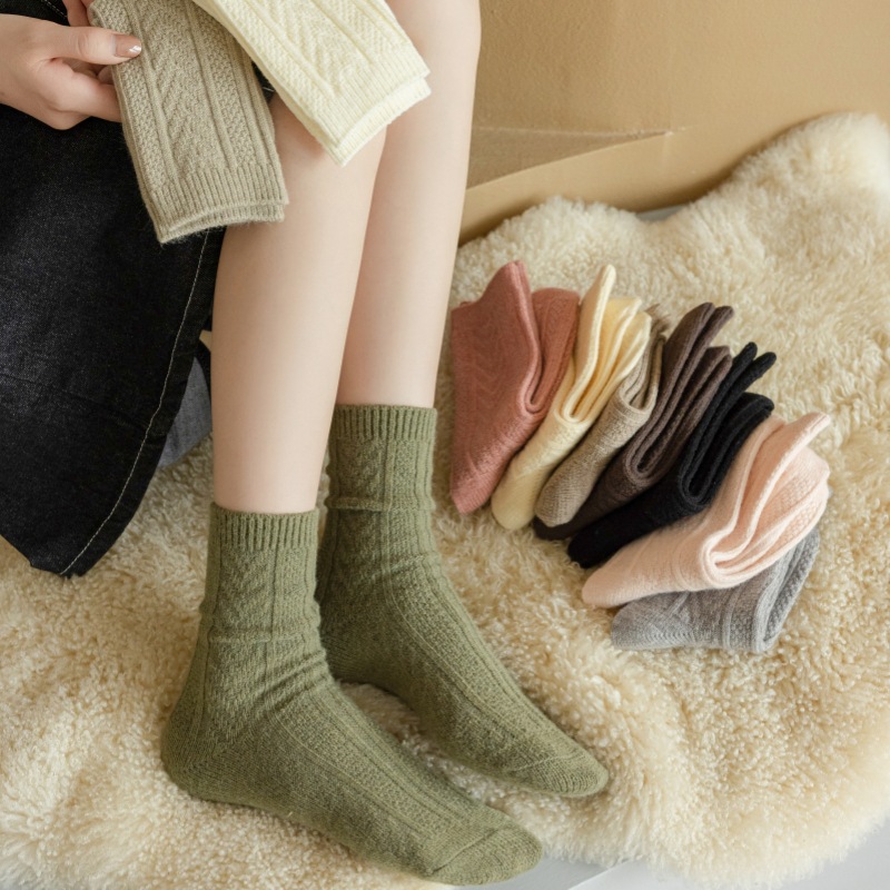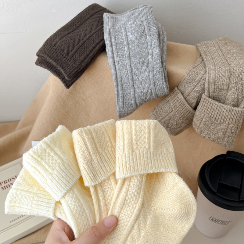 2023-가을과 겨울에 아이들을위한 양모 더미 양말 유행 미드 튜브 양말 두꺼운 따뜻한 로퍼 캐시미어 스타킹