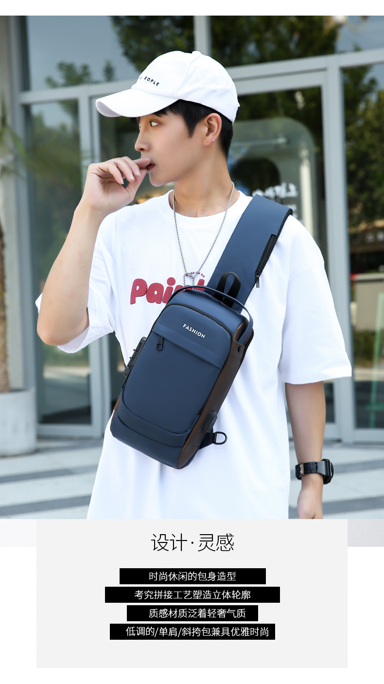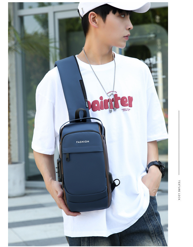 가슴 가방 남성 가방 숄더백 크로스 바디 백 옥스포드 천 캐주얼 남성 가방 새로운 스타일 트렌디 브랜드 비밀 번호가있는 작은 배낭