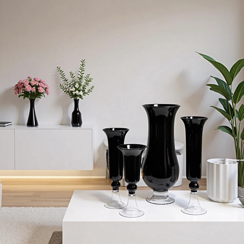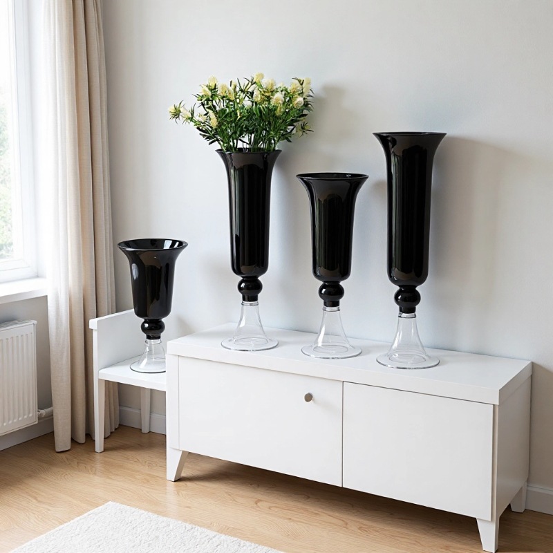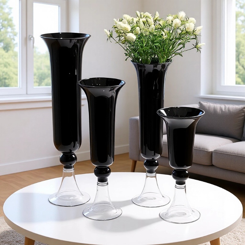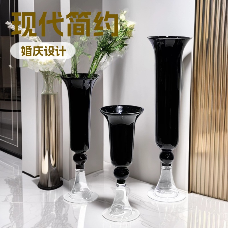 BBGLASS Baobei 유리 크리에이티브 블랙 화이트 유리 꽃병 웨딩 연회 홈 장식 장식품