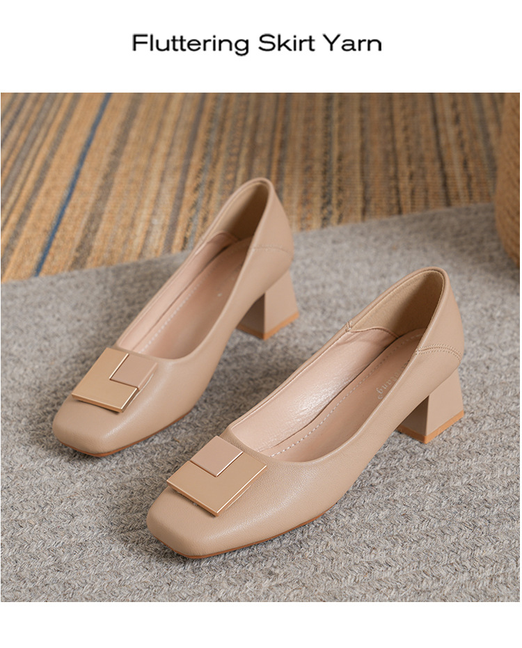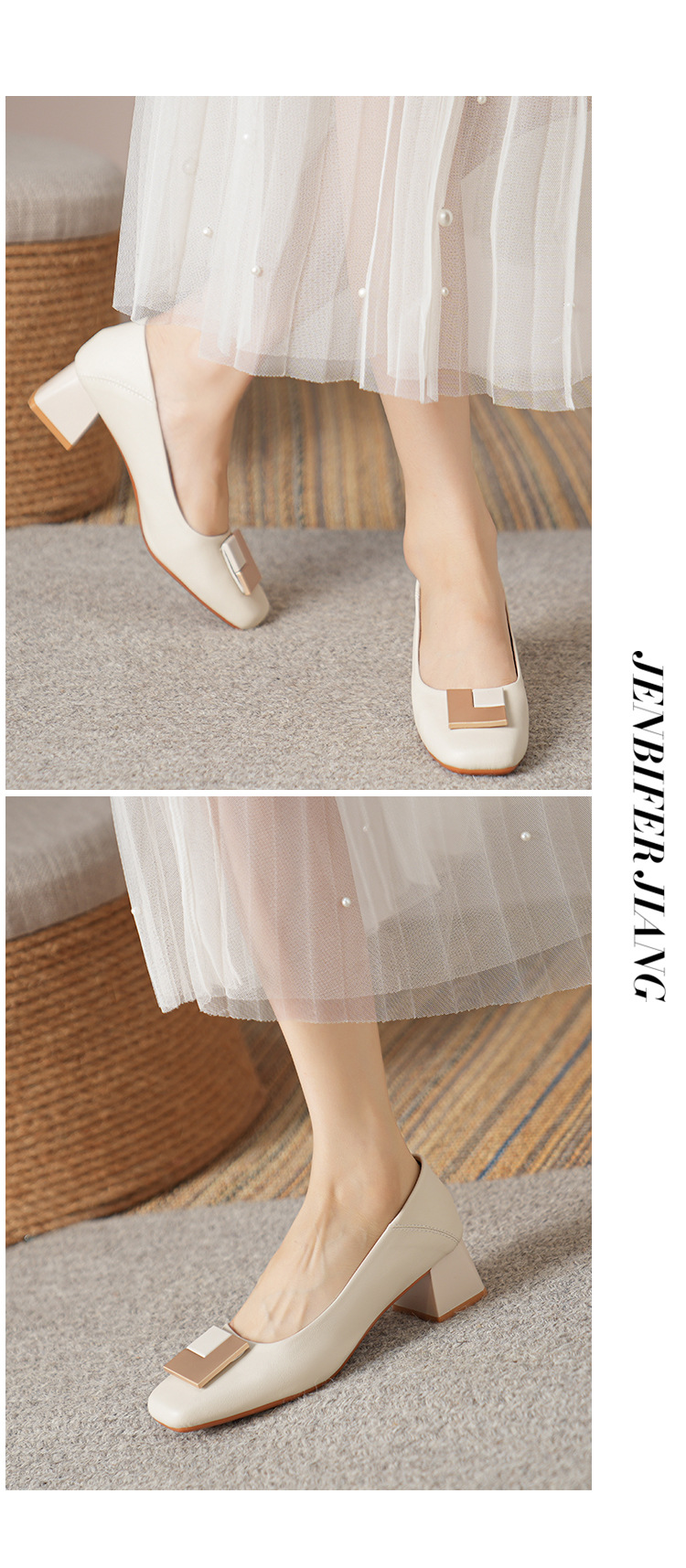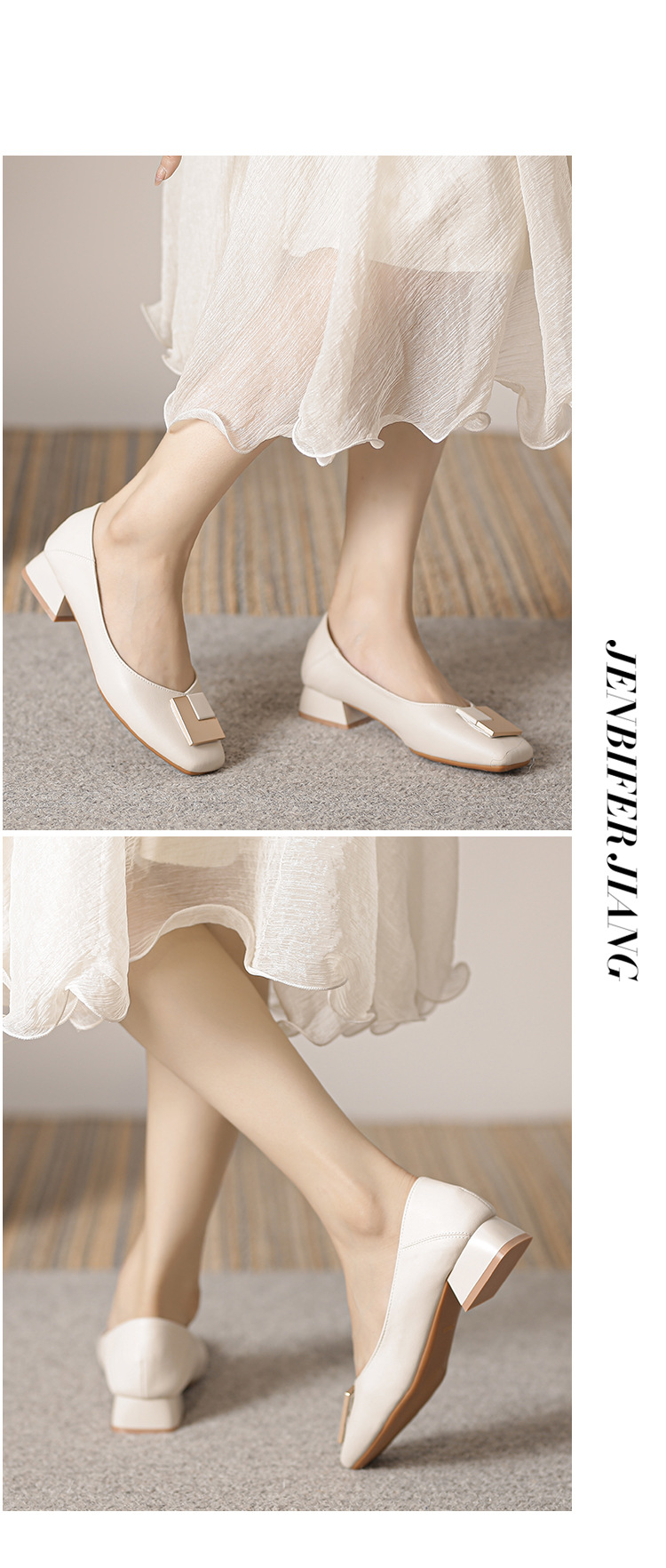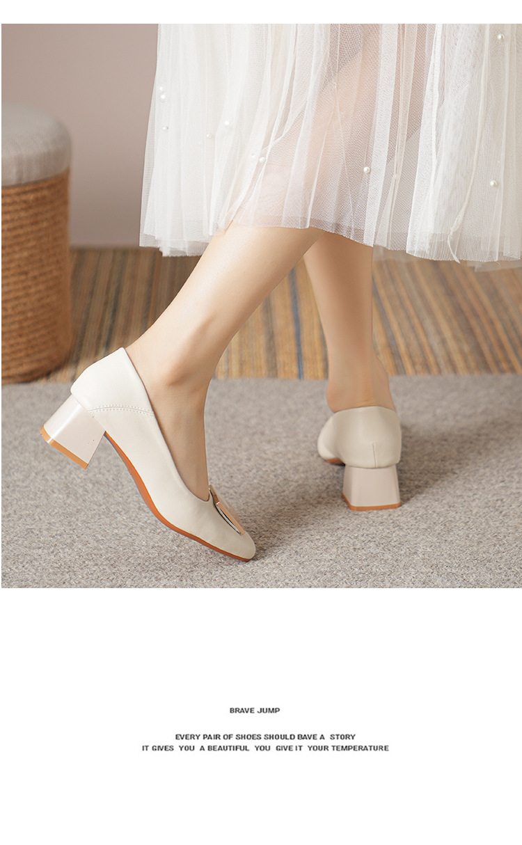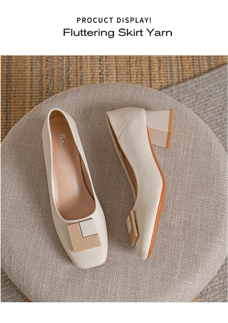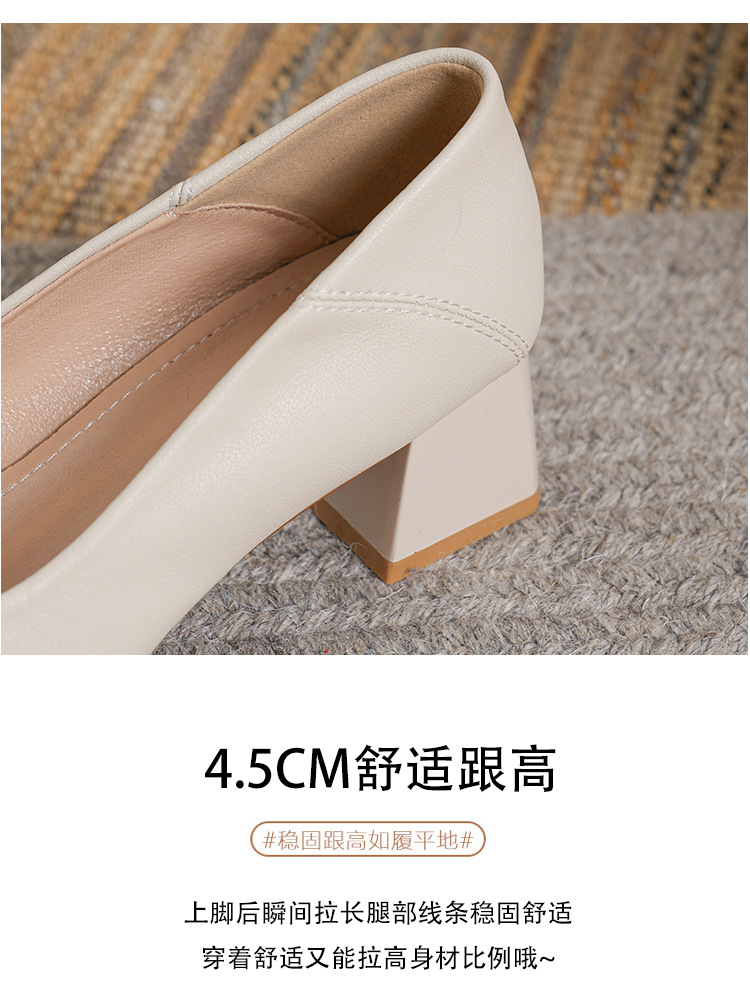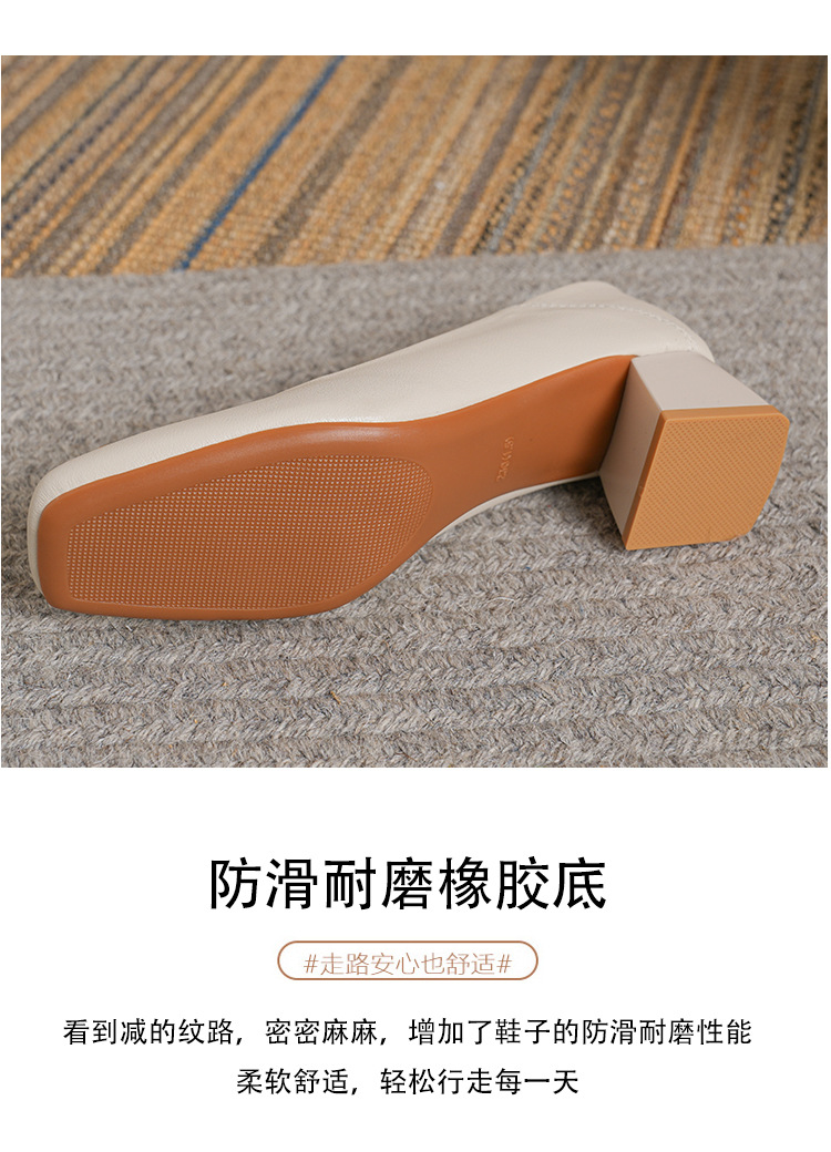 늦은 저녁 스타일 숙녀 싱글 신발 여성 신발 2023 새로운 폭발 복고풍 통근 부드러운 가죽 스퀘어 하이힐 우유 신발스토어 가기