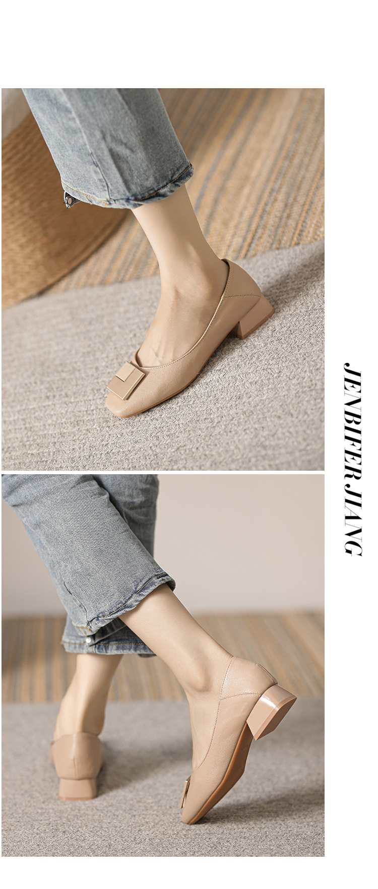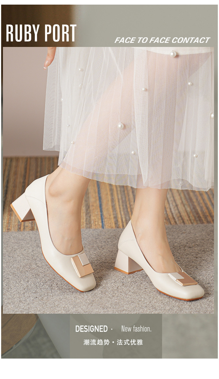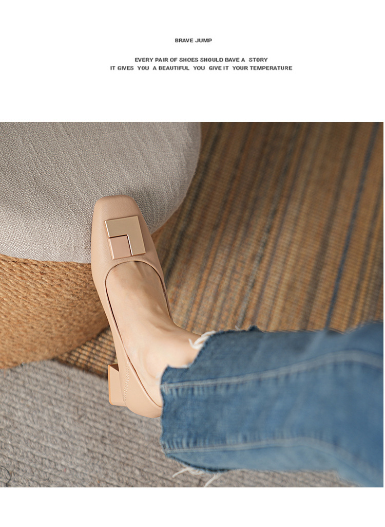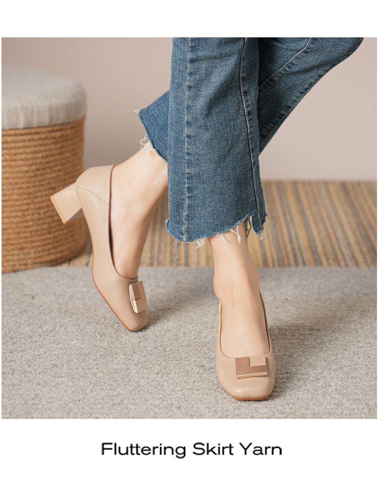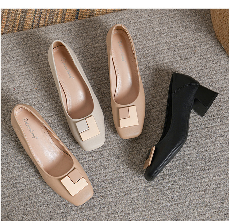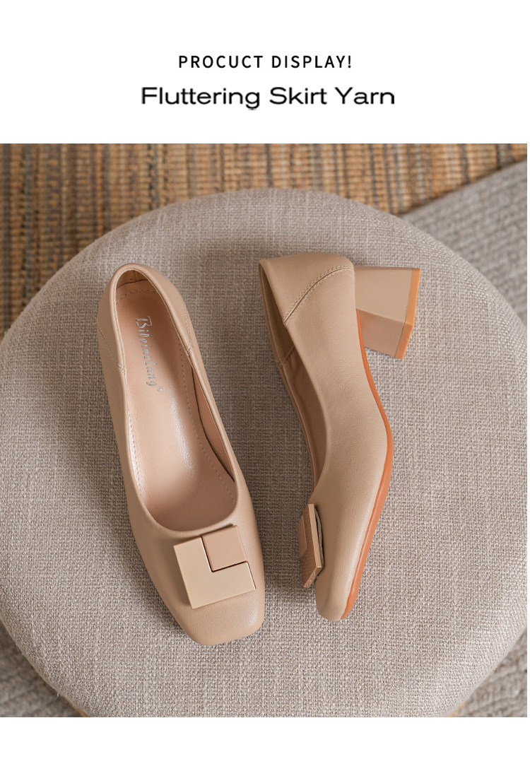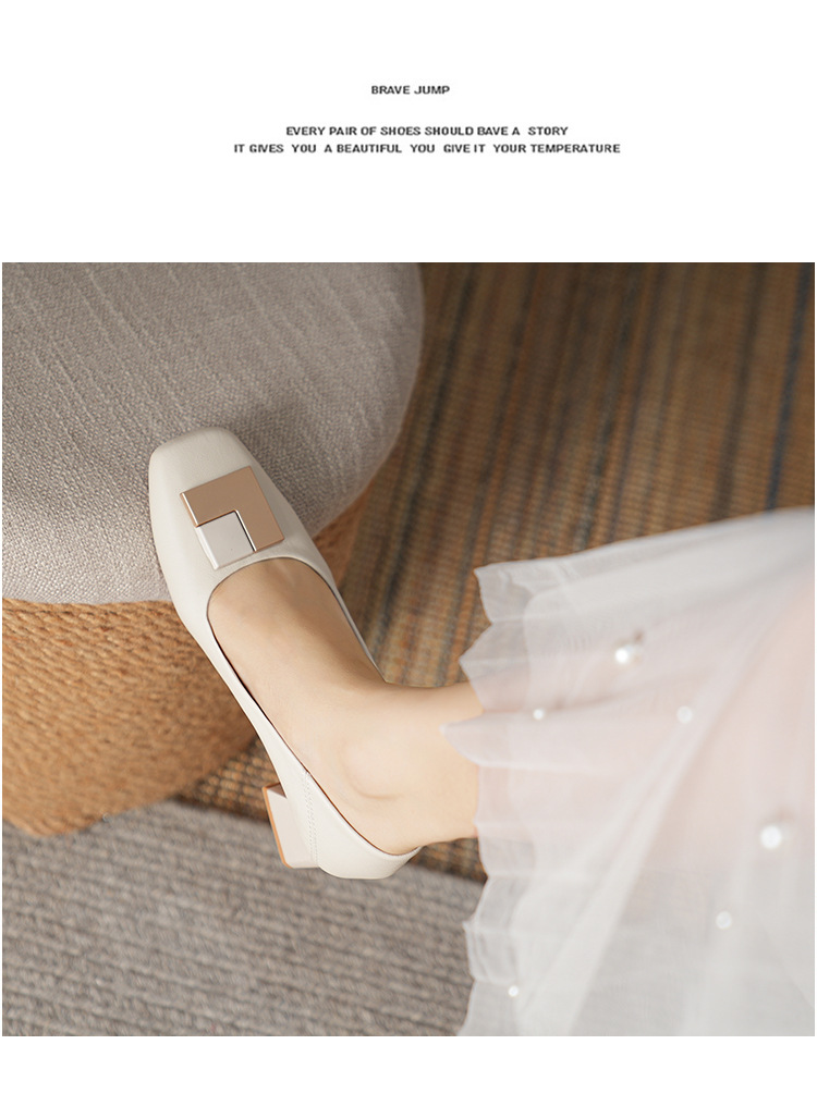 늦은 저녁 스타일 숙녀 싱글 신발 여성 신발 2023 새로운 폭발 복고풍 통근 부드러운 가죽 스퀘어 하이힐 우유 신발스토어 가기