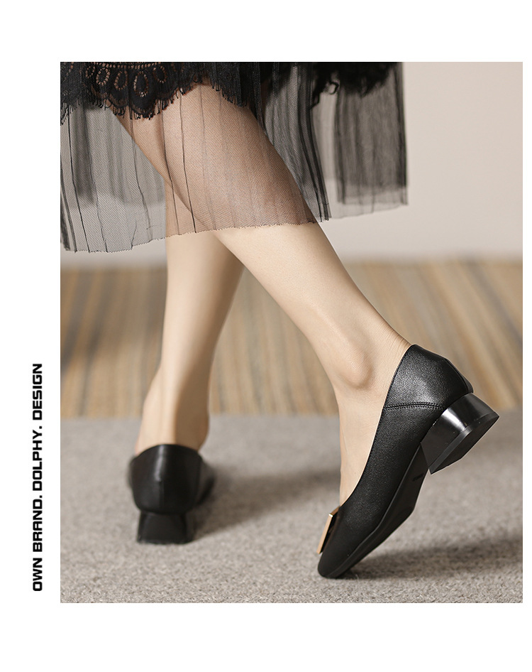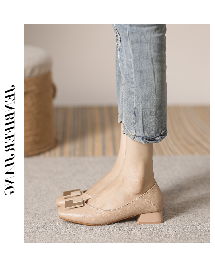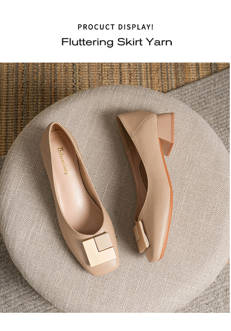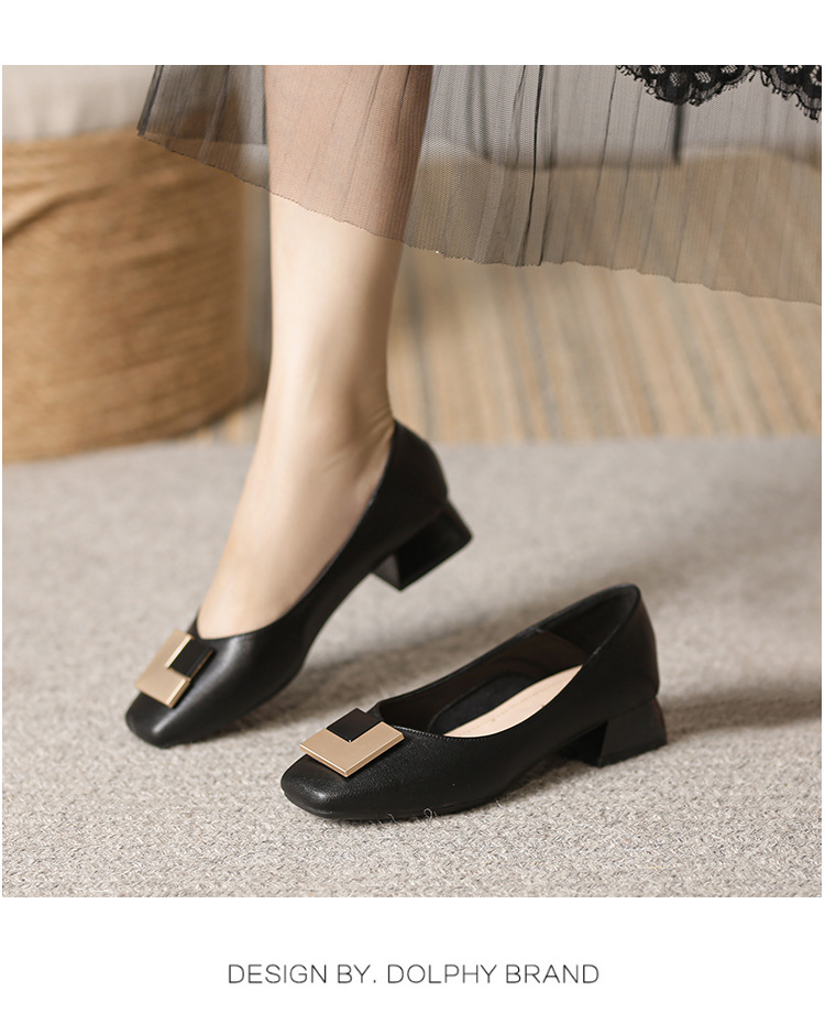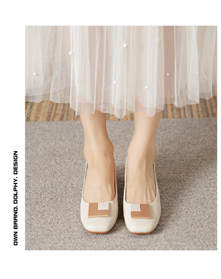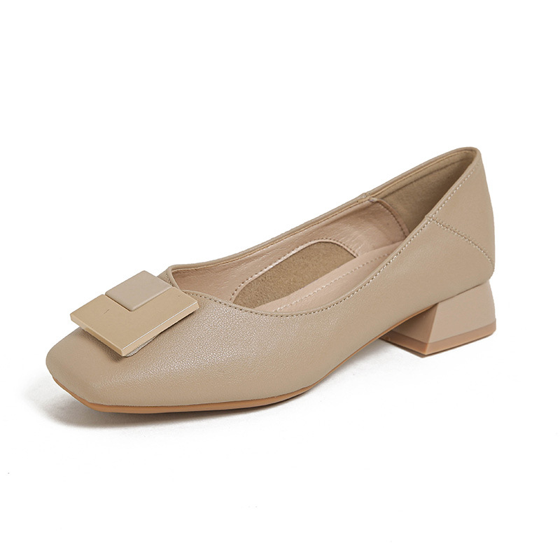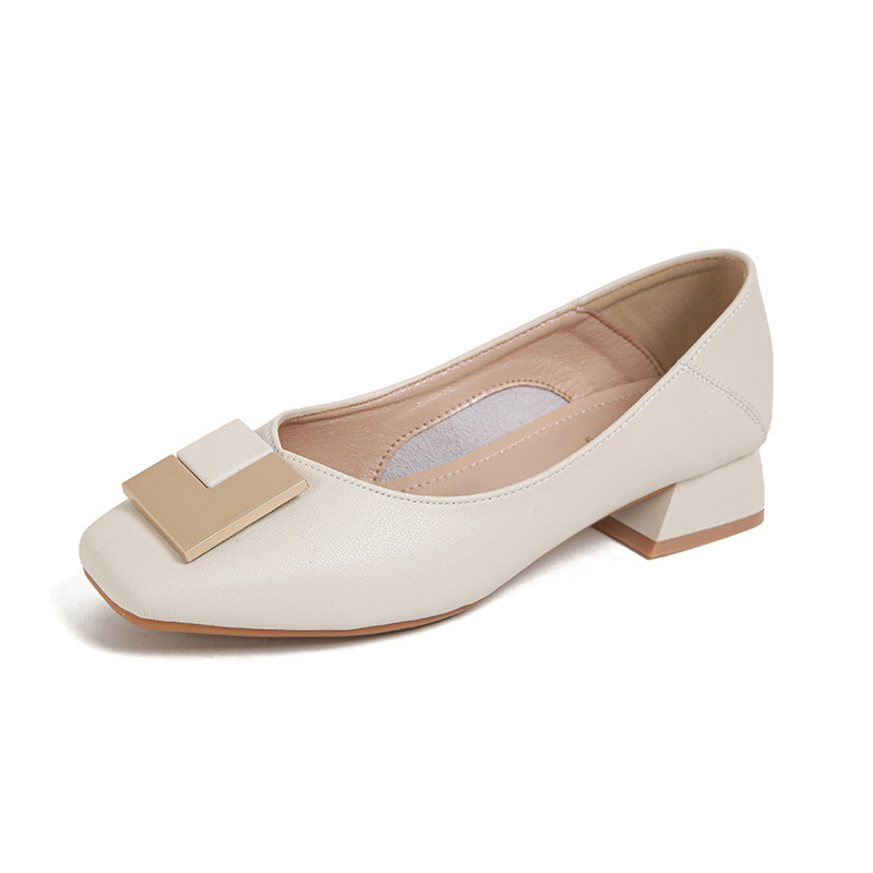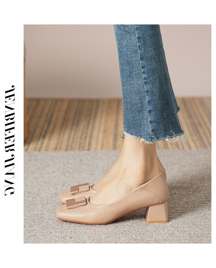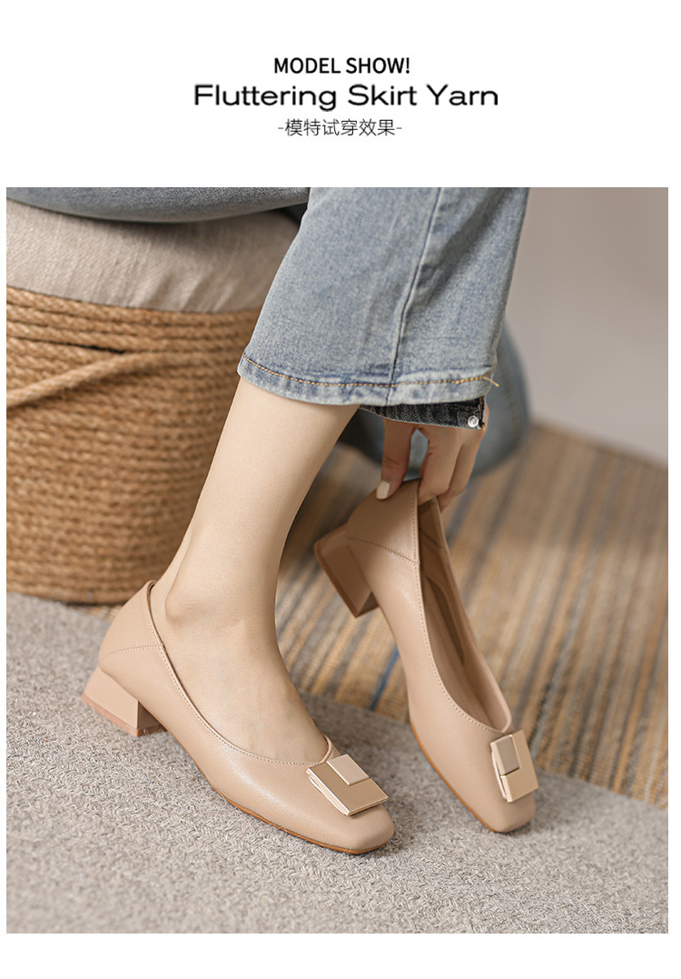 늦은 저녁 스타일 숙녀 싱글 신발 여성 신발 2023 새로운 폭발 복고풍 통근 부드러운 가죽 스퀘어 하이힐 우유 신발스토어 가기