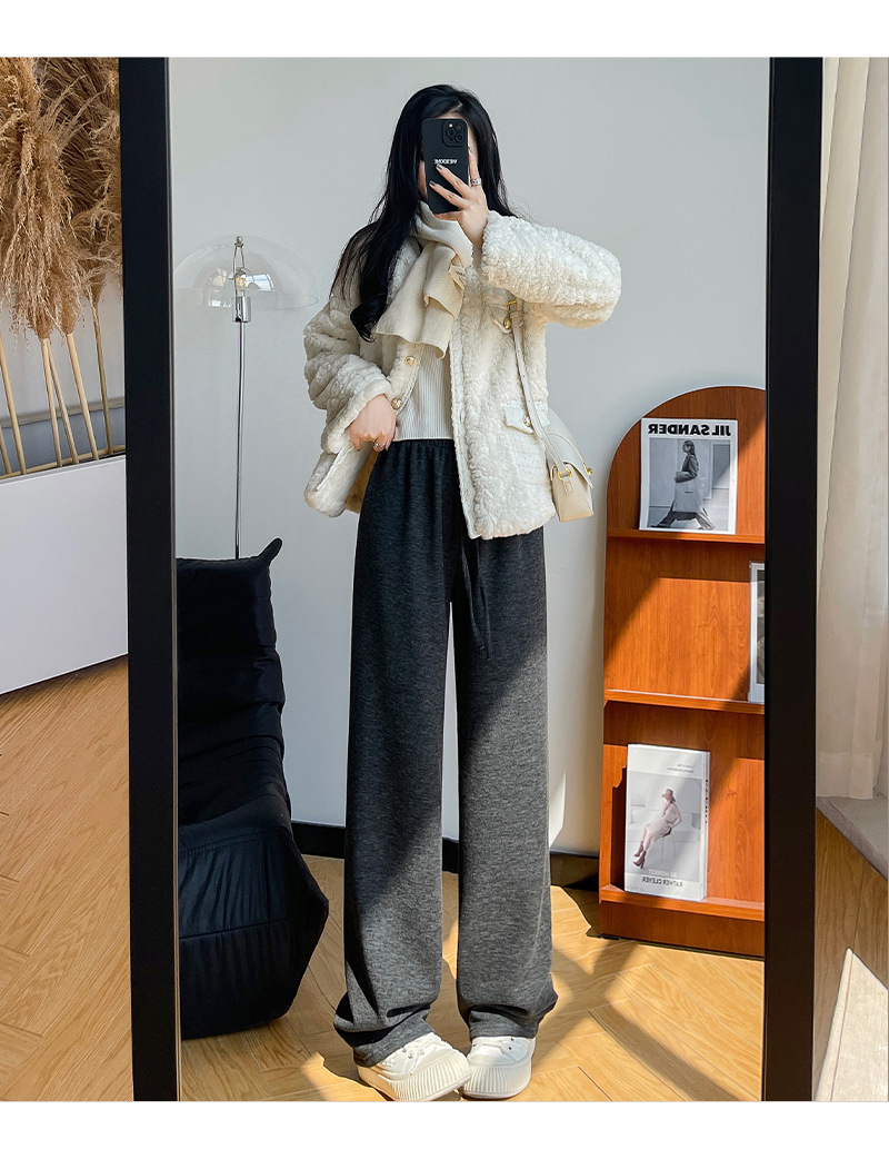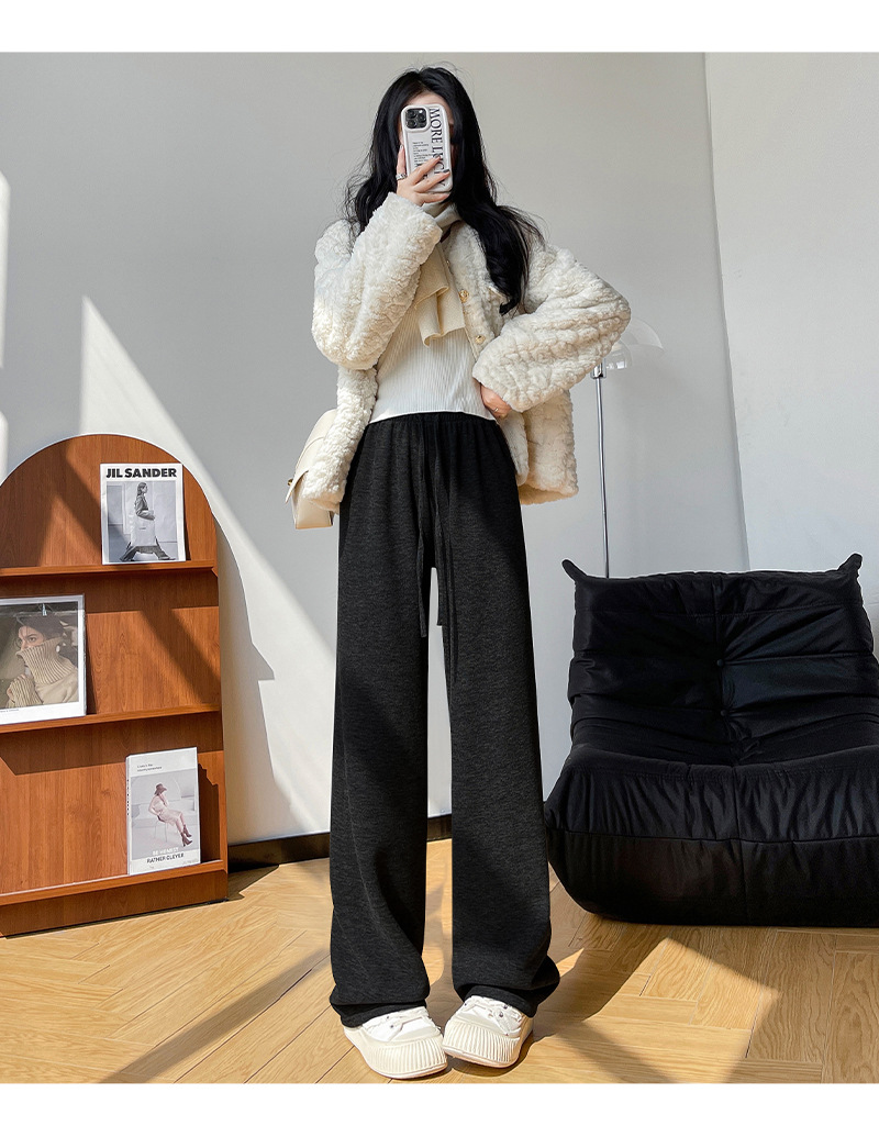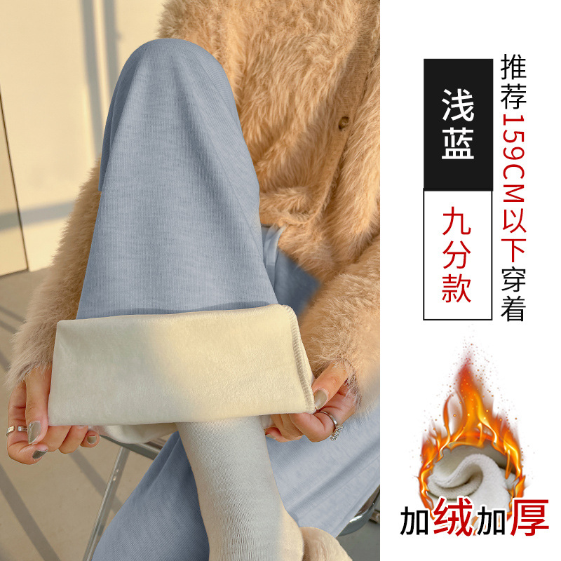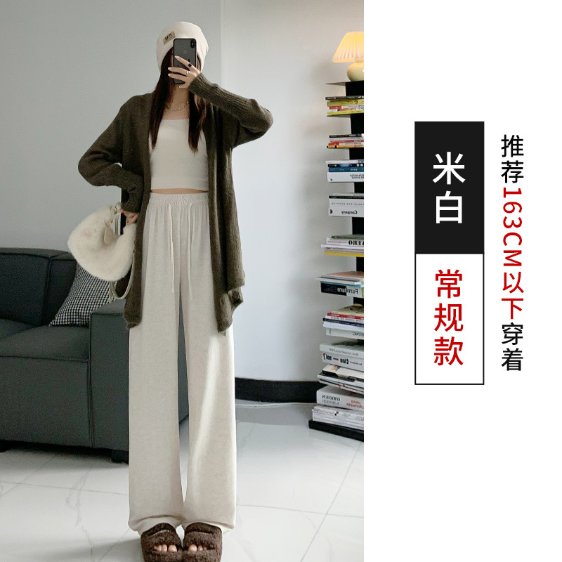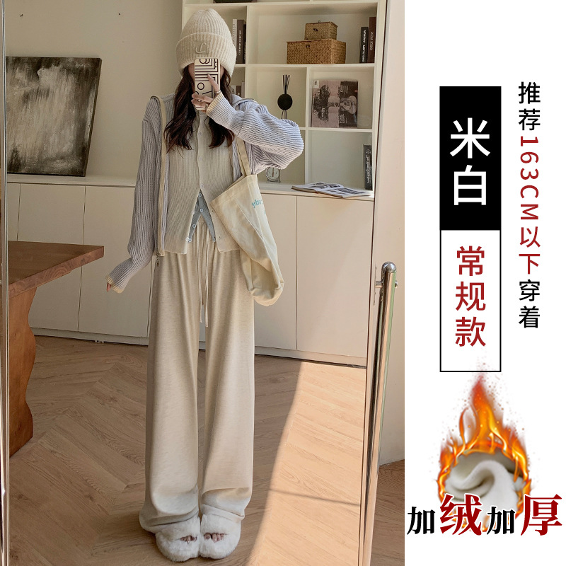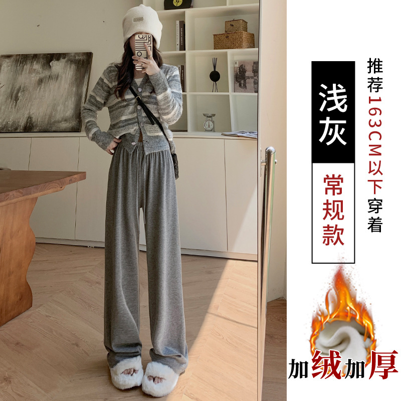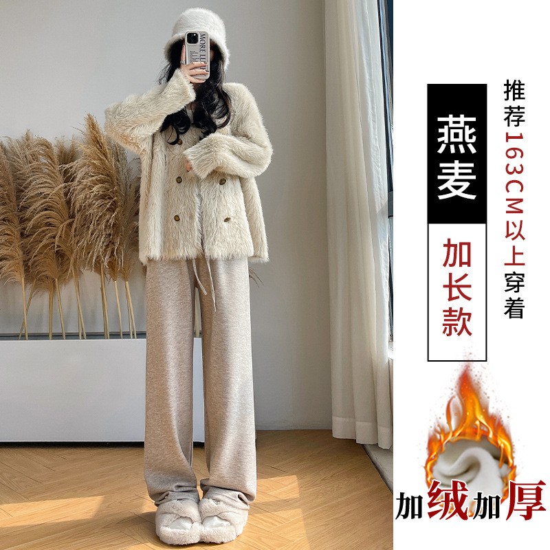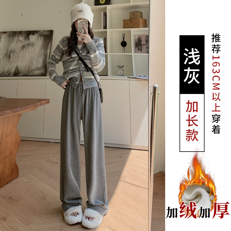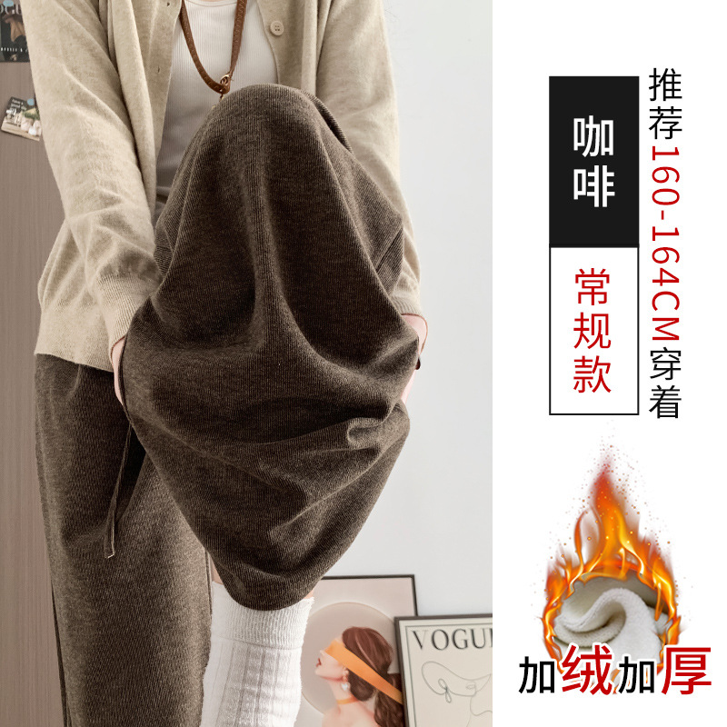 일본식 기모 찹쌀 바지 여성의 가을과 겨울 하이 웨이스트 스트레이트 좁은 캐주얼 바지 소프트 왁스 하이 웨이스트 니트 와이드 레그 팬츠