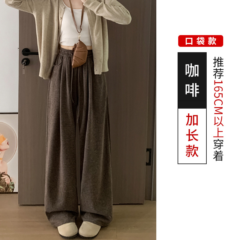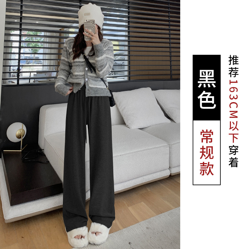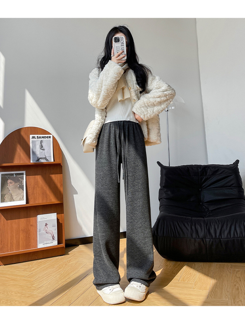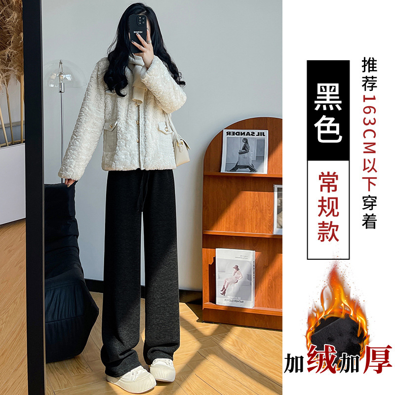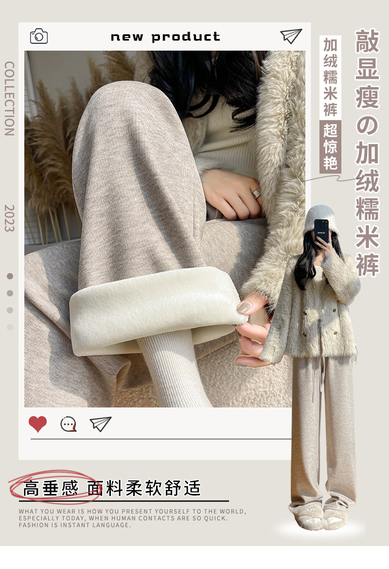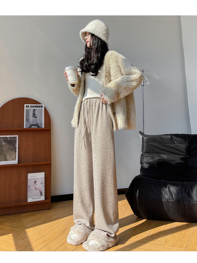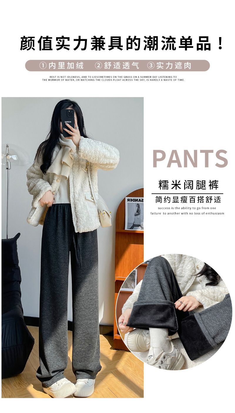 일본식 기모 찹쌀 바지 여성의 가을과 겨울 하이 웨이스트 스트레이트 좁은 캐주얼 바지 소프트 왁스 하이 웨이스트 니트 와이드 레그 팬츠