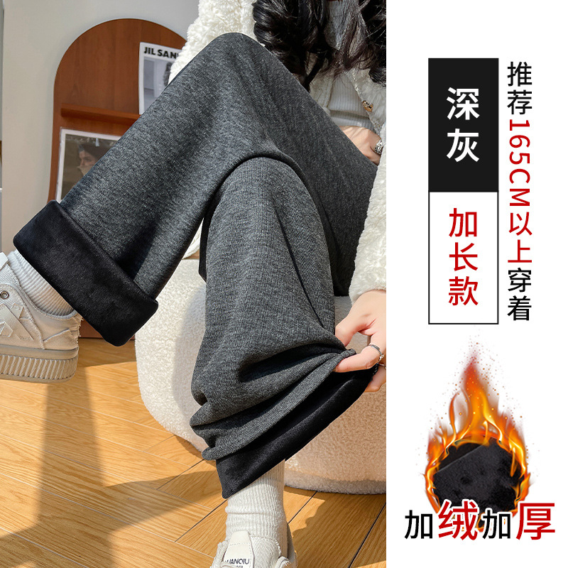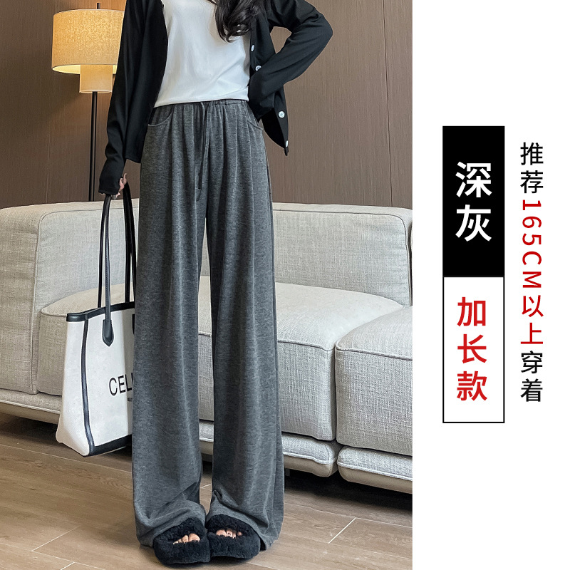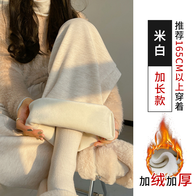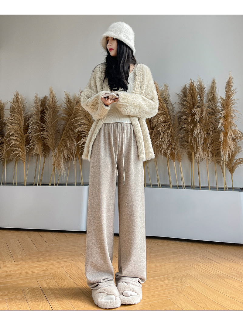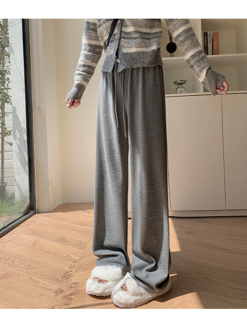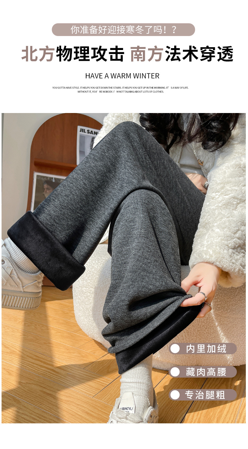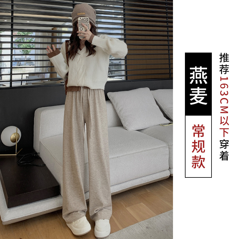 일본식 기모 찹쌀 바지 여성의 가을과 겨울 하이 웨이스트 스트레이트 좁은 캐주얼 바지 소프트 왁스 하이 웨이스트 니트 와이드 레그 팬츠