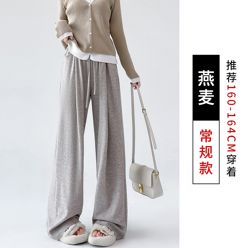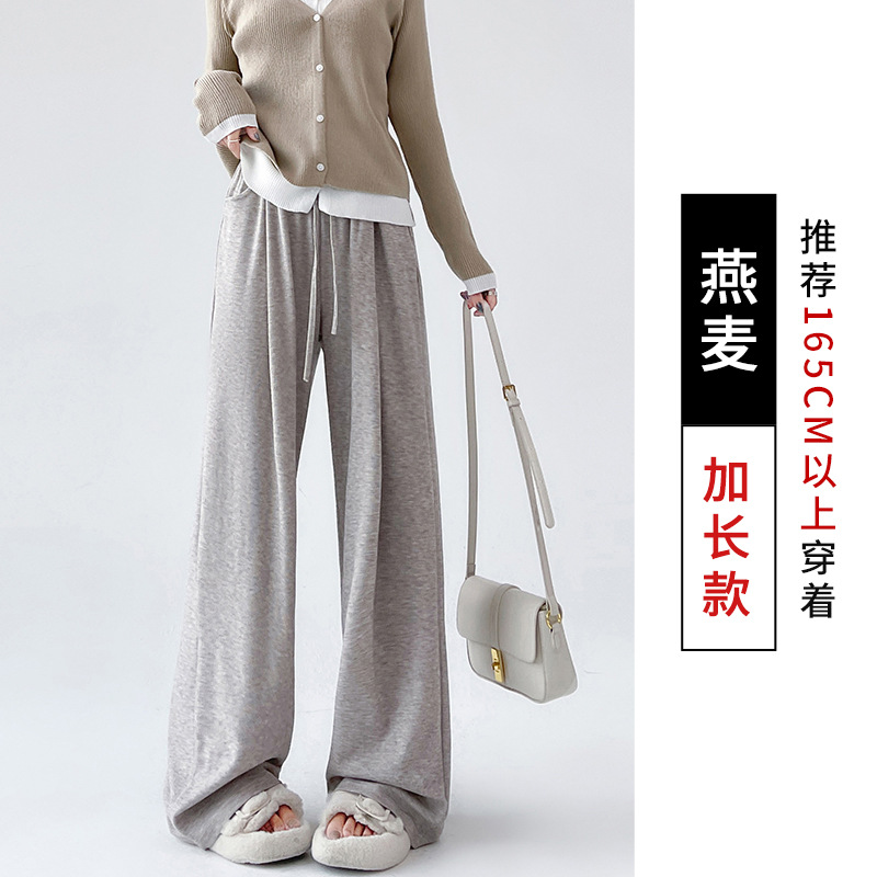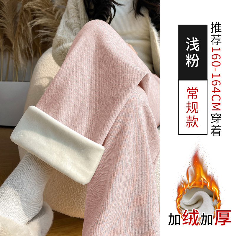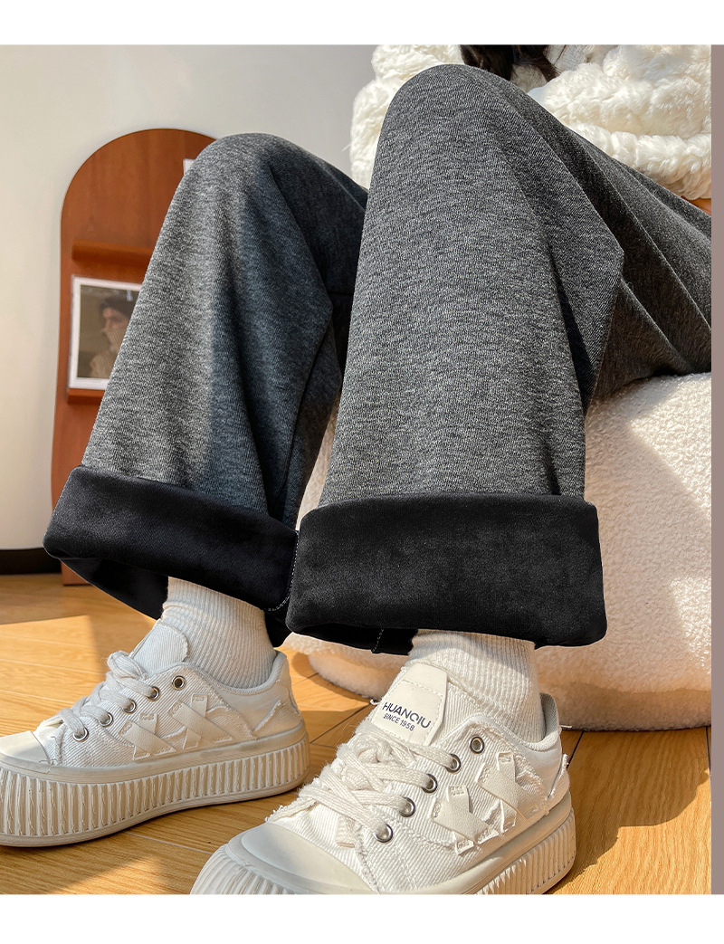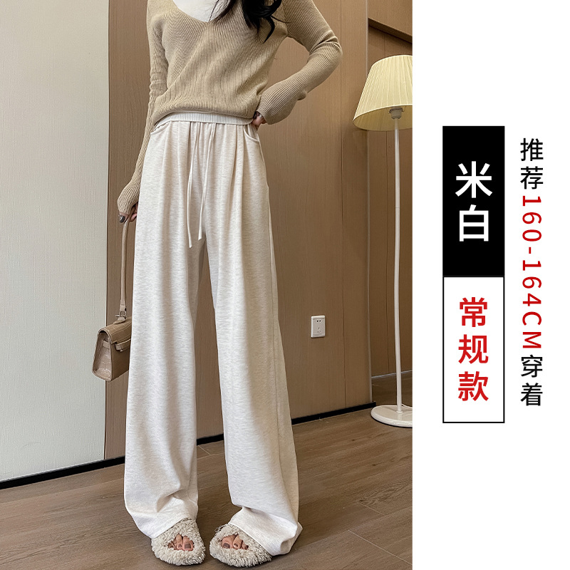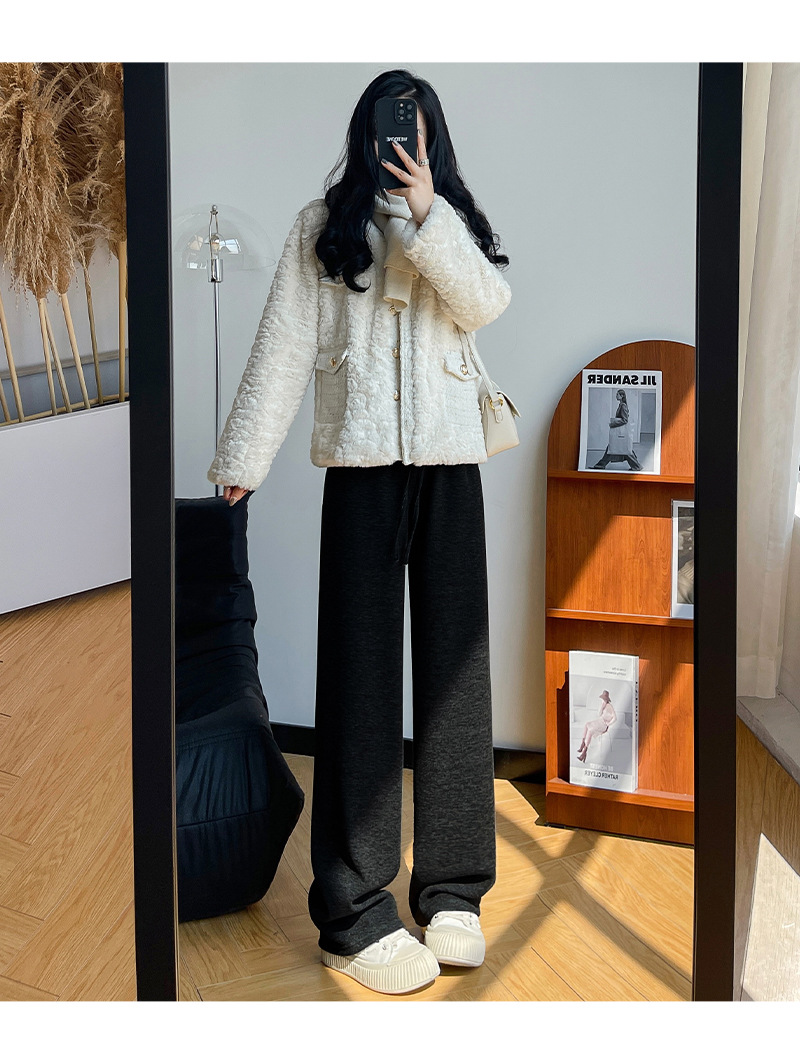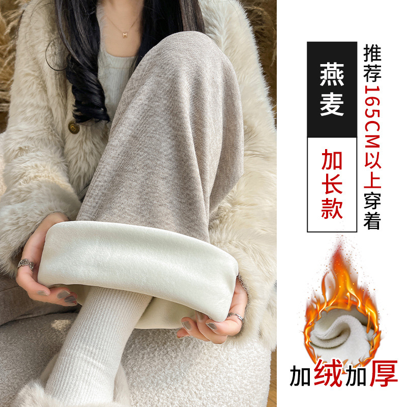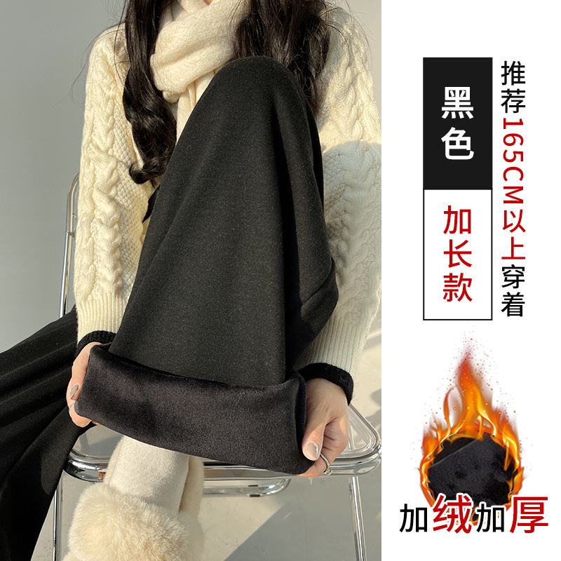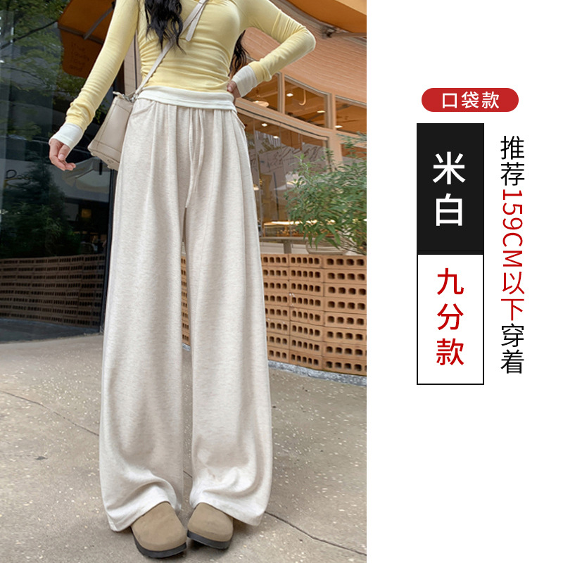 일본식 기모 찹쌀 바지 여성의 가을과 겨울 하이 웨이스트 스트레이트 좁은 캐주얼 바지 소프트 왁스 하이 웨이스트 니트 와이드 레그 팬츠