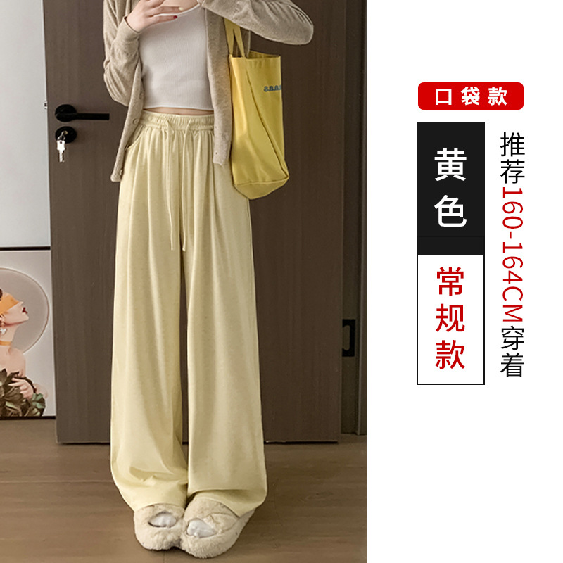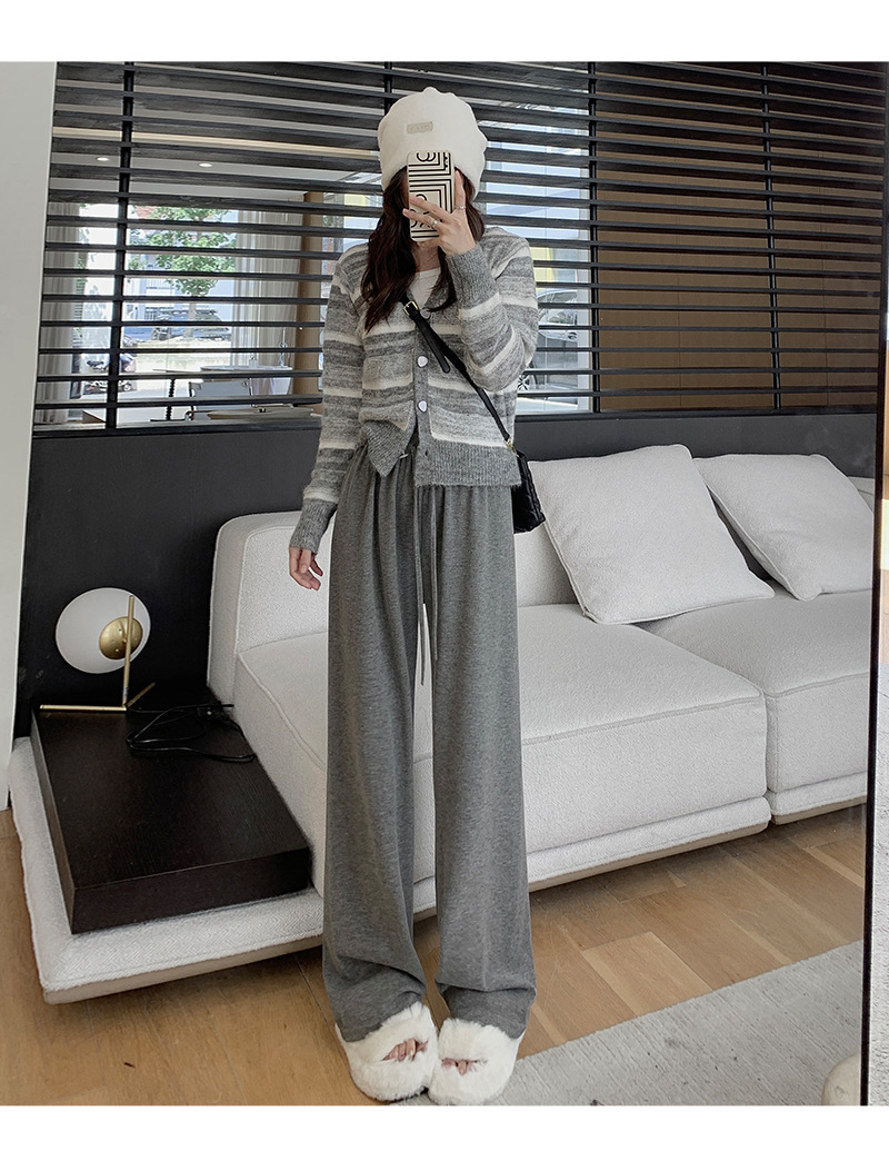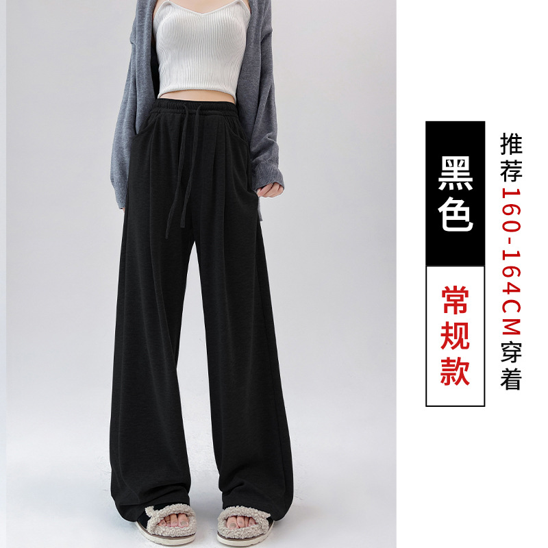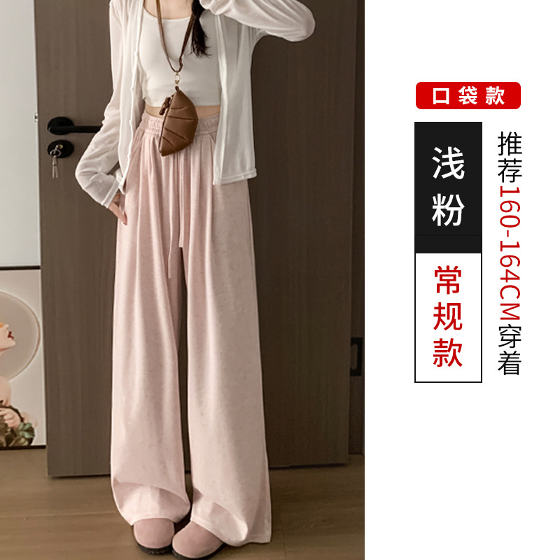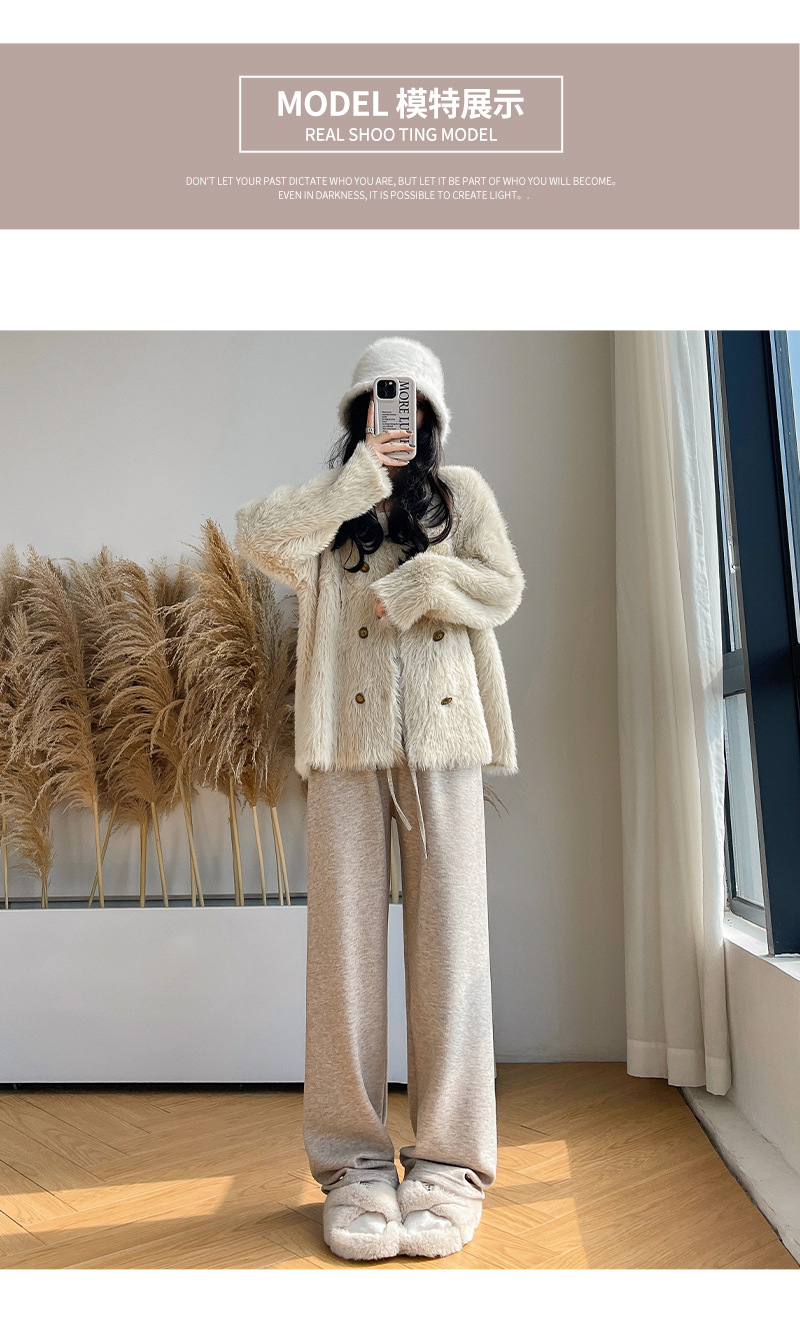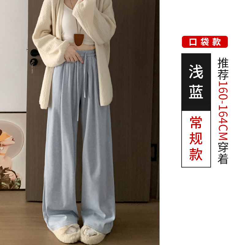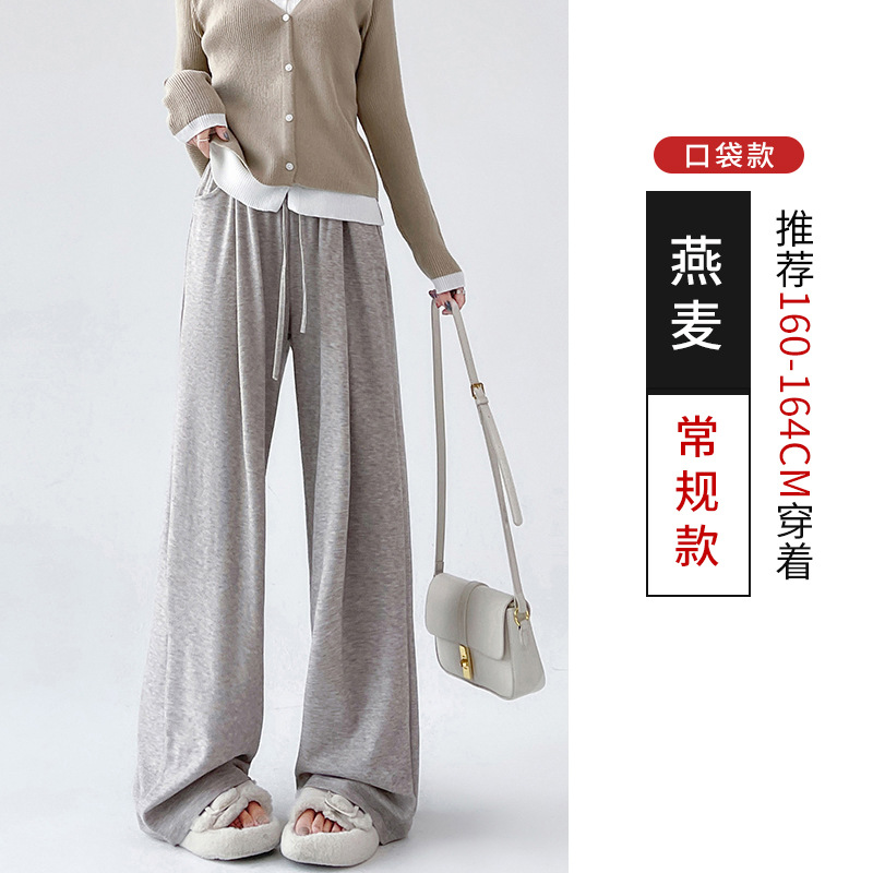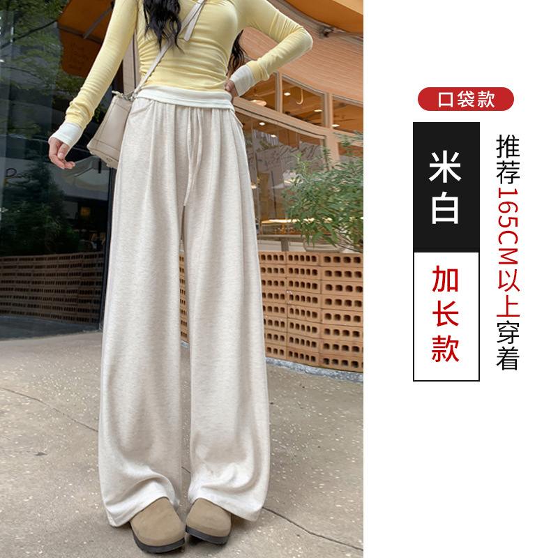 일본식 기모 찹쌀 바지 여성의 가을과 겨울 하이 웨이스트 스트레이트 좁은 캐주얼 바지 소프트 왁스 하이 웨이스트 니트 와이드 레그 팬츠